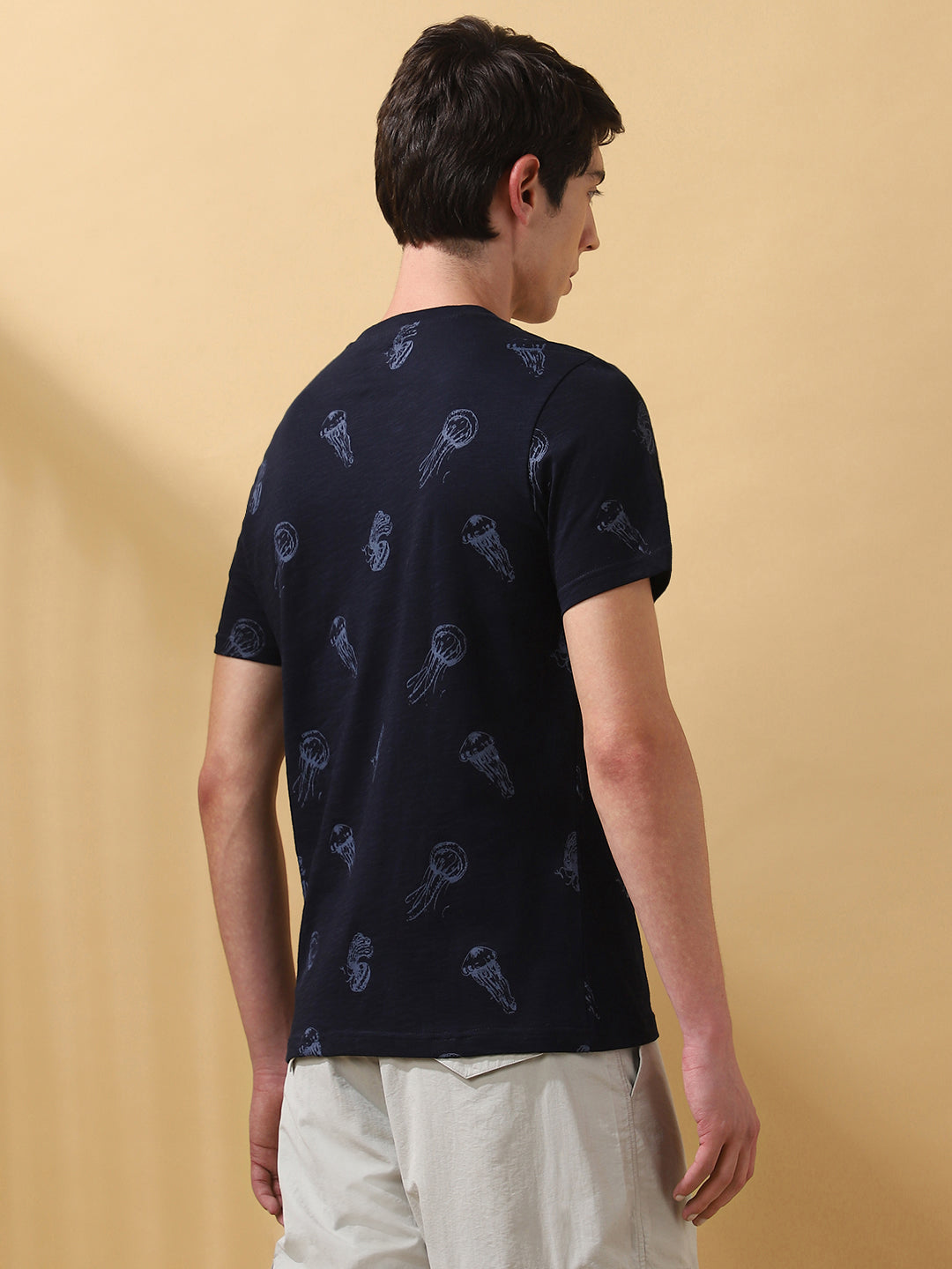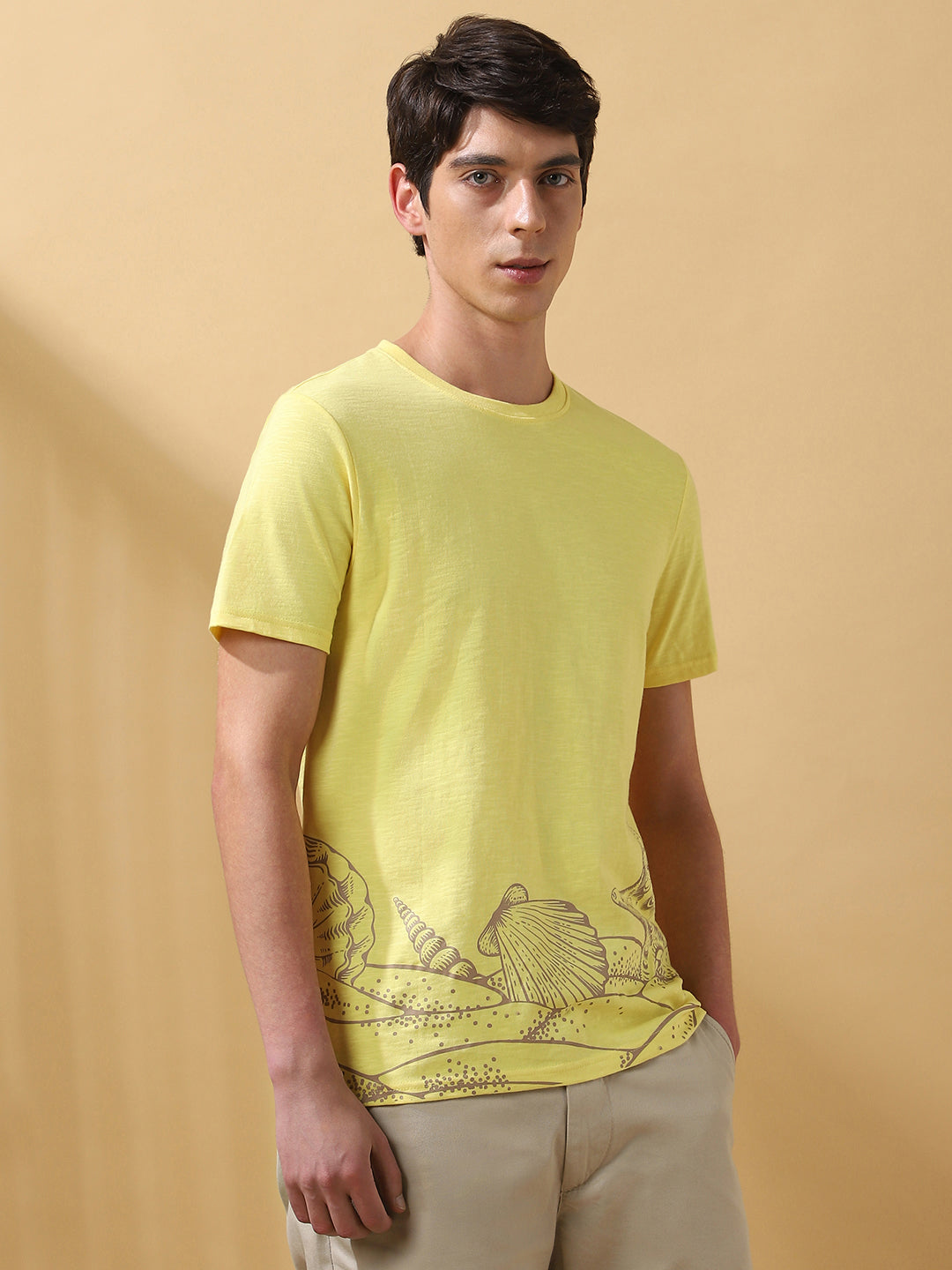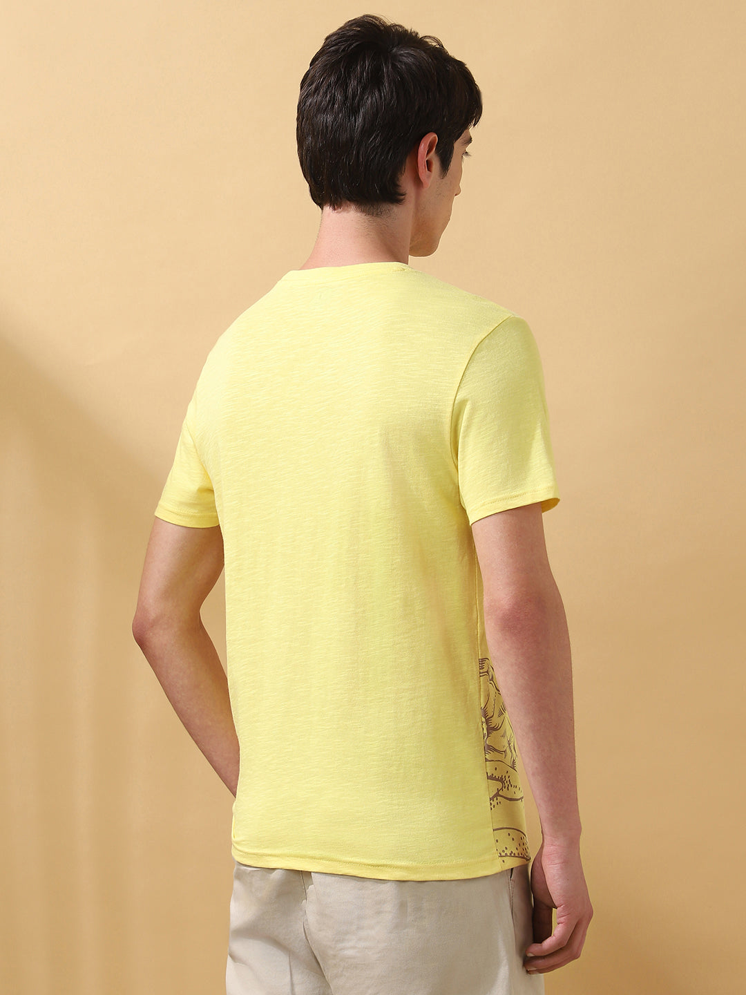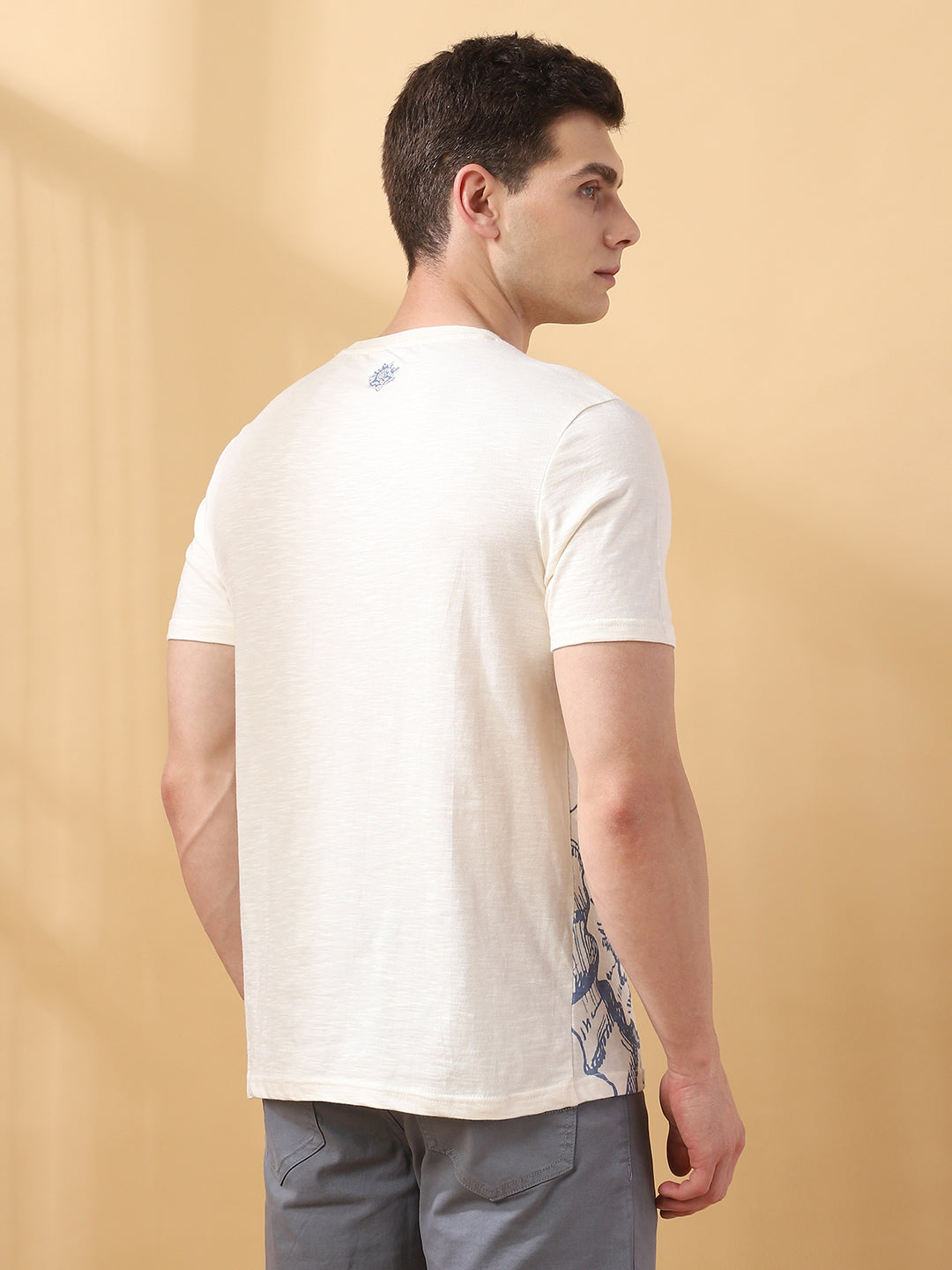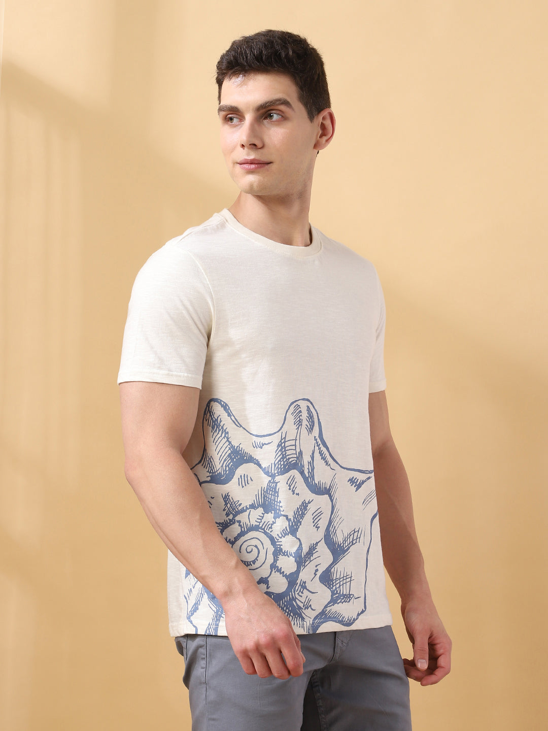Men's Printed Round Neck Half Sleeves Cotton Slub T-shirt