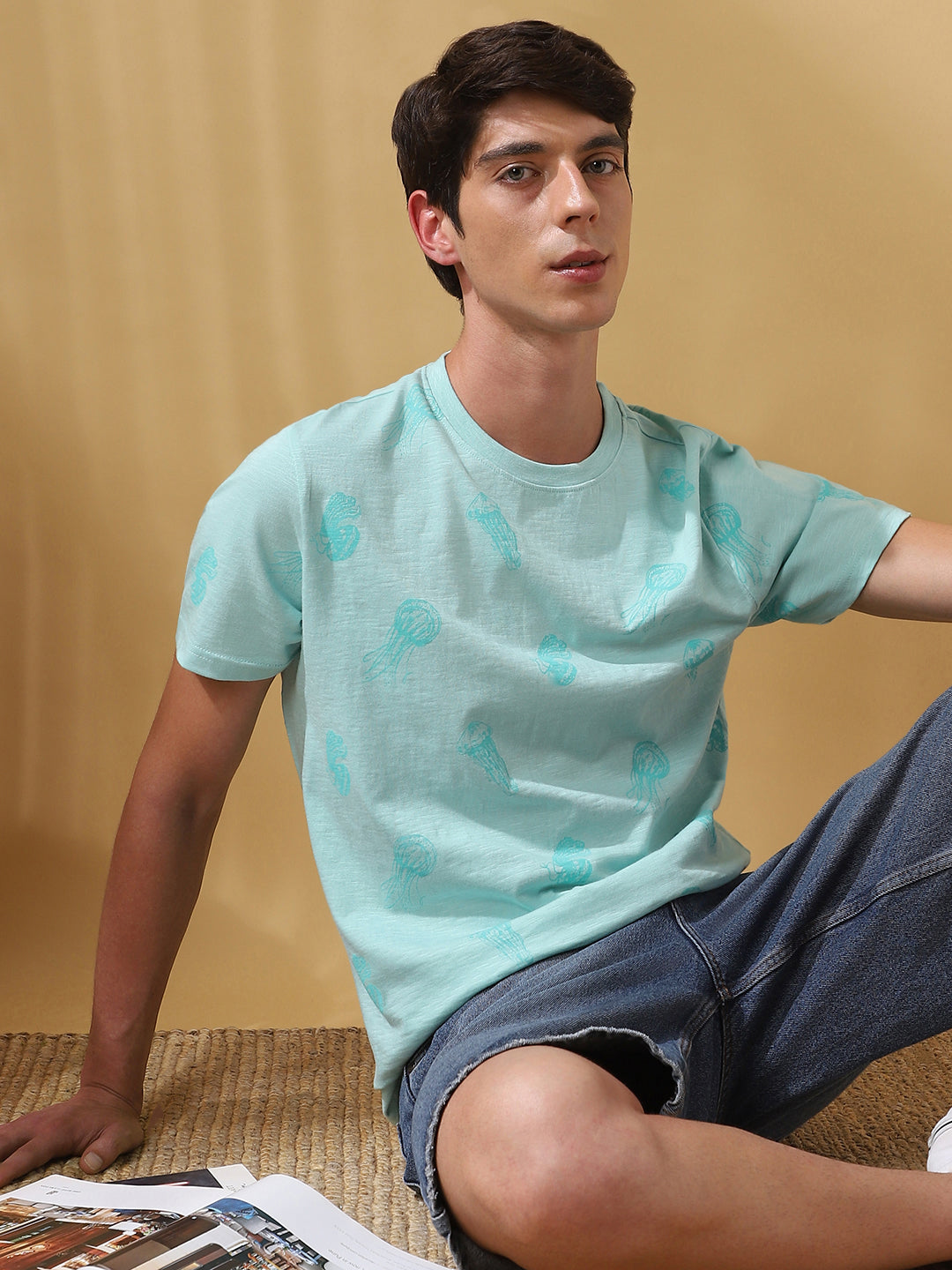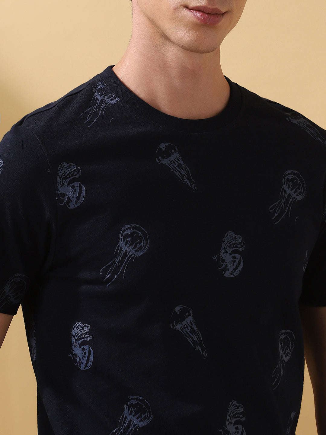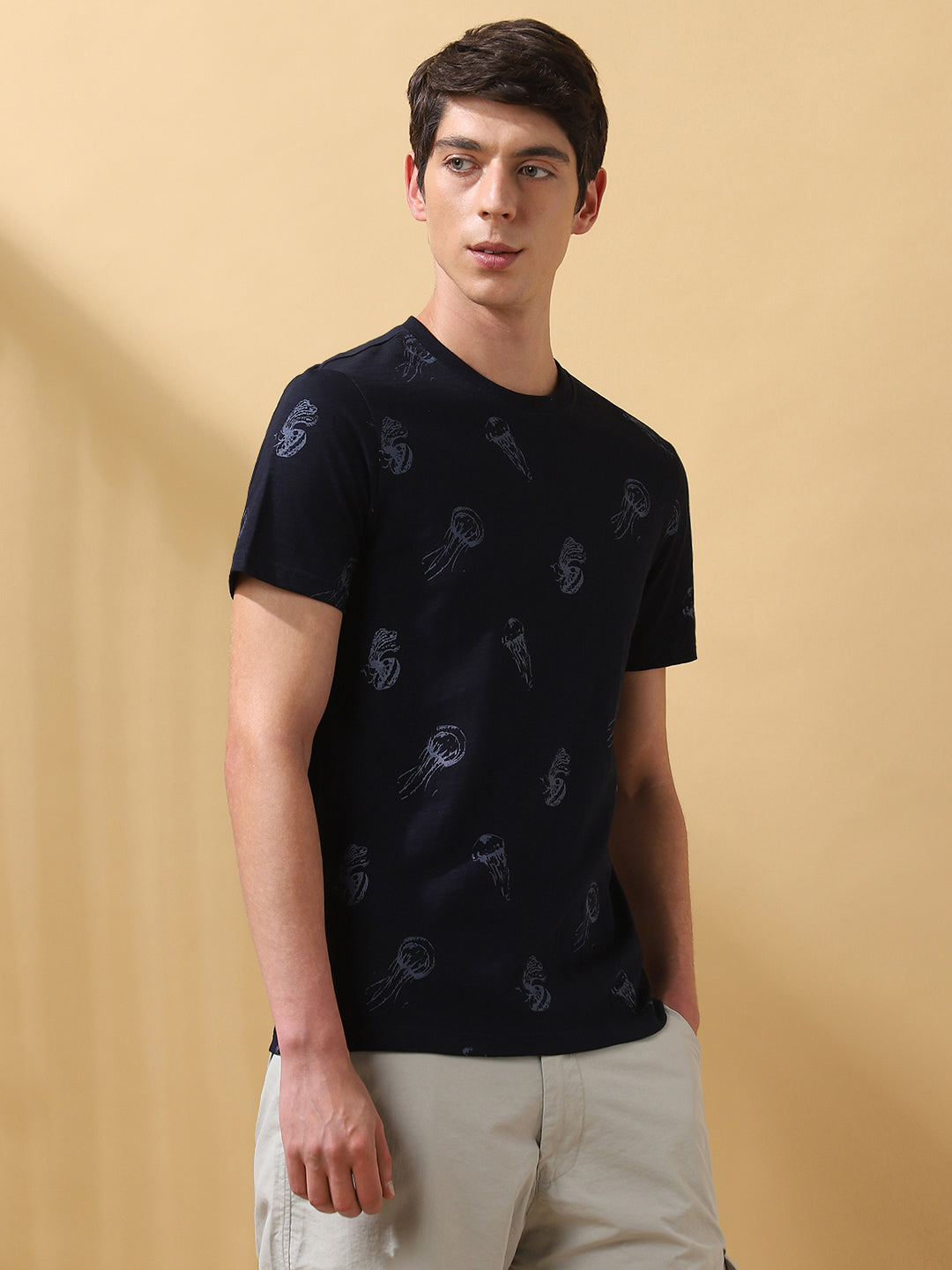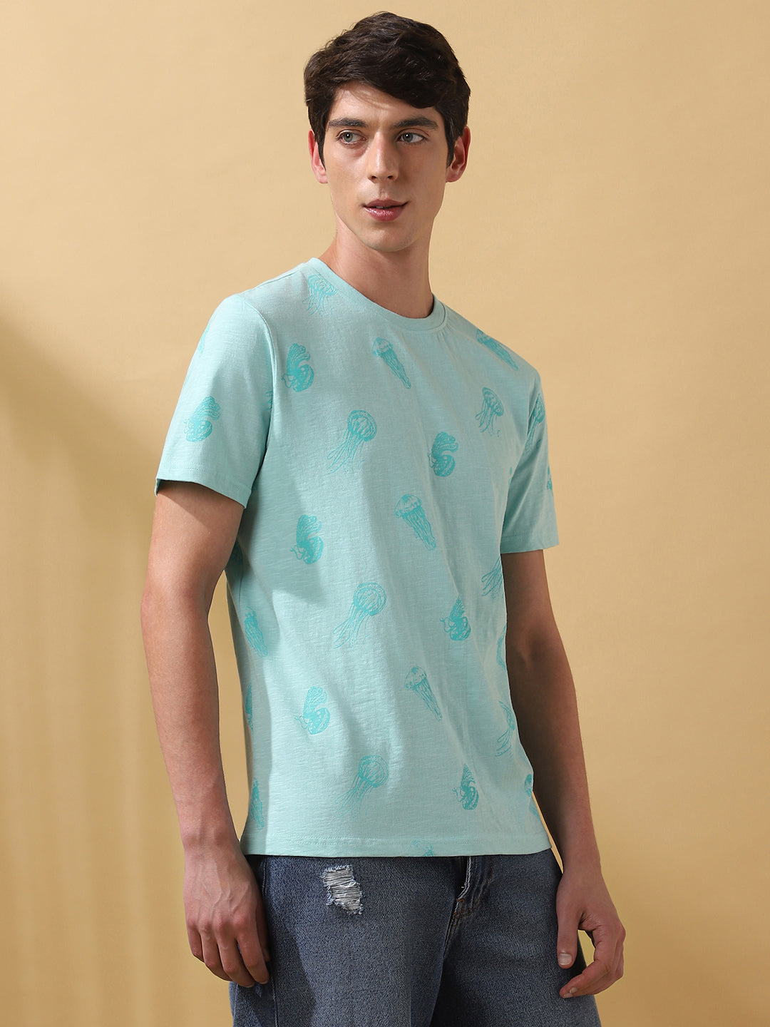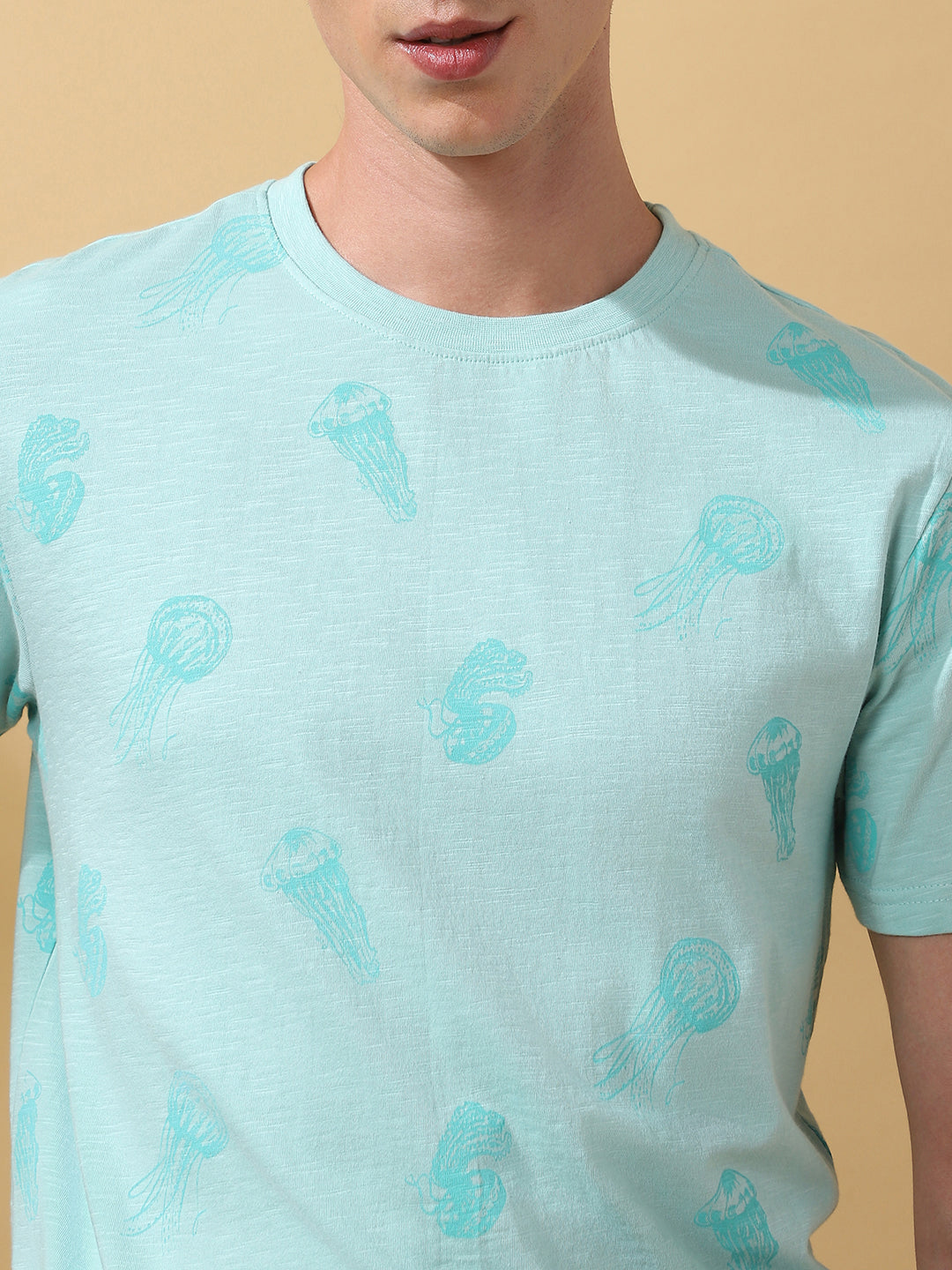 Men's Printed Round Neck Half Sleeves Cotton Slub T-shirt