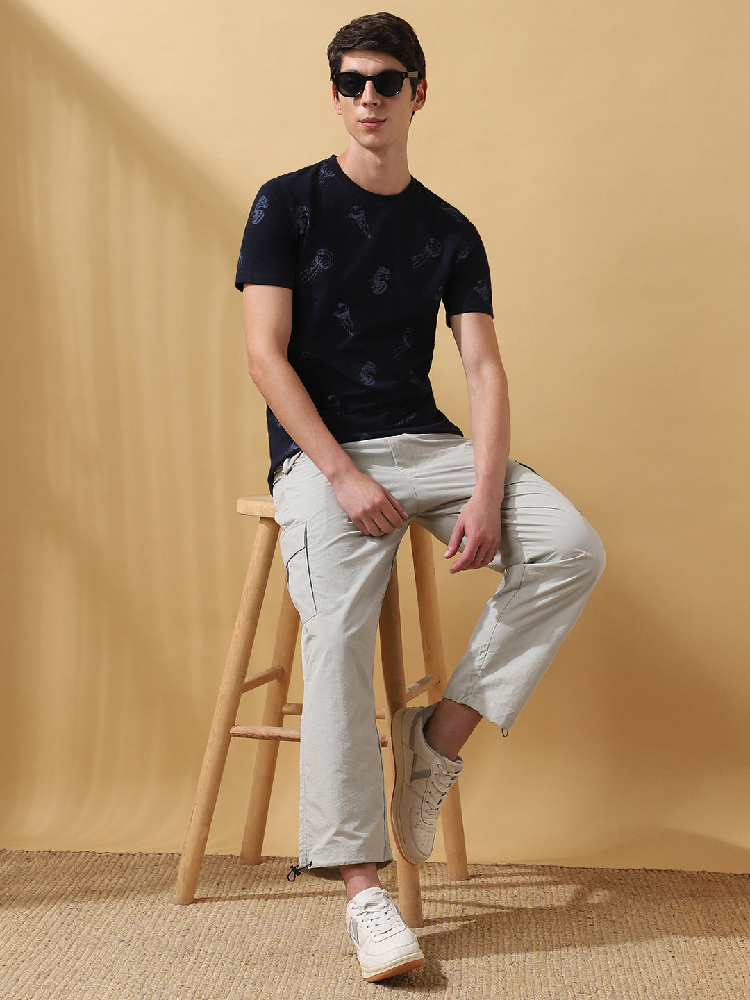 Men's Navy Blue Solid Slim Fit Cargo Trouser