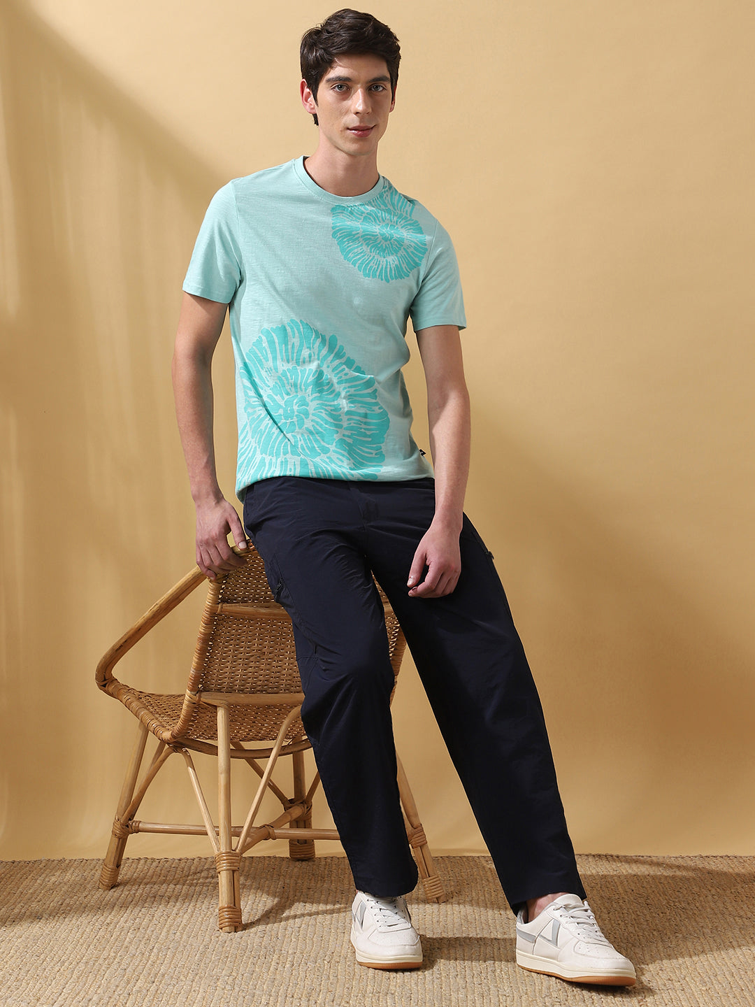 Men's Printed Round Neck Half Sleeves Relaxed Fit T-shirt