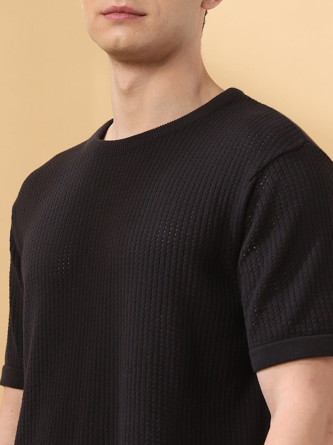 Men's Self Design Round Neck Half Sleeves T-shirt