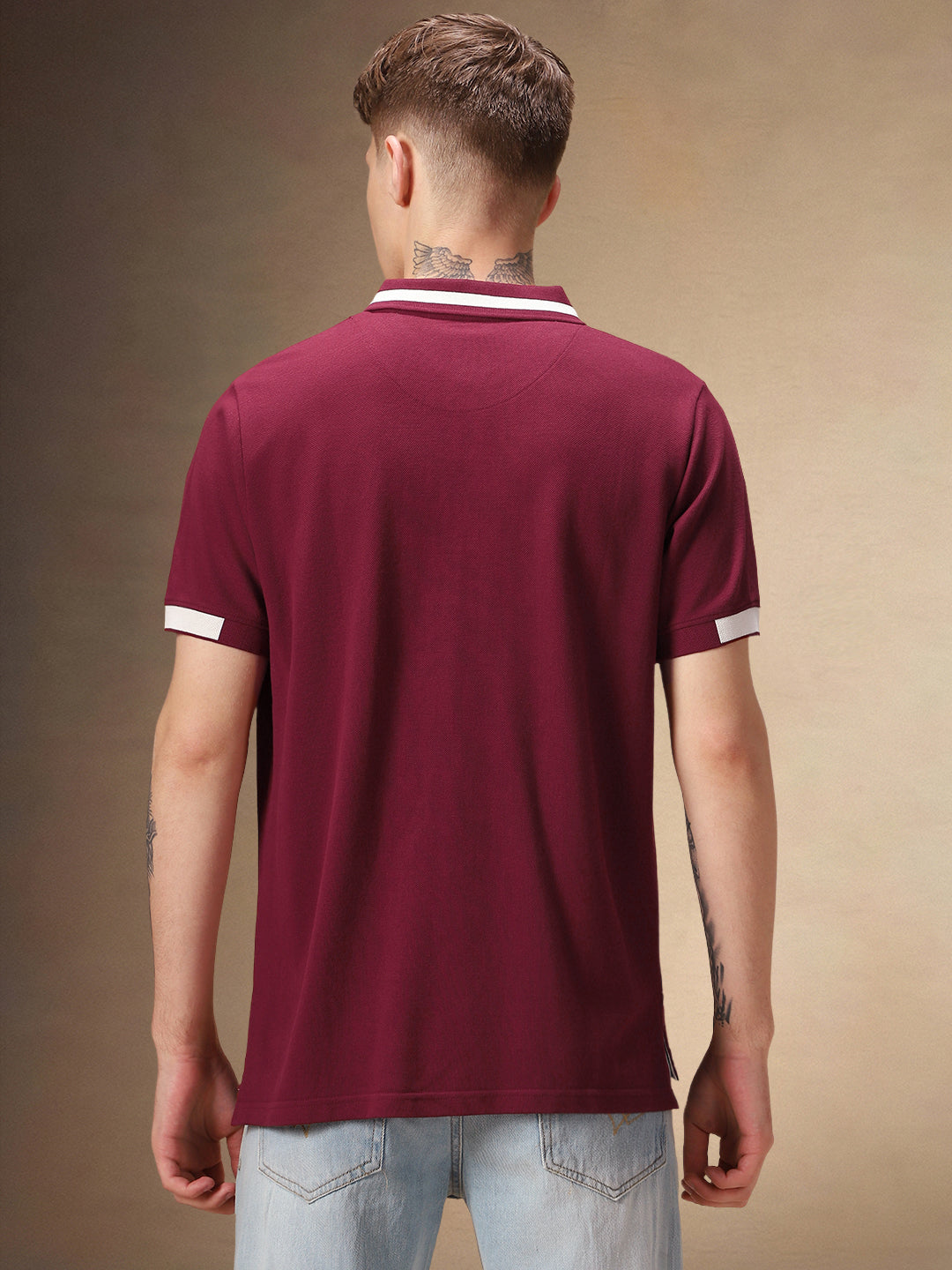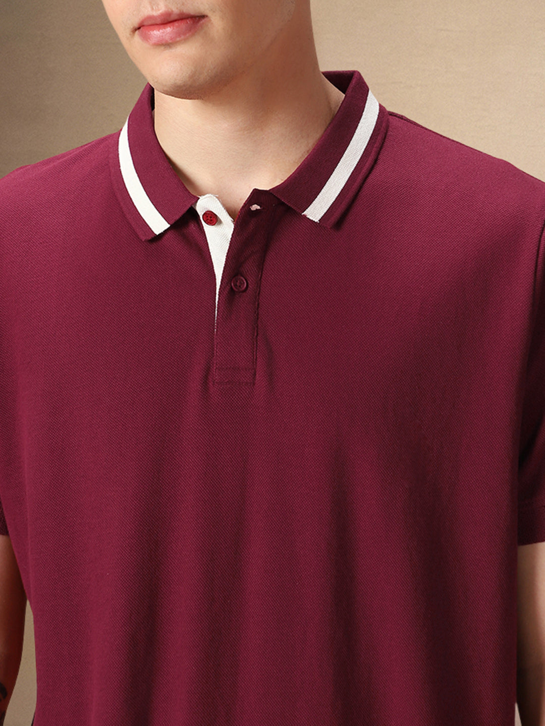 Men's Polo Collar Solid Maroon Half Sleeves T-shirt