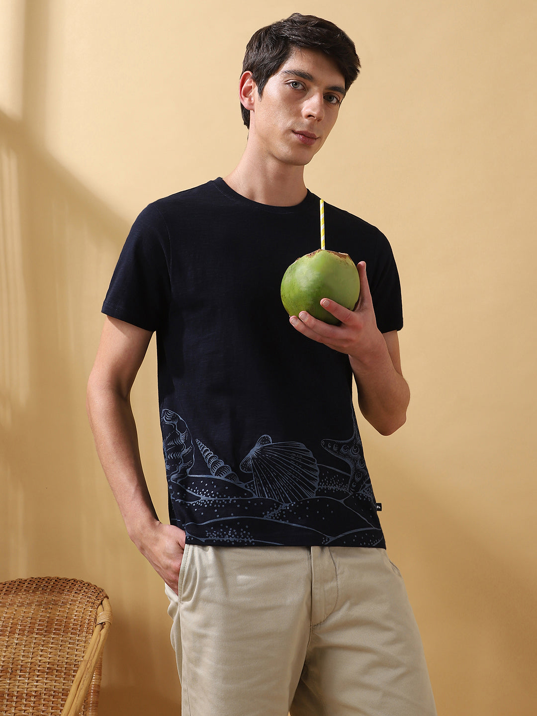 Men's Printed Round Neck Half Sleeves Relaxed Fit T-shirt