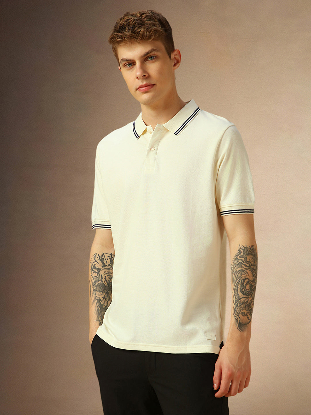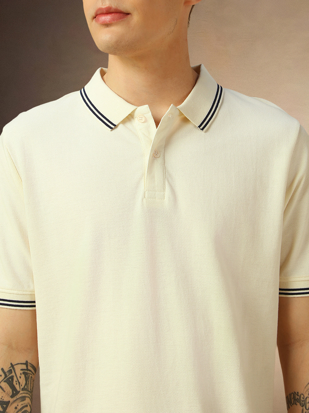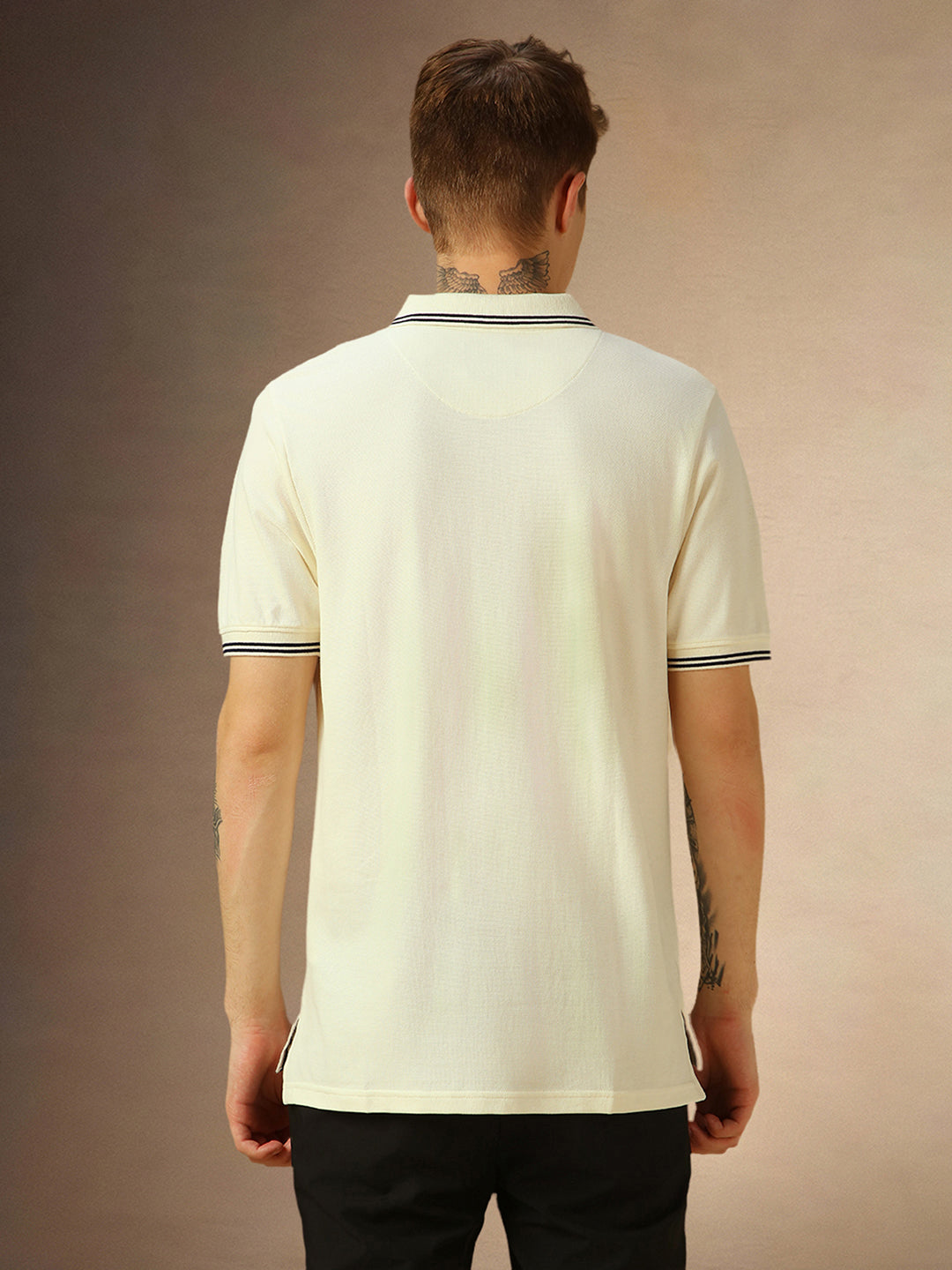 Men's White Solid Polo Collar Half Sleeves T-shirt