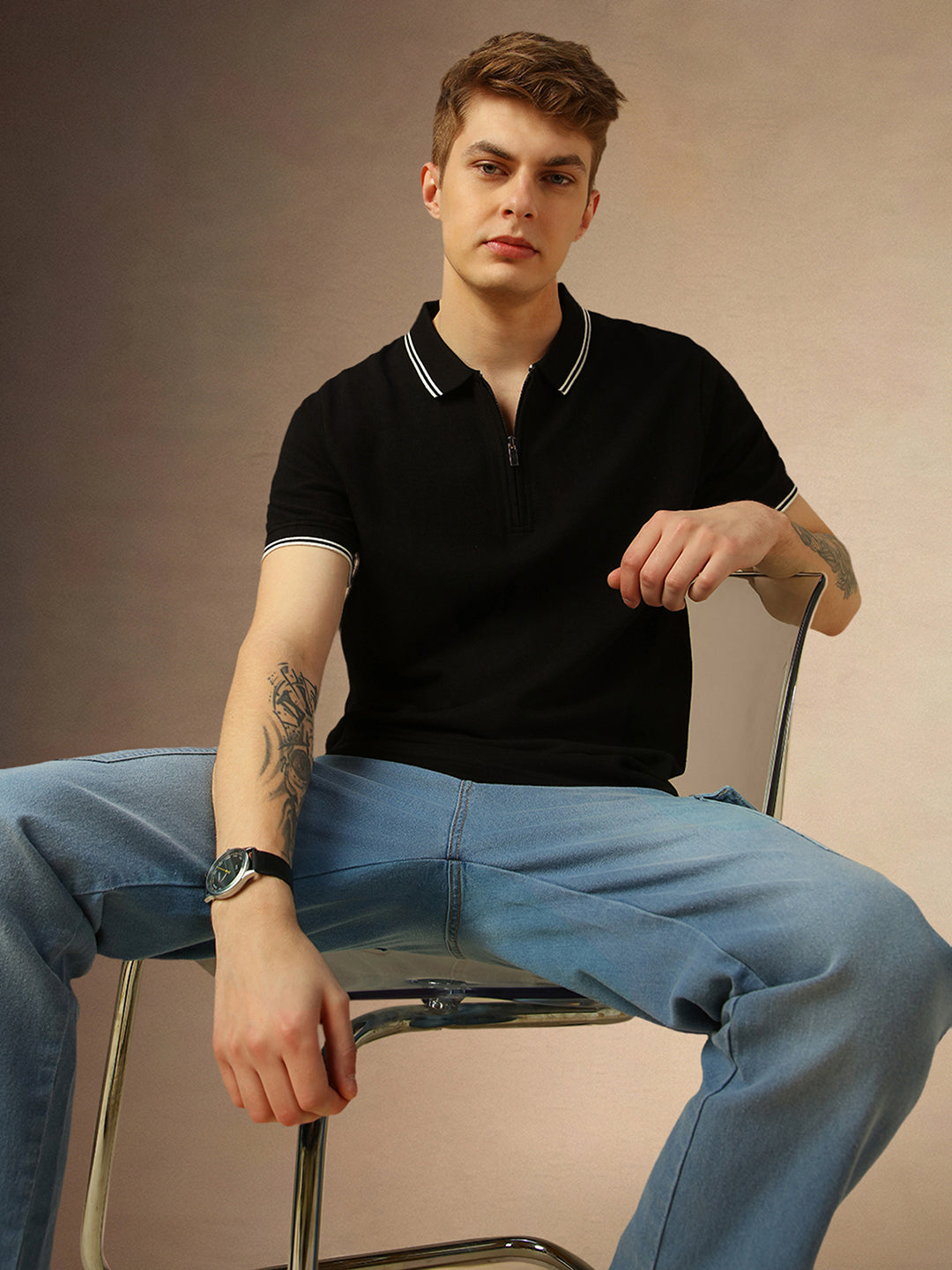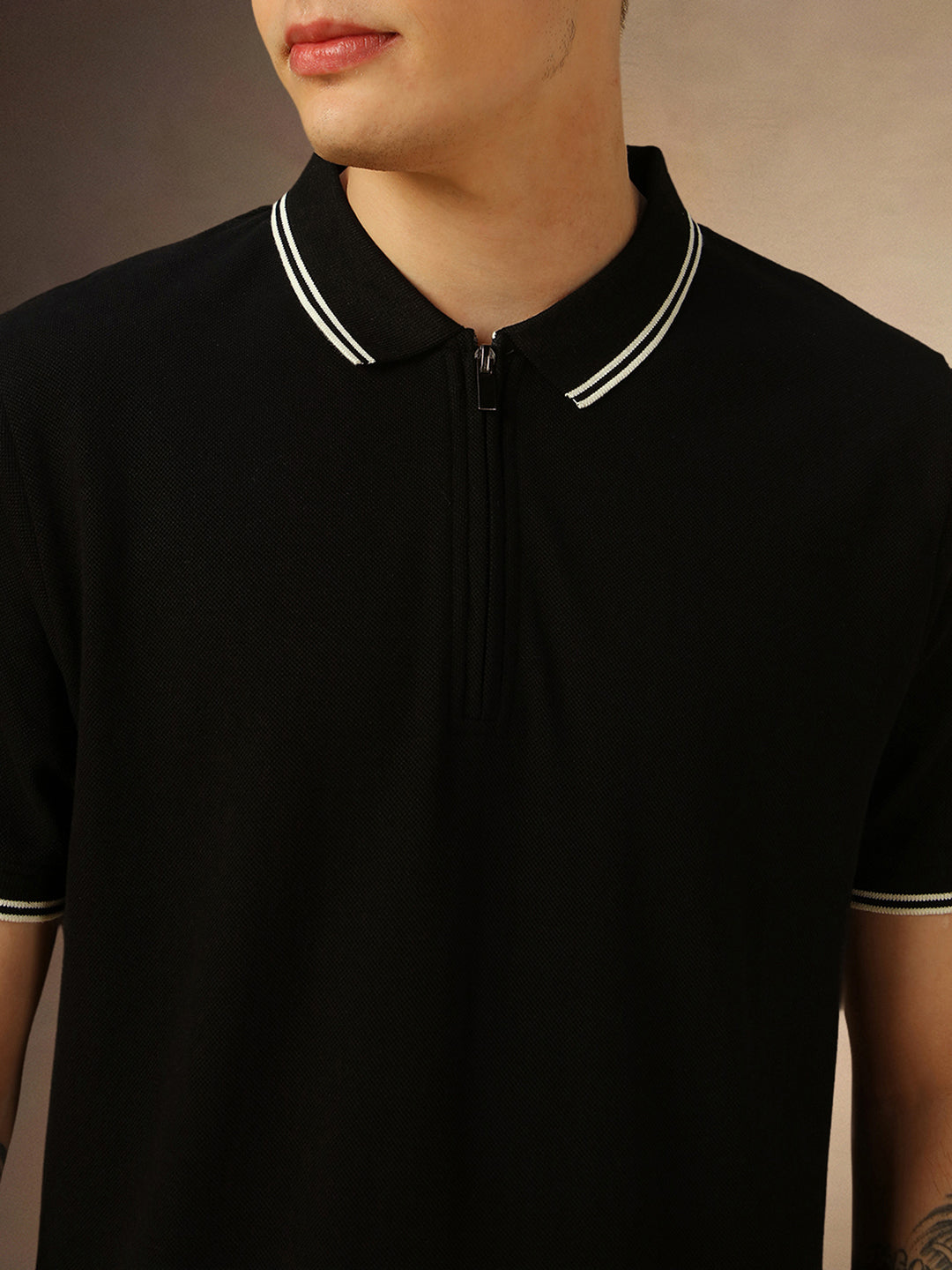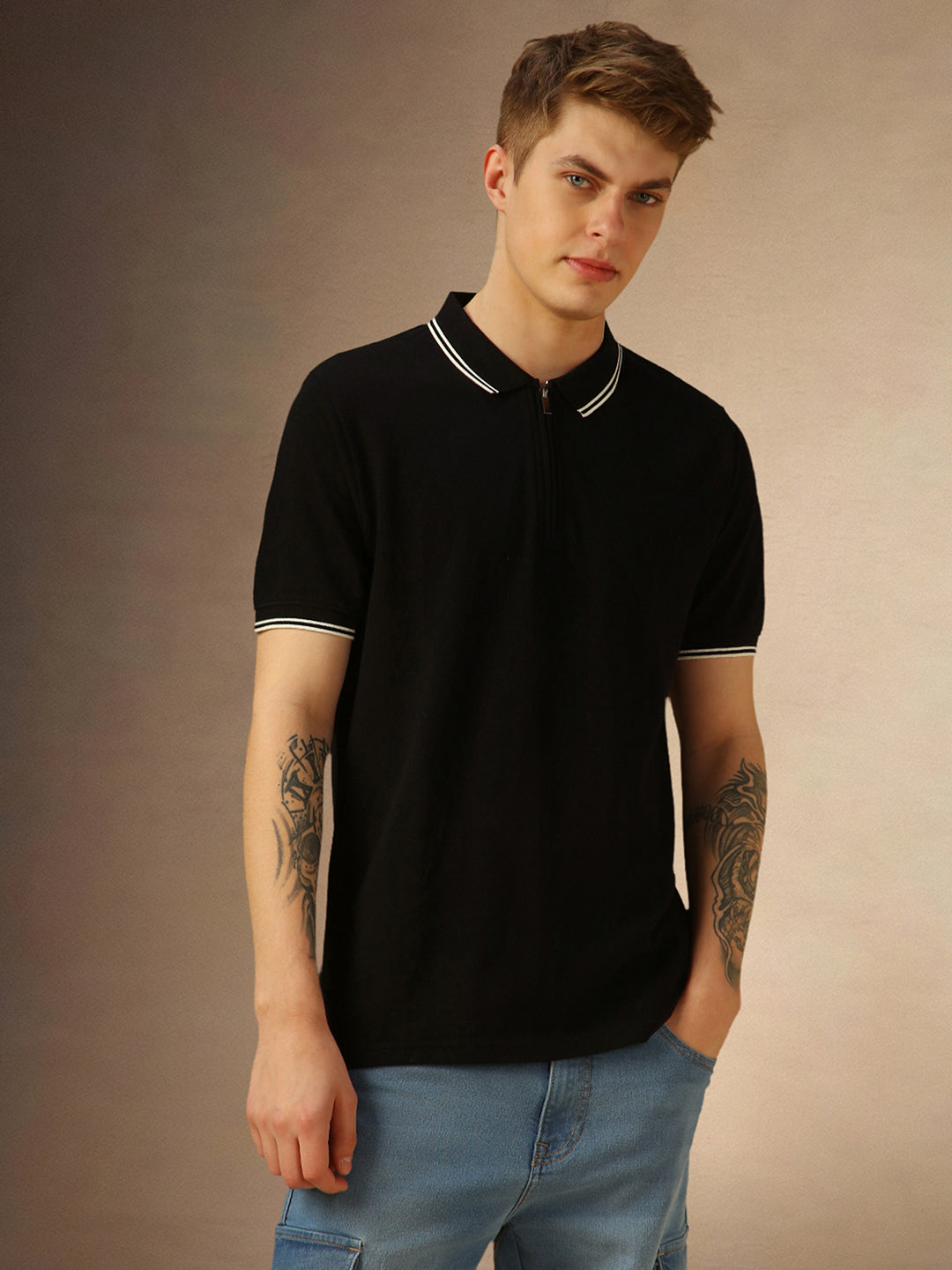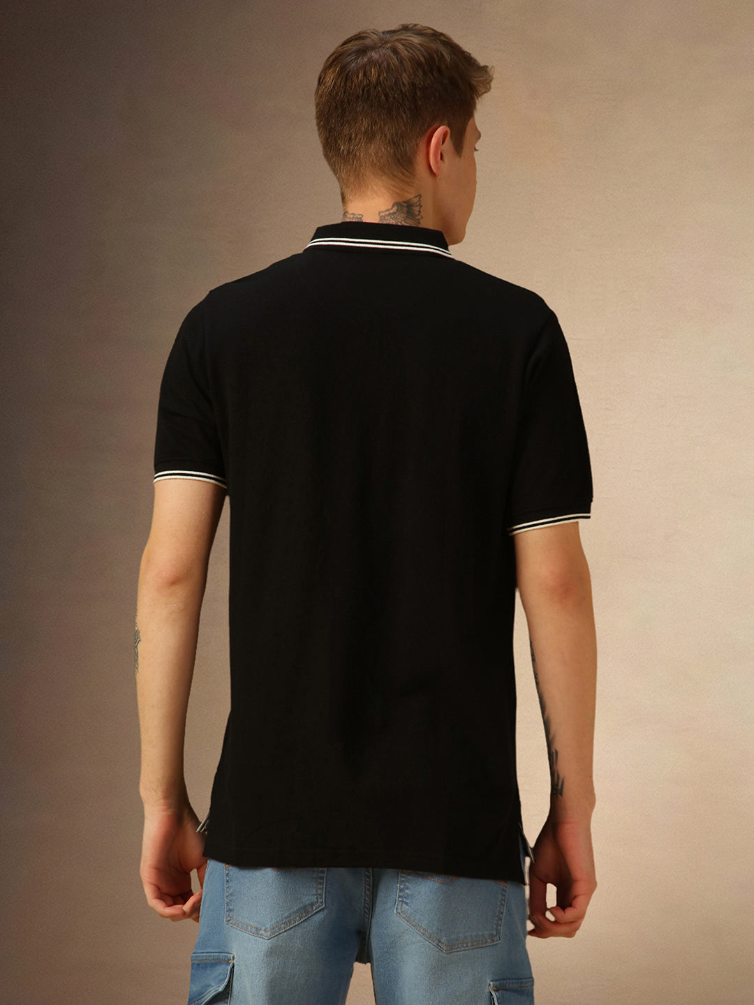 Men's Black Solid Polo Collar Half Sleeves T-shirt