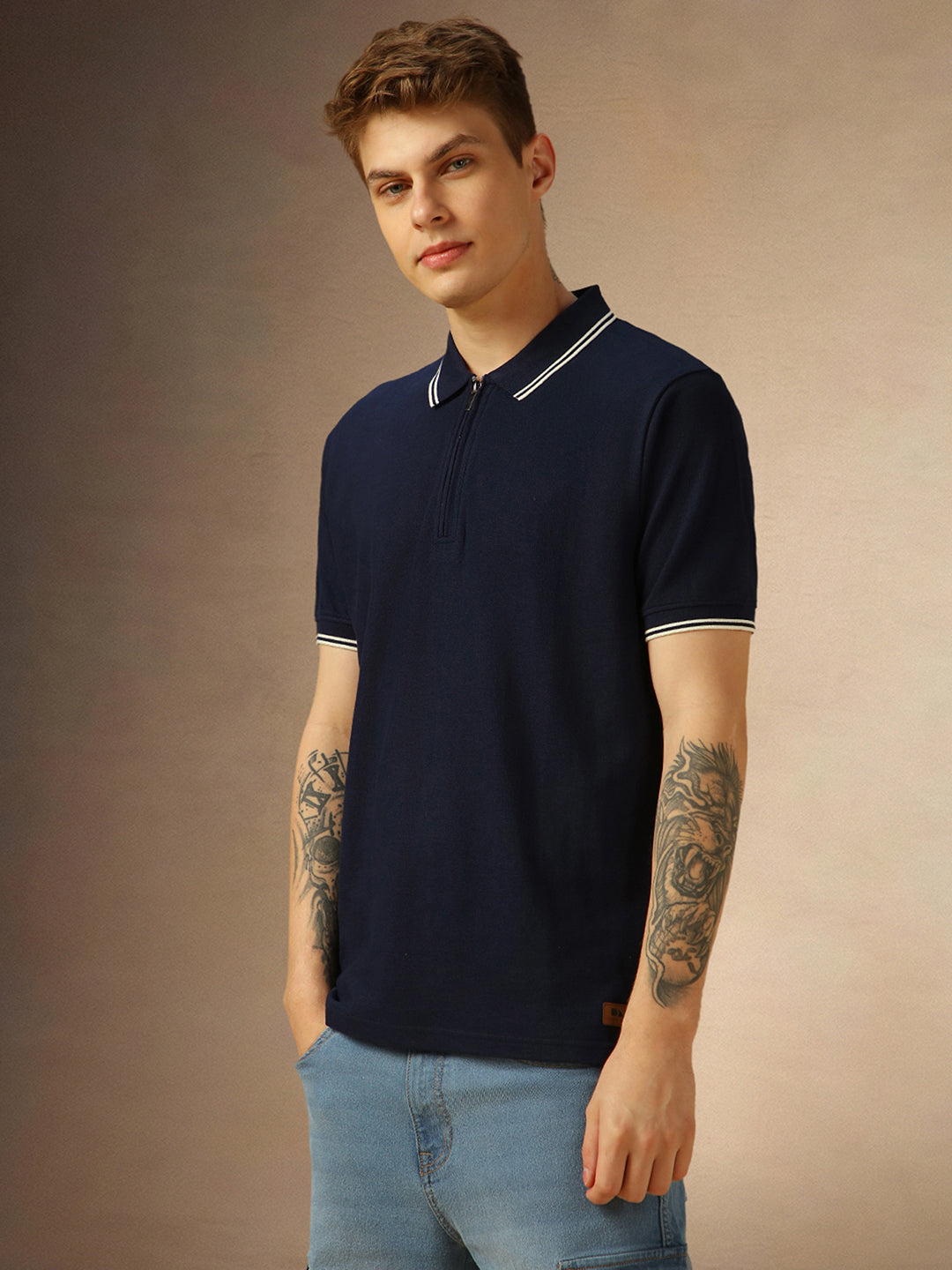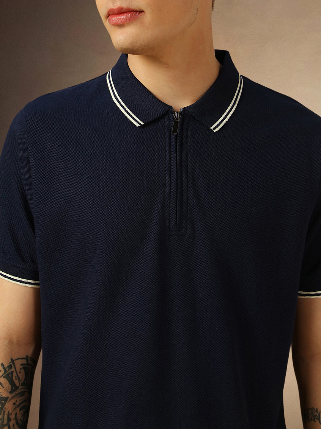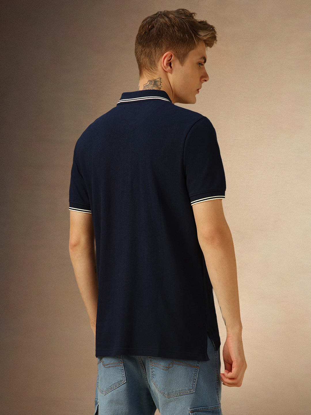 Men's Navy Blue Solid Polo Collar Half Sleeves T-shirt