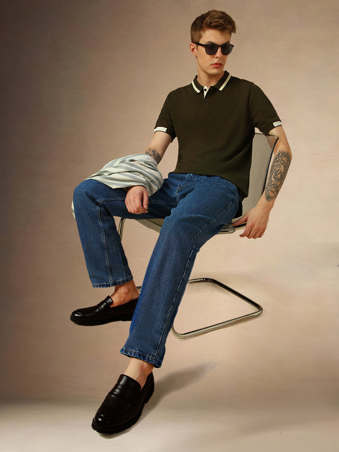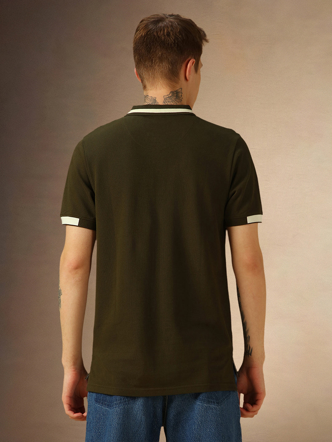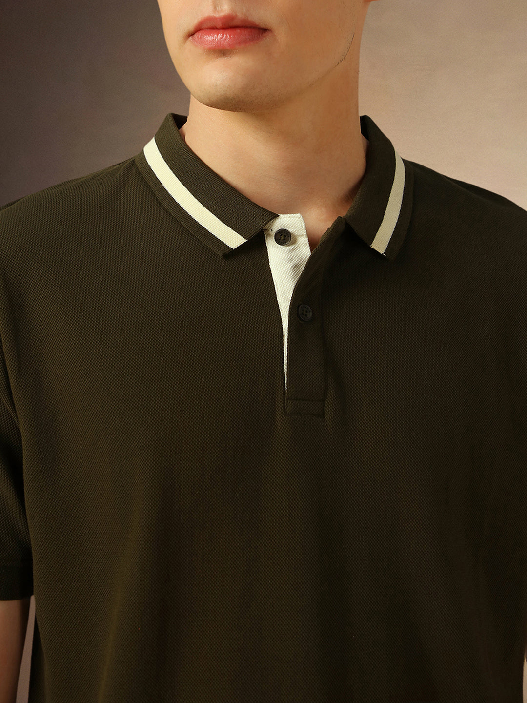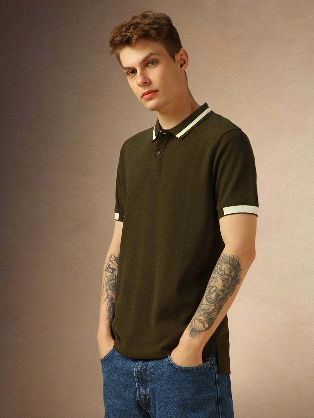 Men's Olive Solid Polo Collar Half Sleeves T-shirt