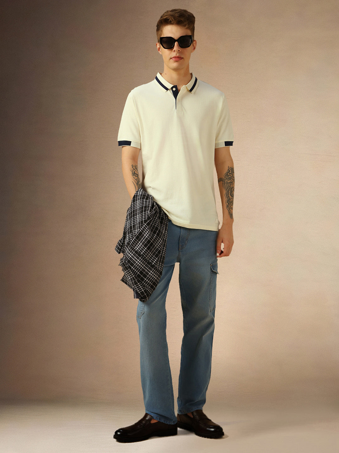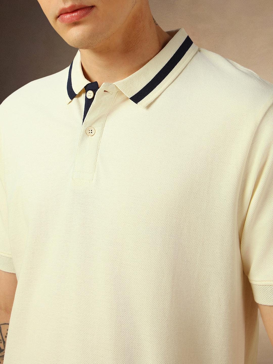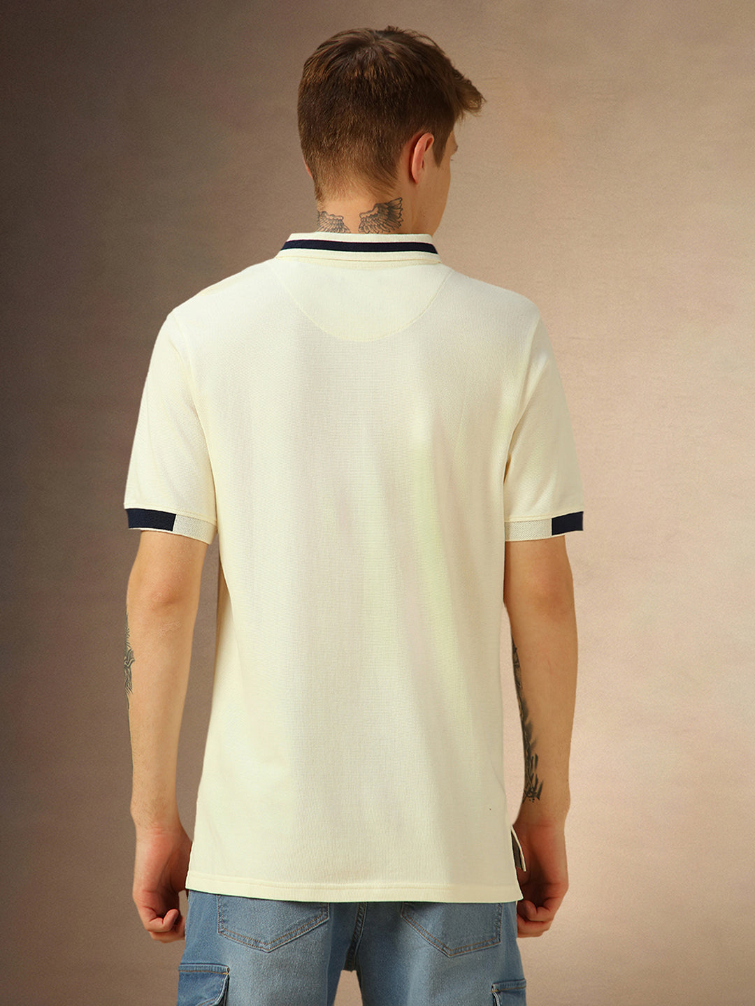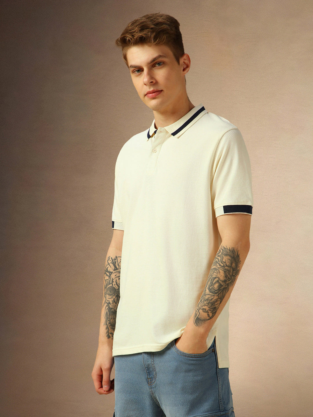 Men's White Solid Polo Collar Half Sleeves T-shirt