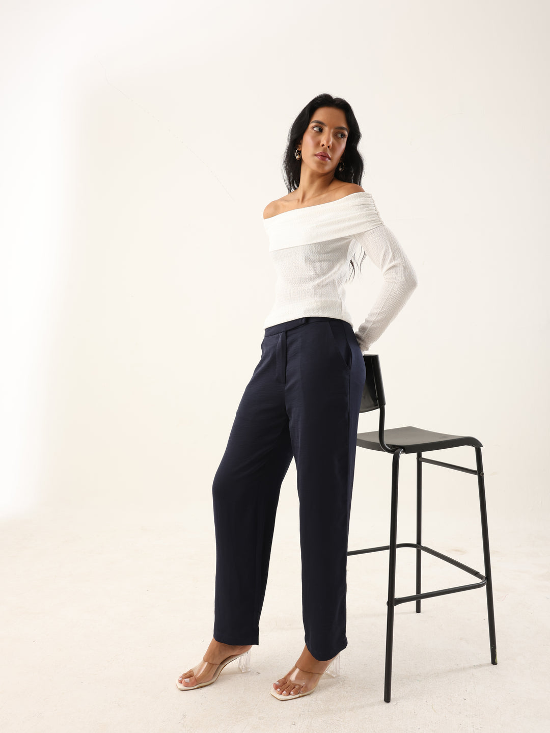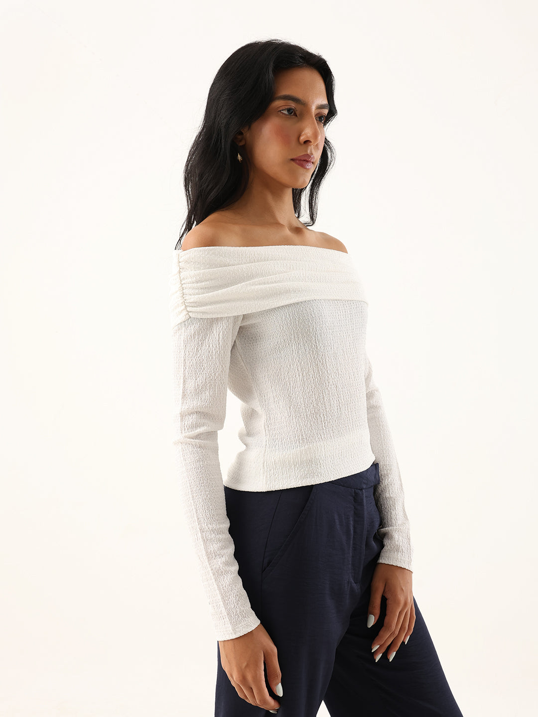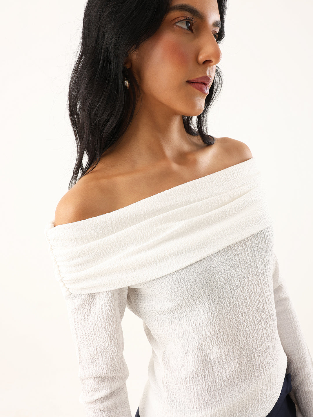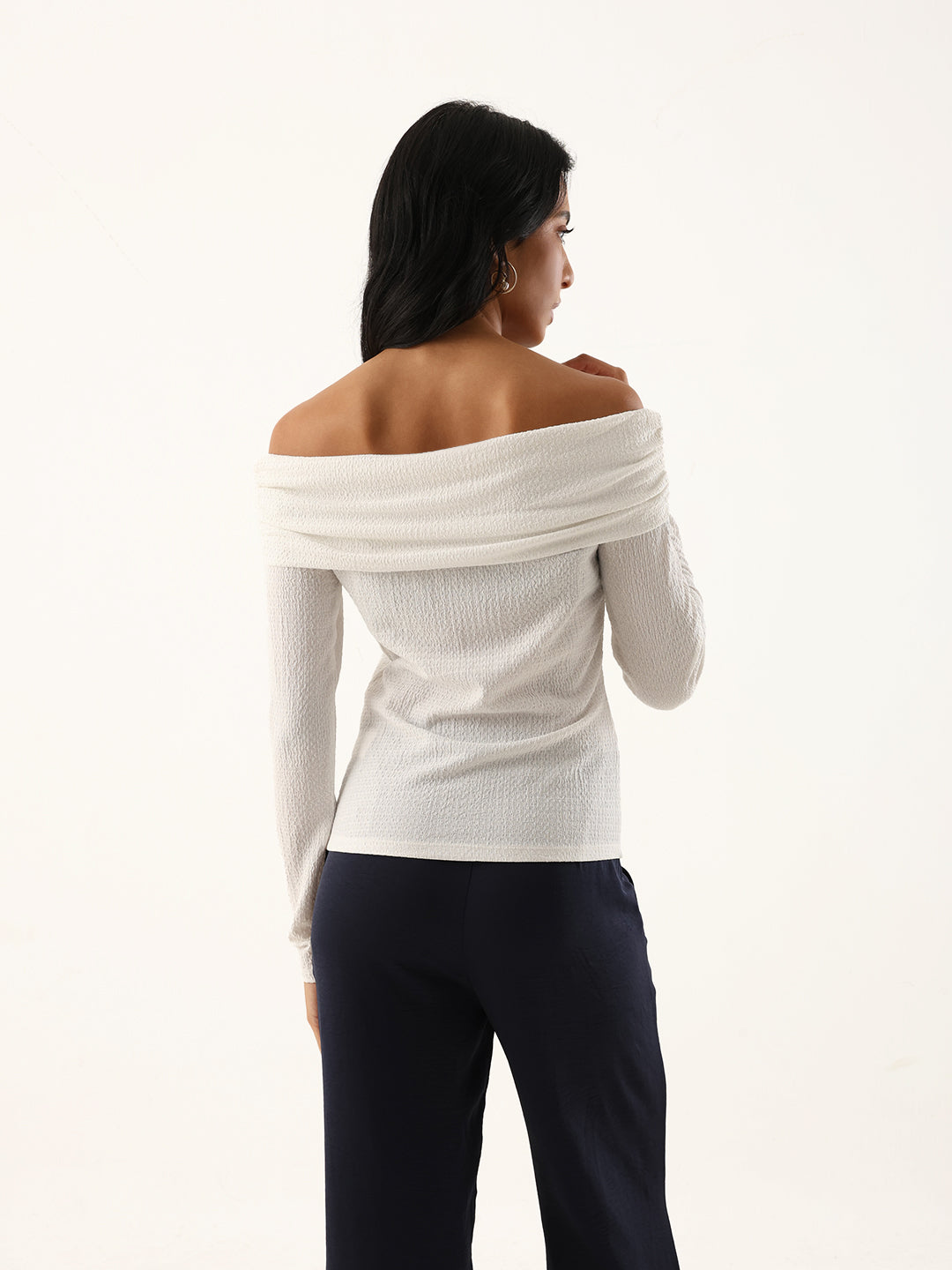 Woman Textured Slim Fit Off-Shoulder Sleeveless Tops