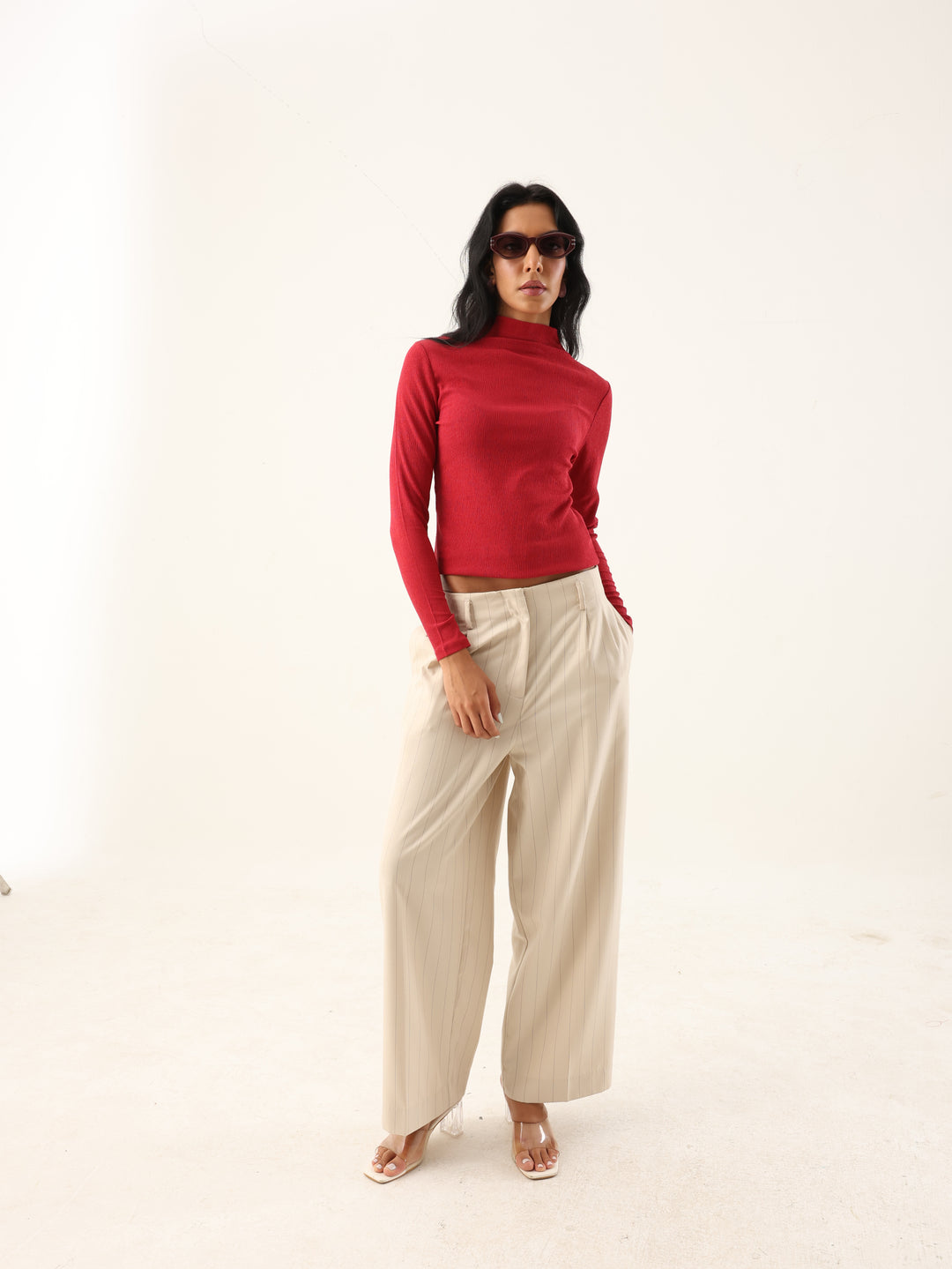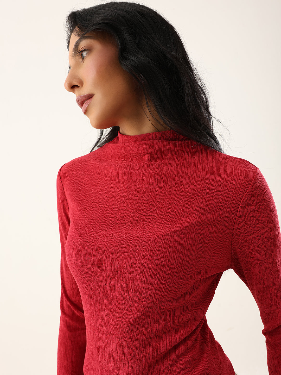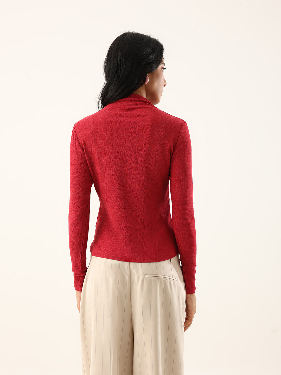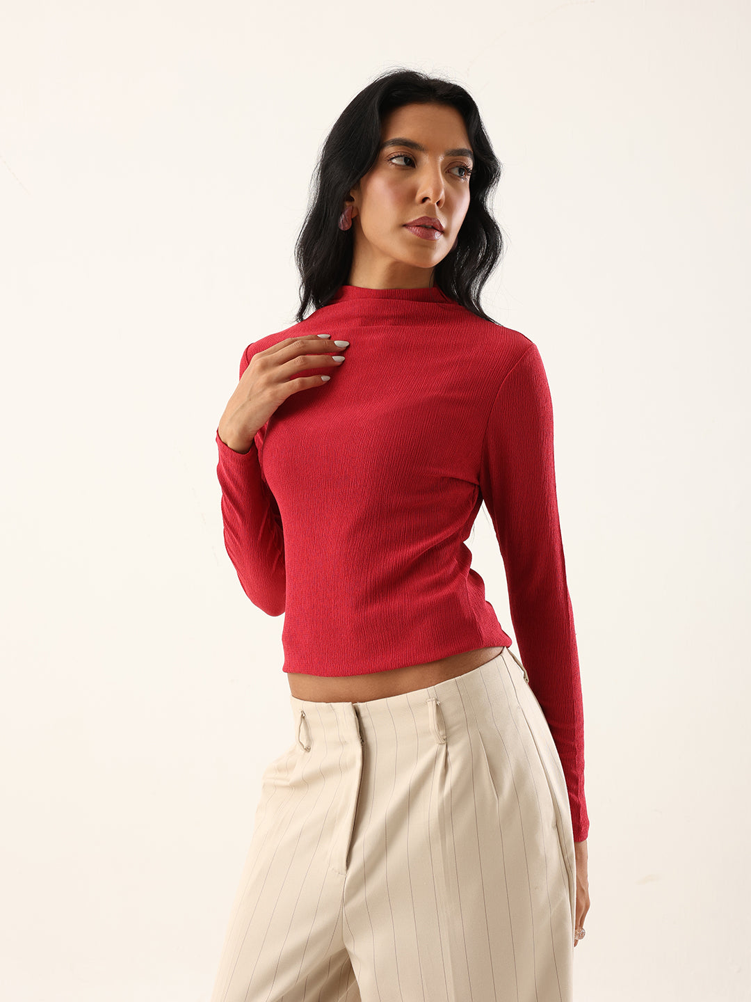 Woman Textured Slim Fit High Neck Full Sleeves Tops