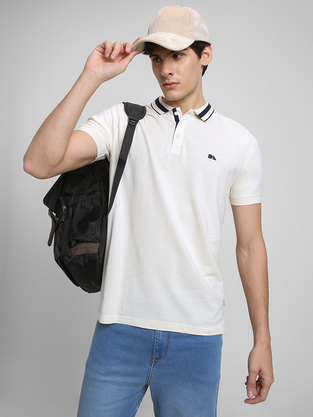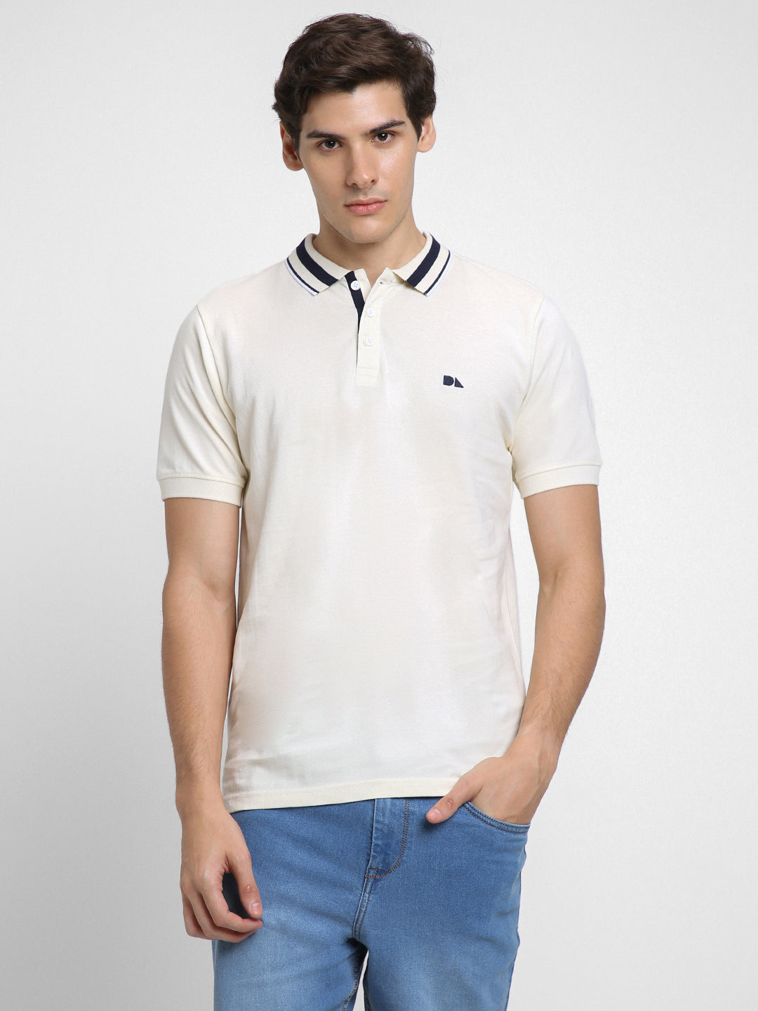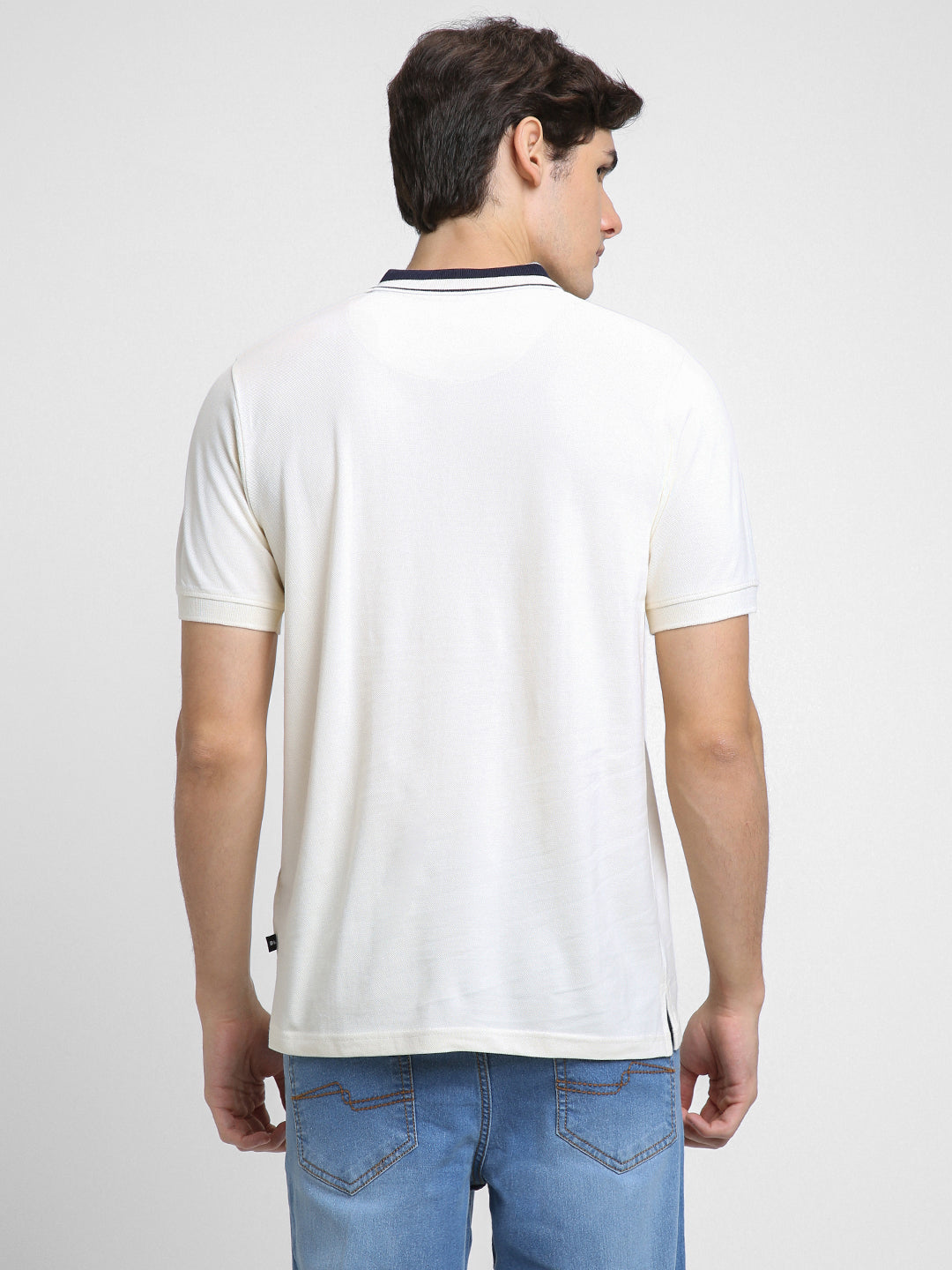 Men's Off-White Solid Henley Neck Half Sleeves T-shirt