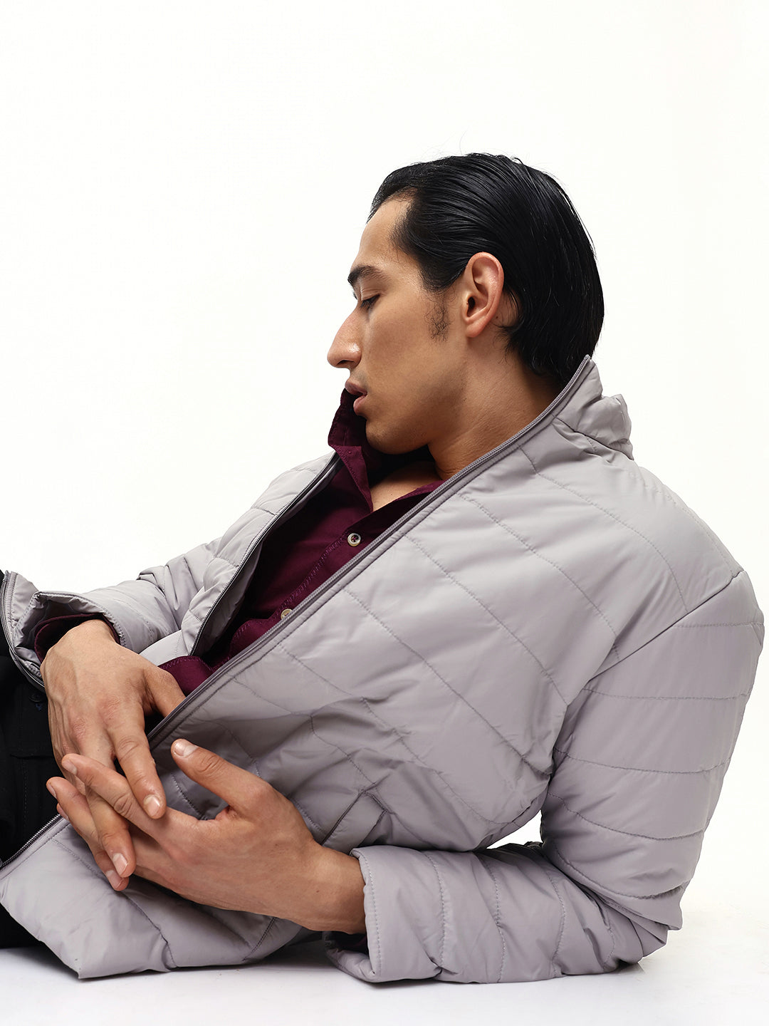 Mens Long-Sleeve Jacket - Lightweight Casual Winterwear (Grey)