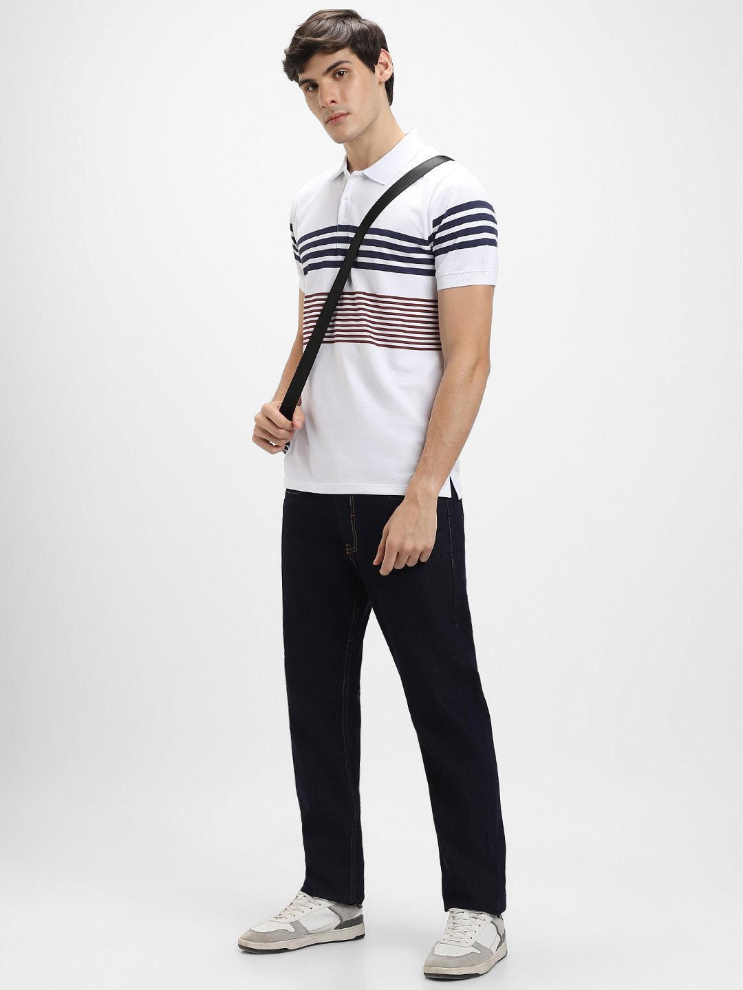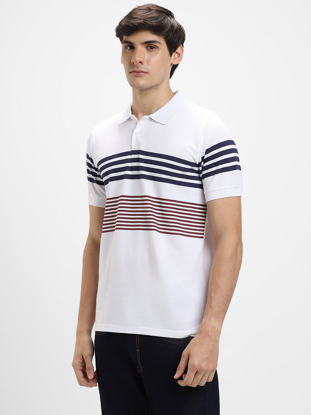 Men's Polo Regular Fit Y/D Stripes White T-shirt