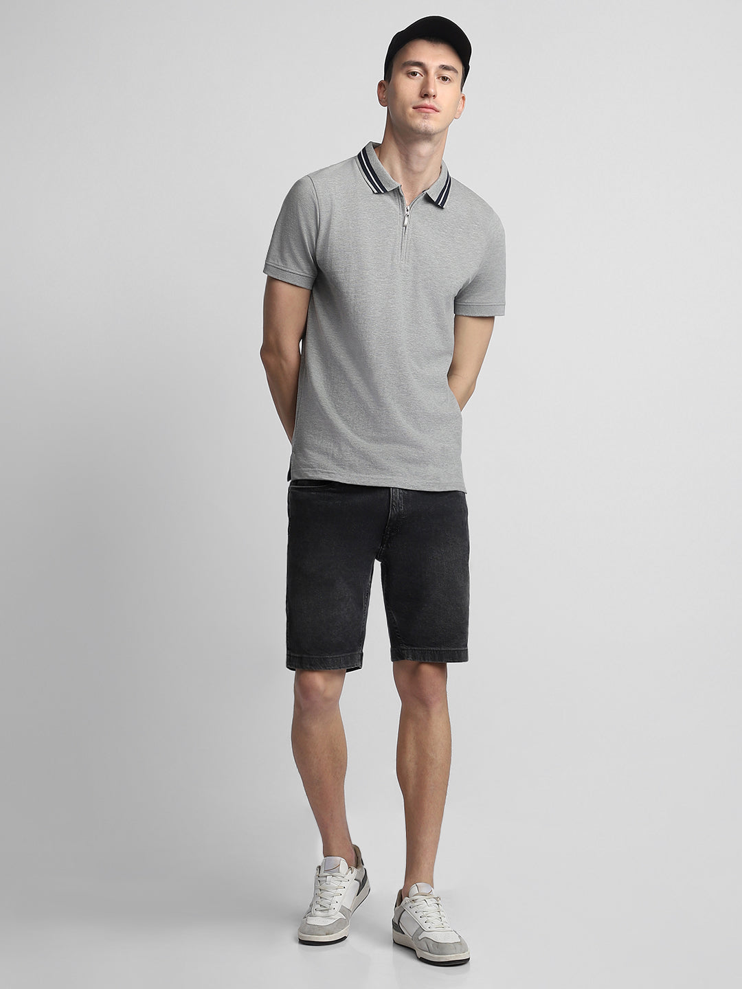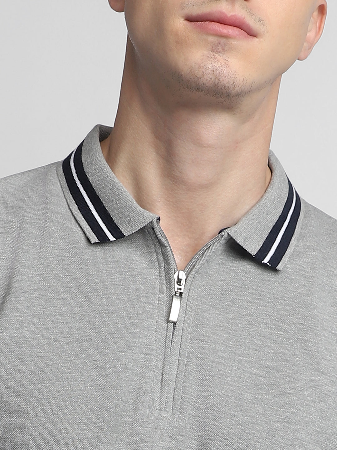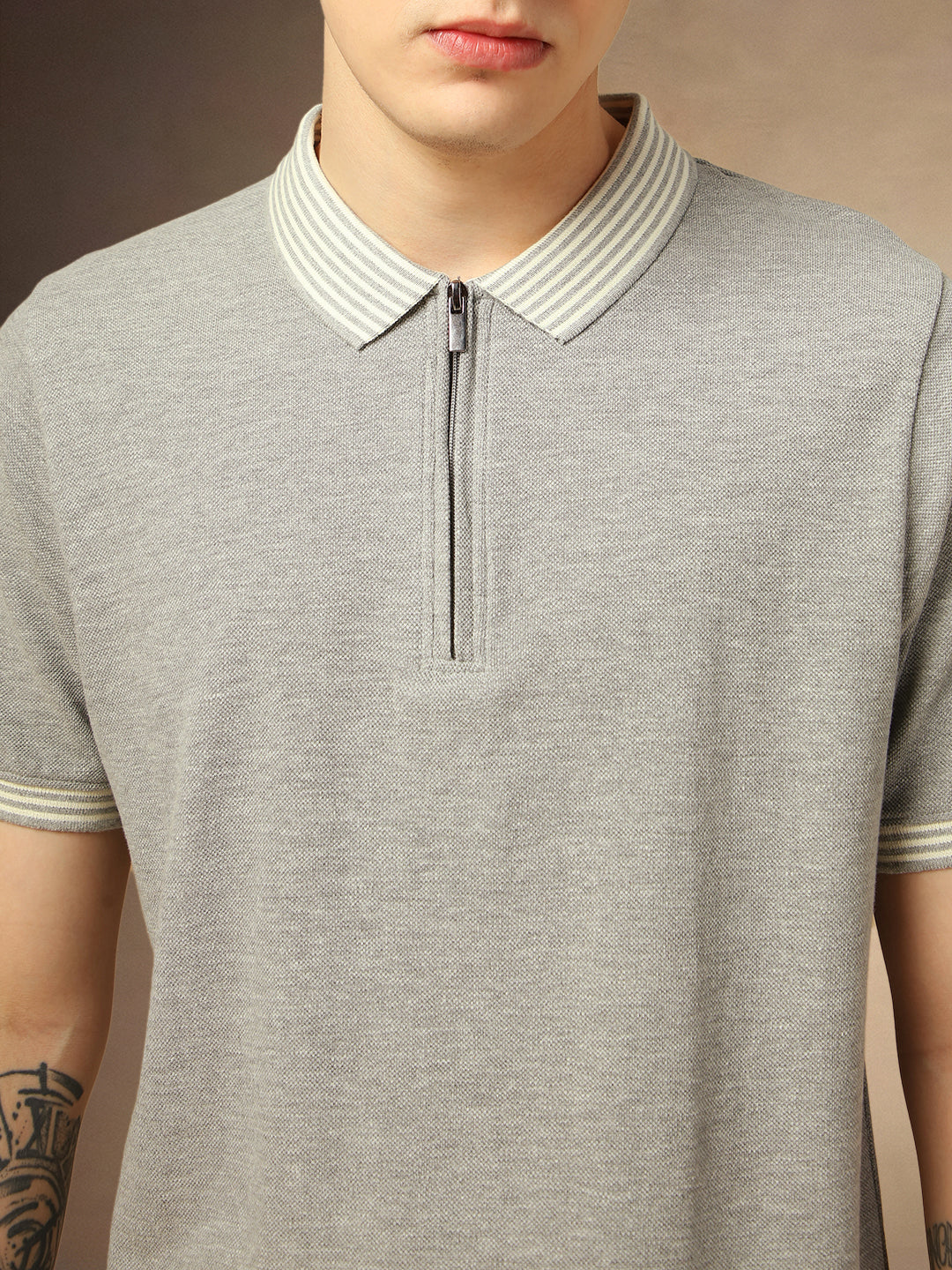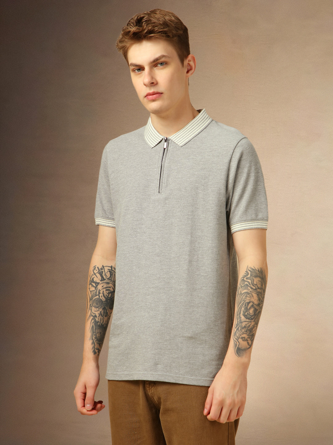 Men's Light Grey Solid Polo collar Half Sleeves T-shirt