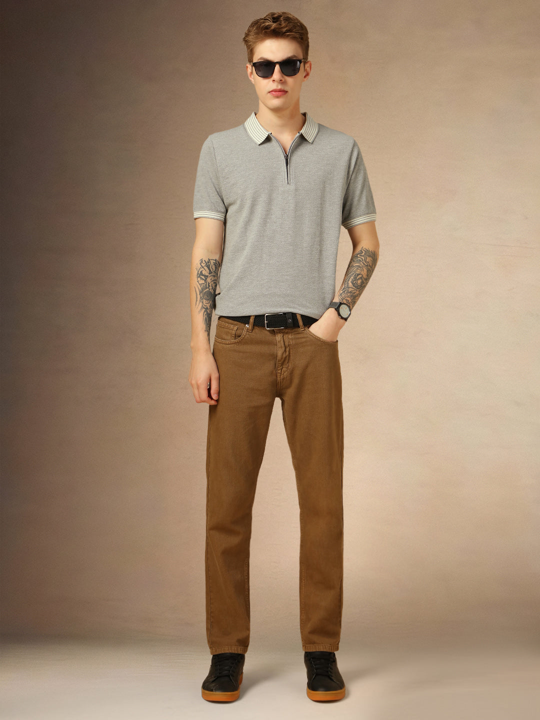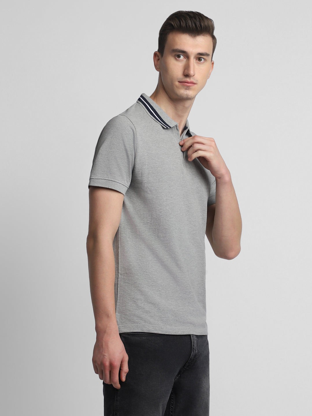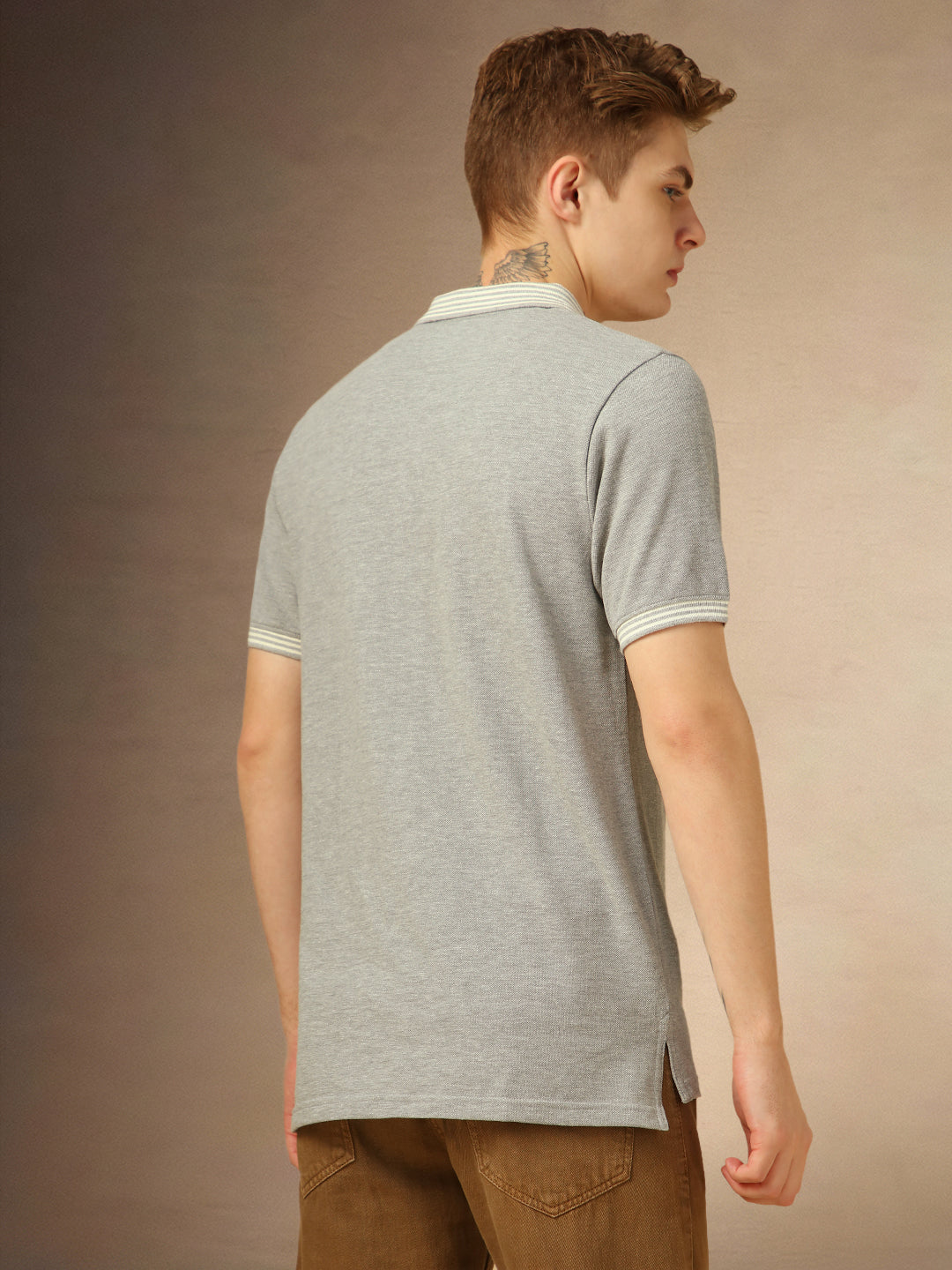 Men's Polo Regular Fit Solid Grey T-Shirt
