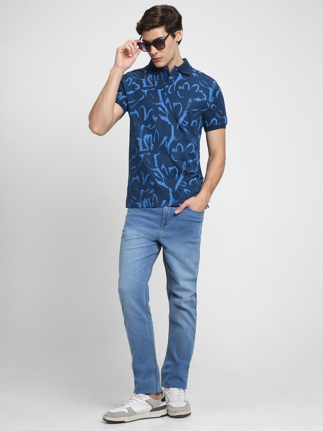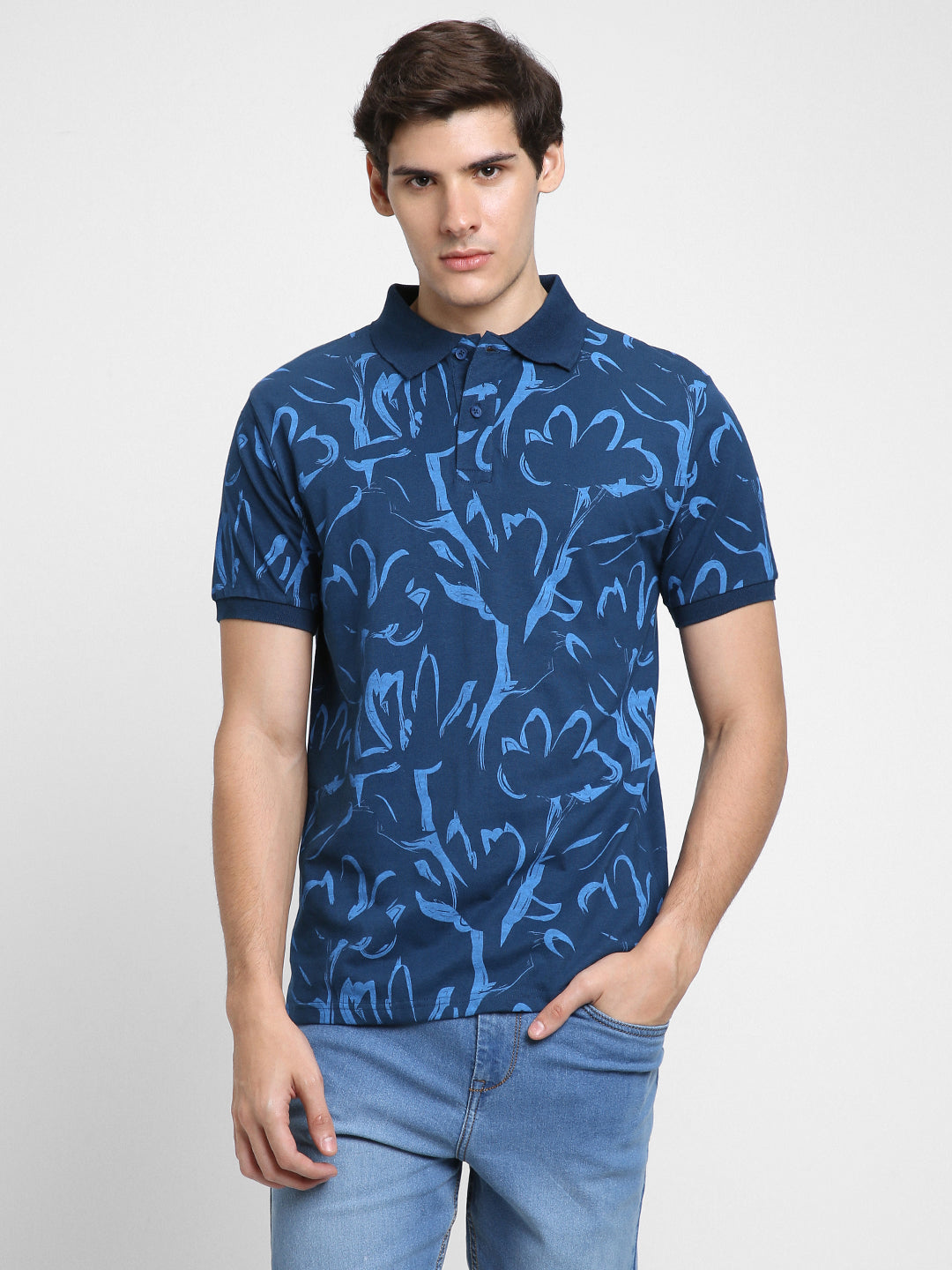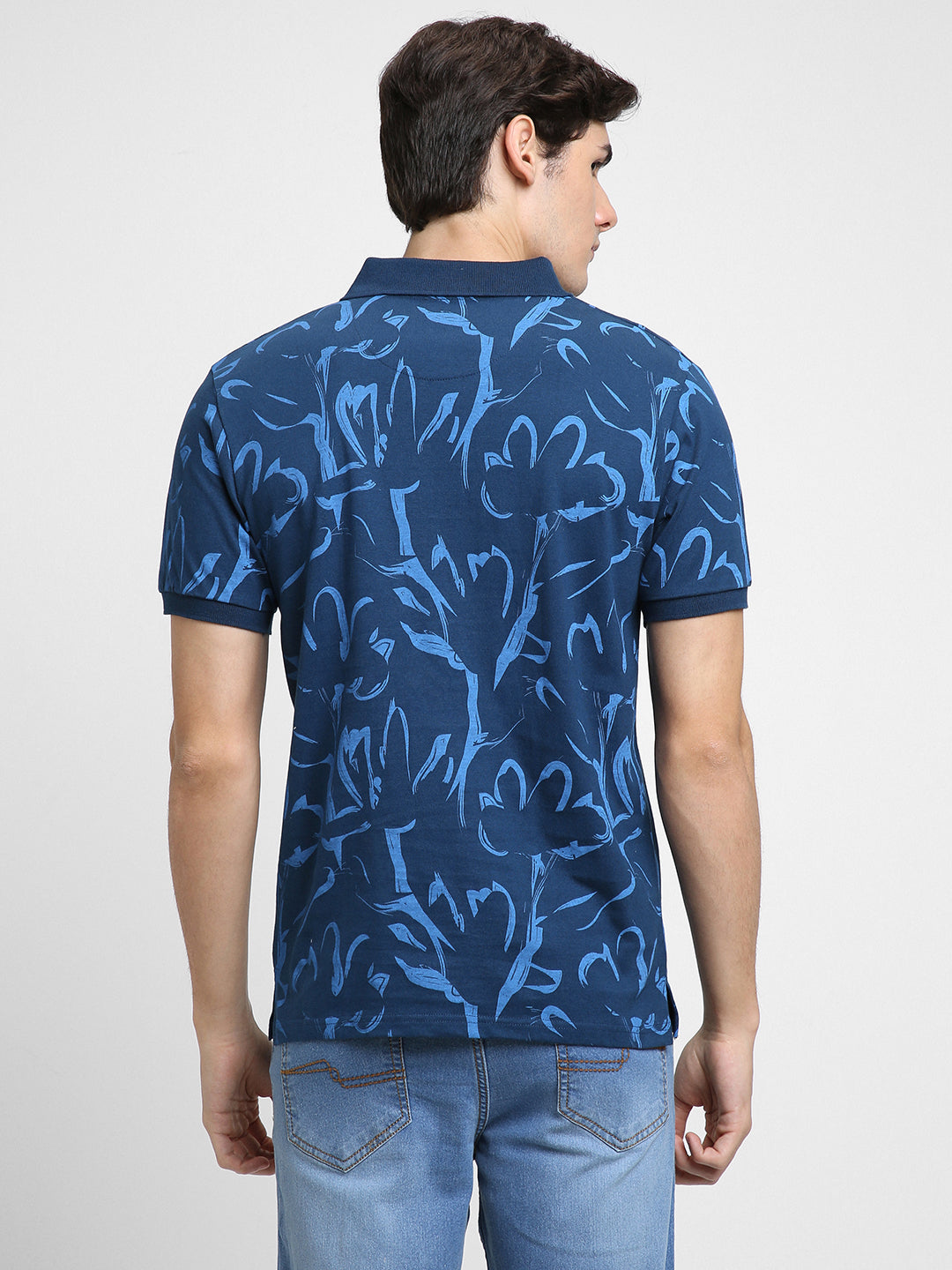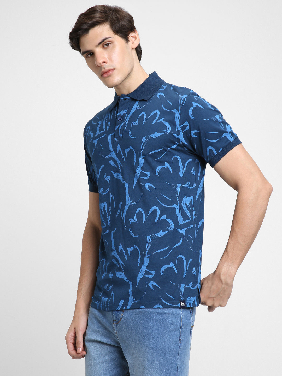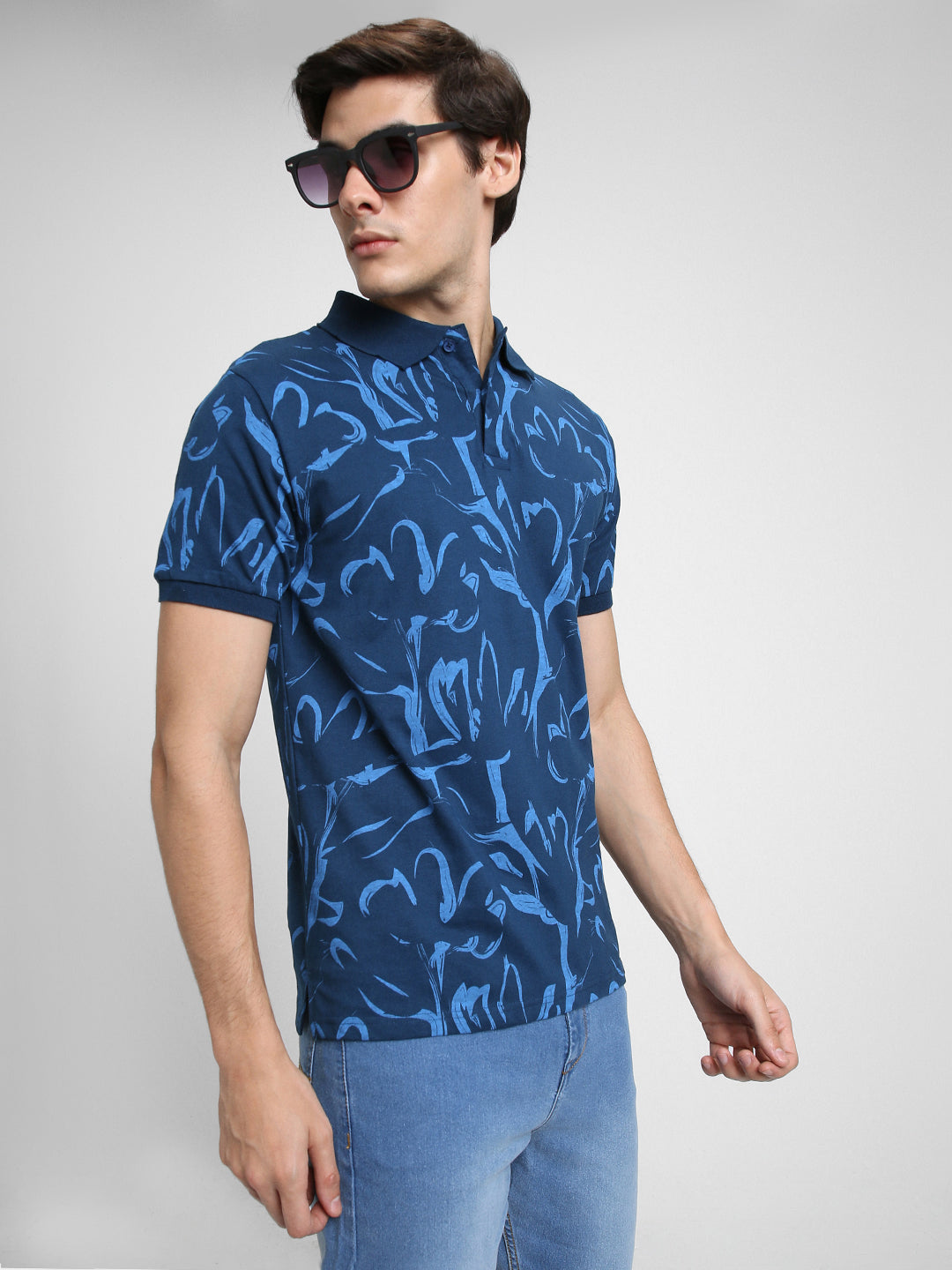 Men's Spread Collar Slim Fit Aop Blue T-shirt
