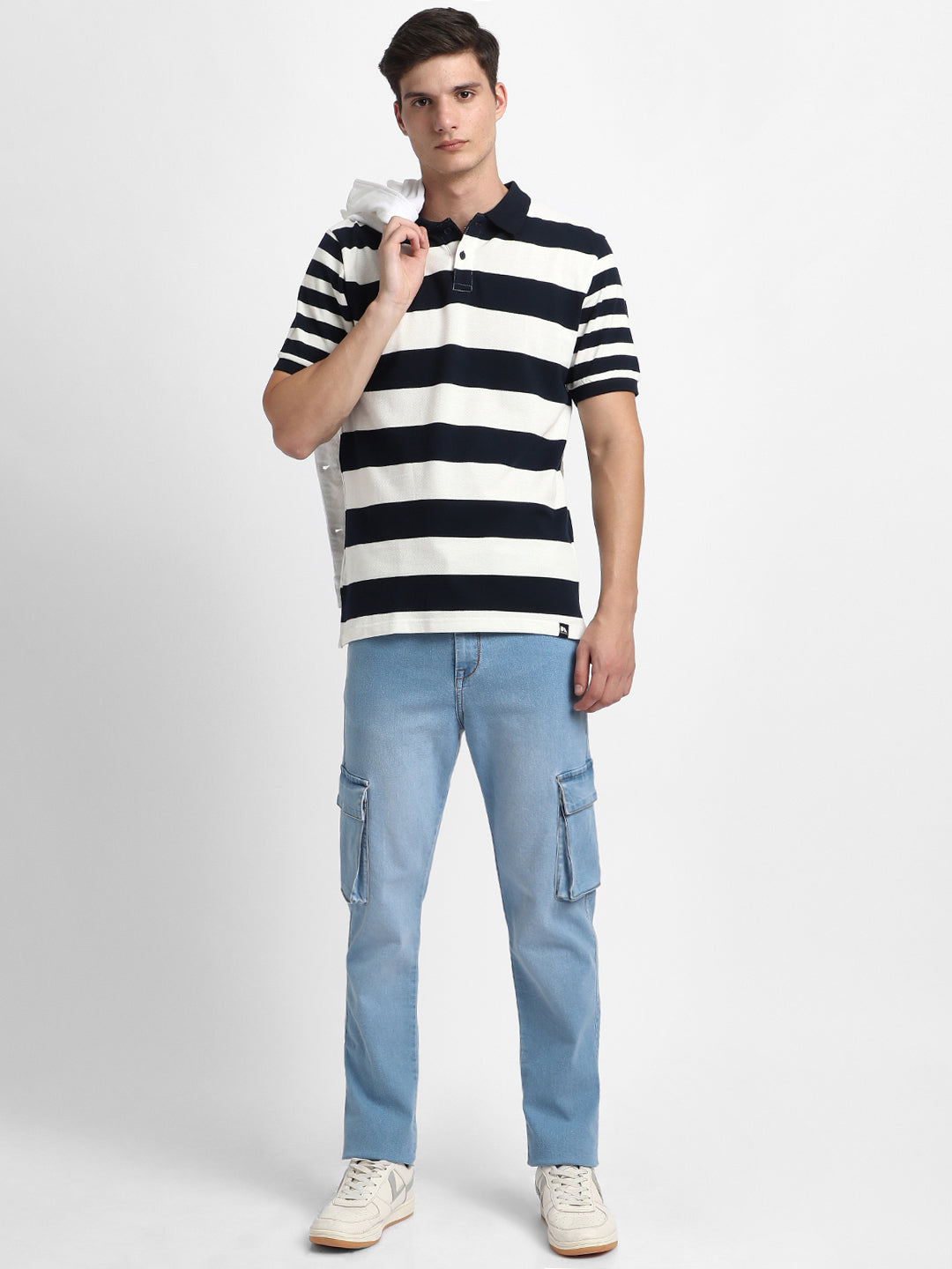 Men's Straight Cargo Fit Washed Indigo Stretchable Jeans