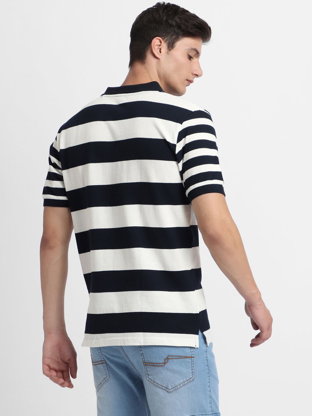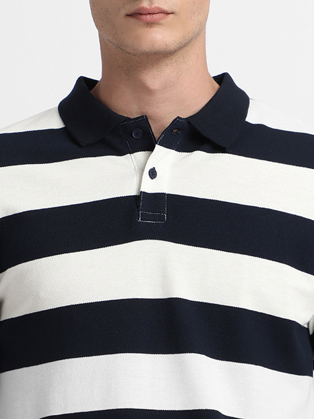 Men's Spread Collar Regular Fit Y/D Stripes Navy T-Shirt