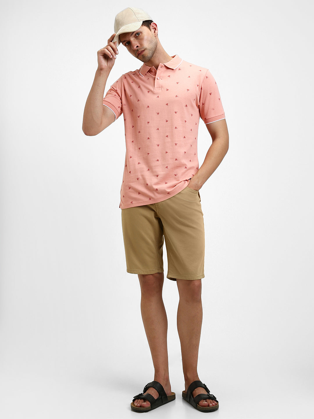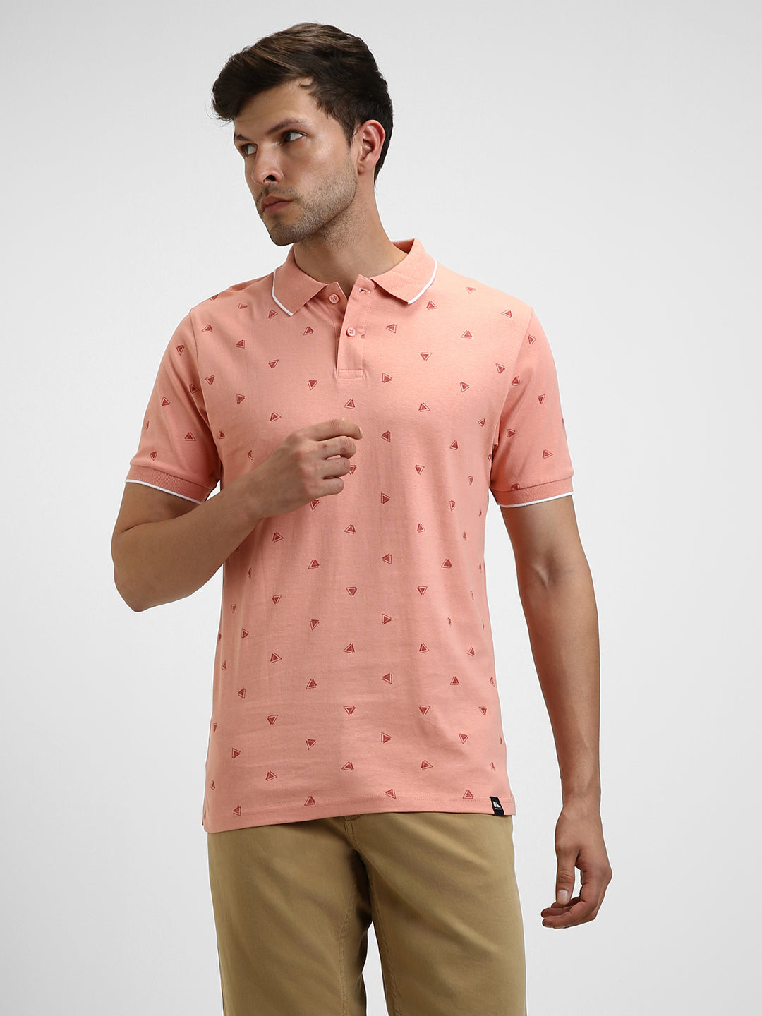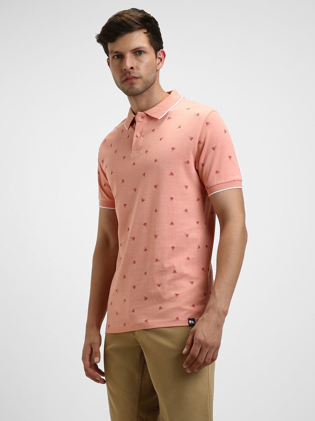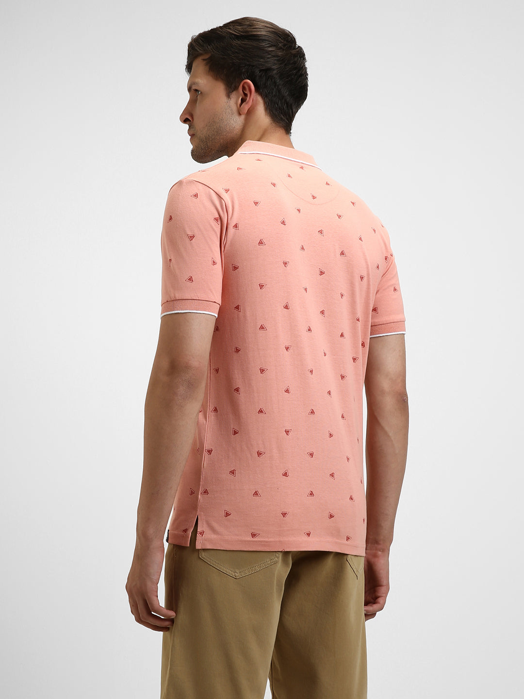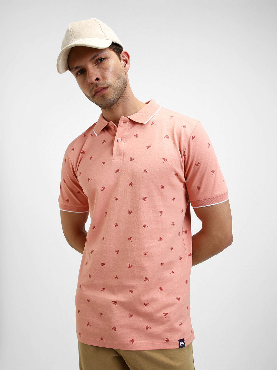 Men's Spread Collar Regular Fit Aop Pink Polo T-Shirt