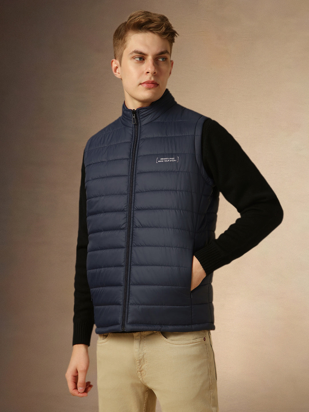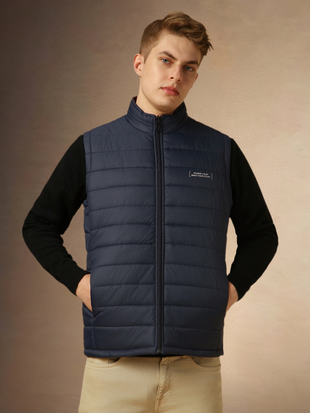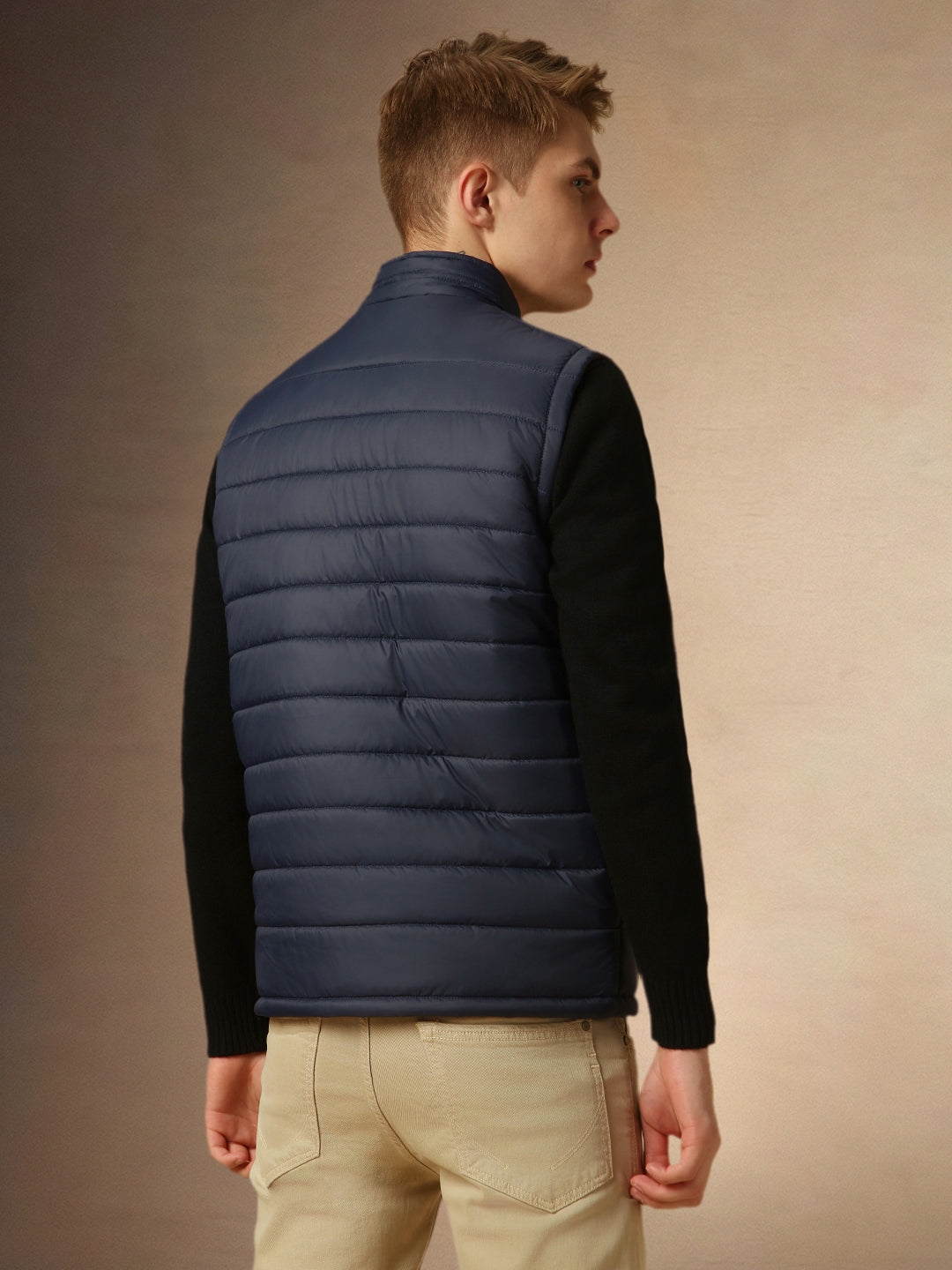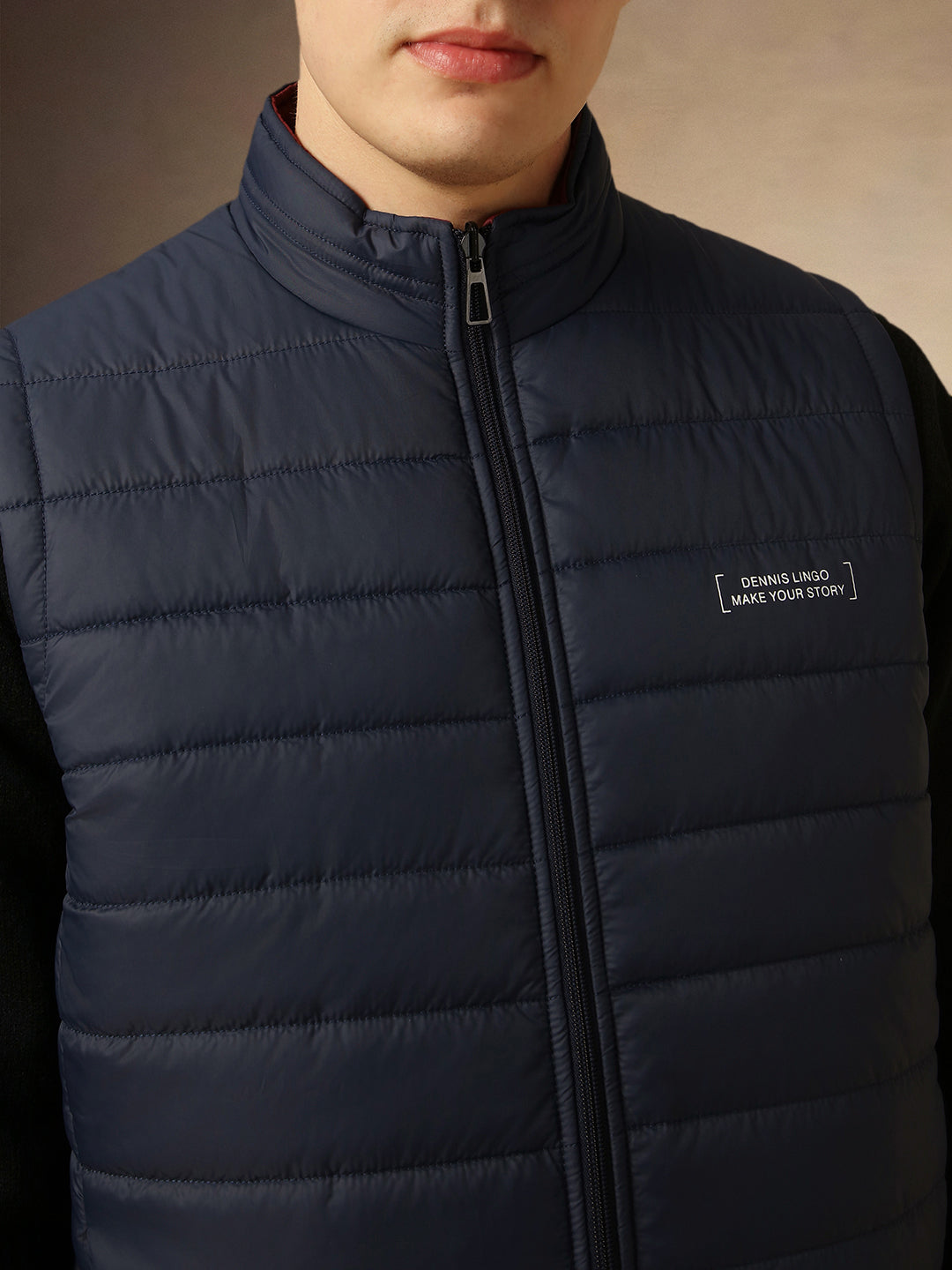 Men's Navy Mock Neck Sleeveless Reversible Gilet Jacket