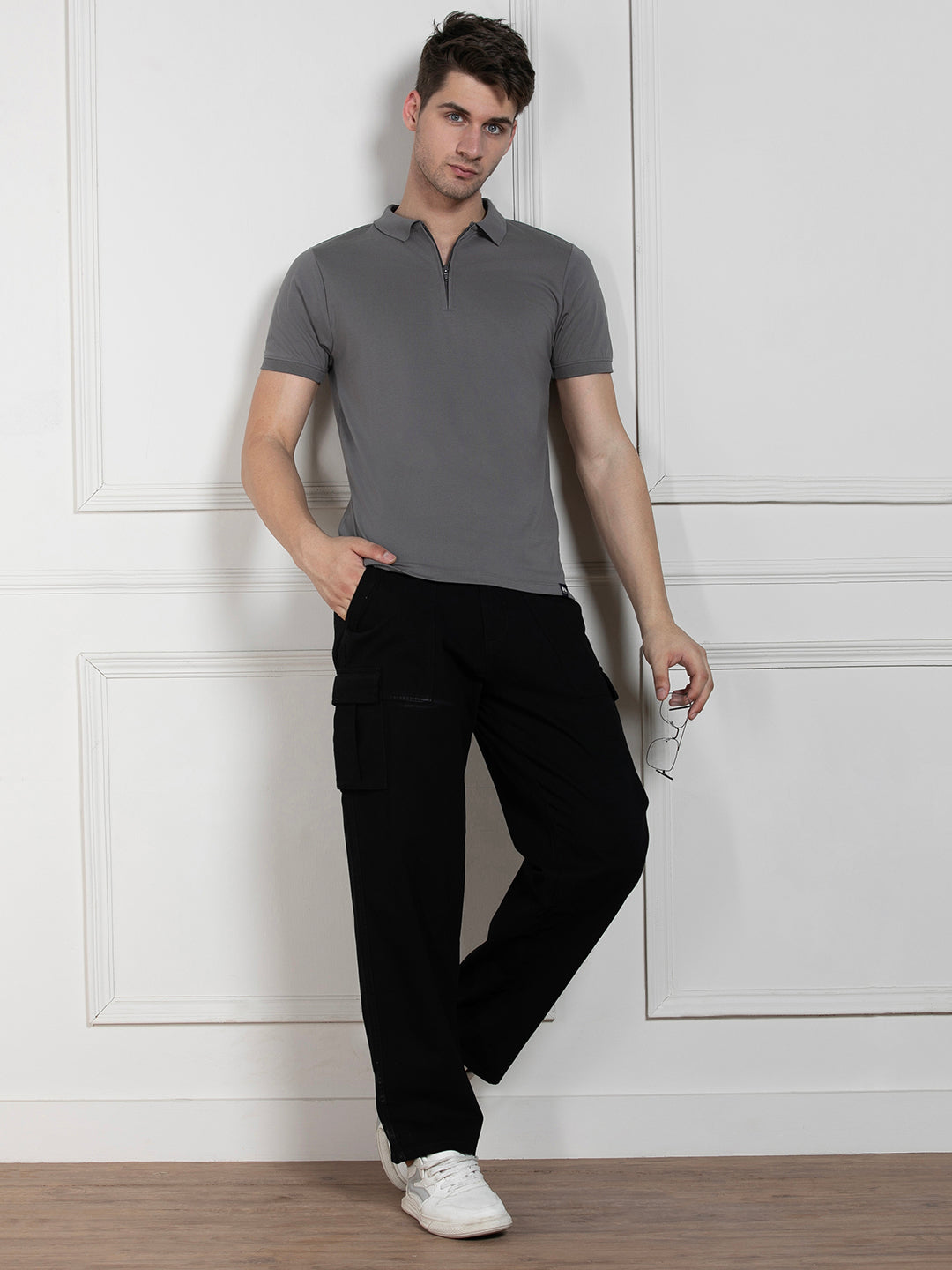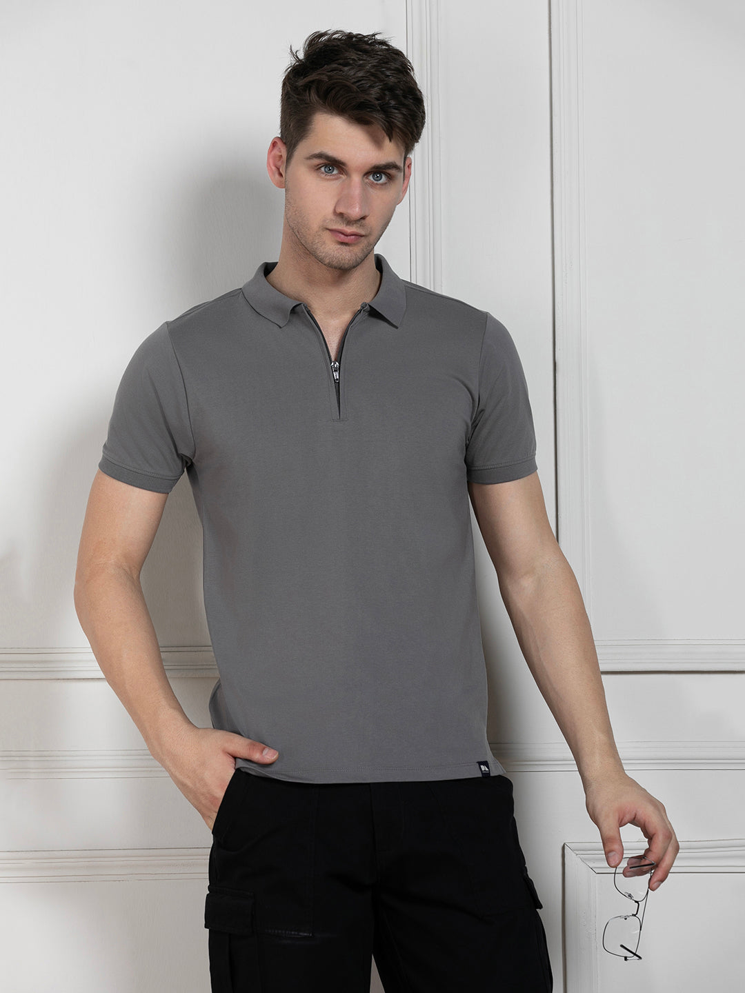 Men's Charcoal Polo Collar Solid Regular Fit T-Shirt