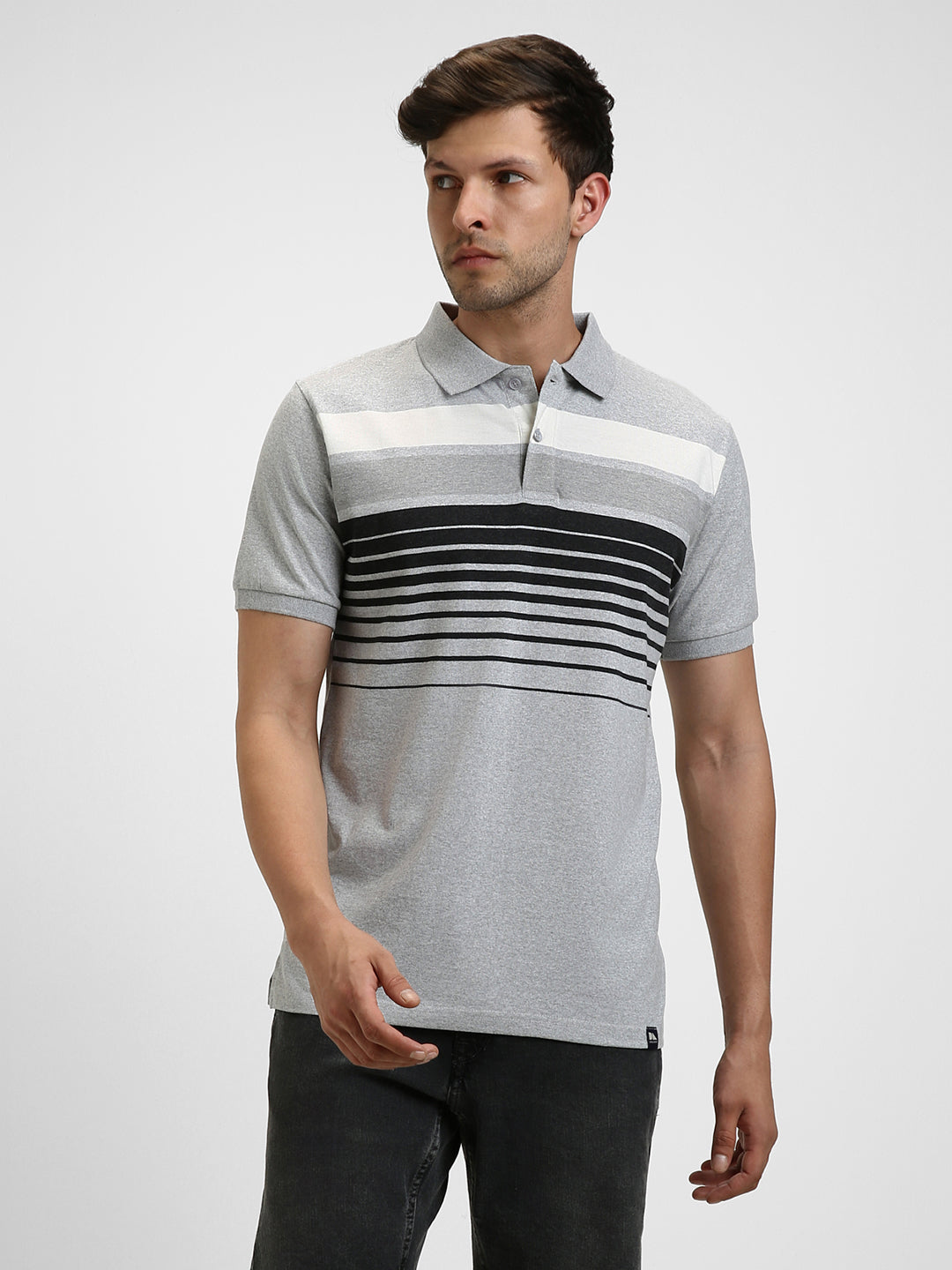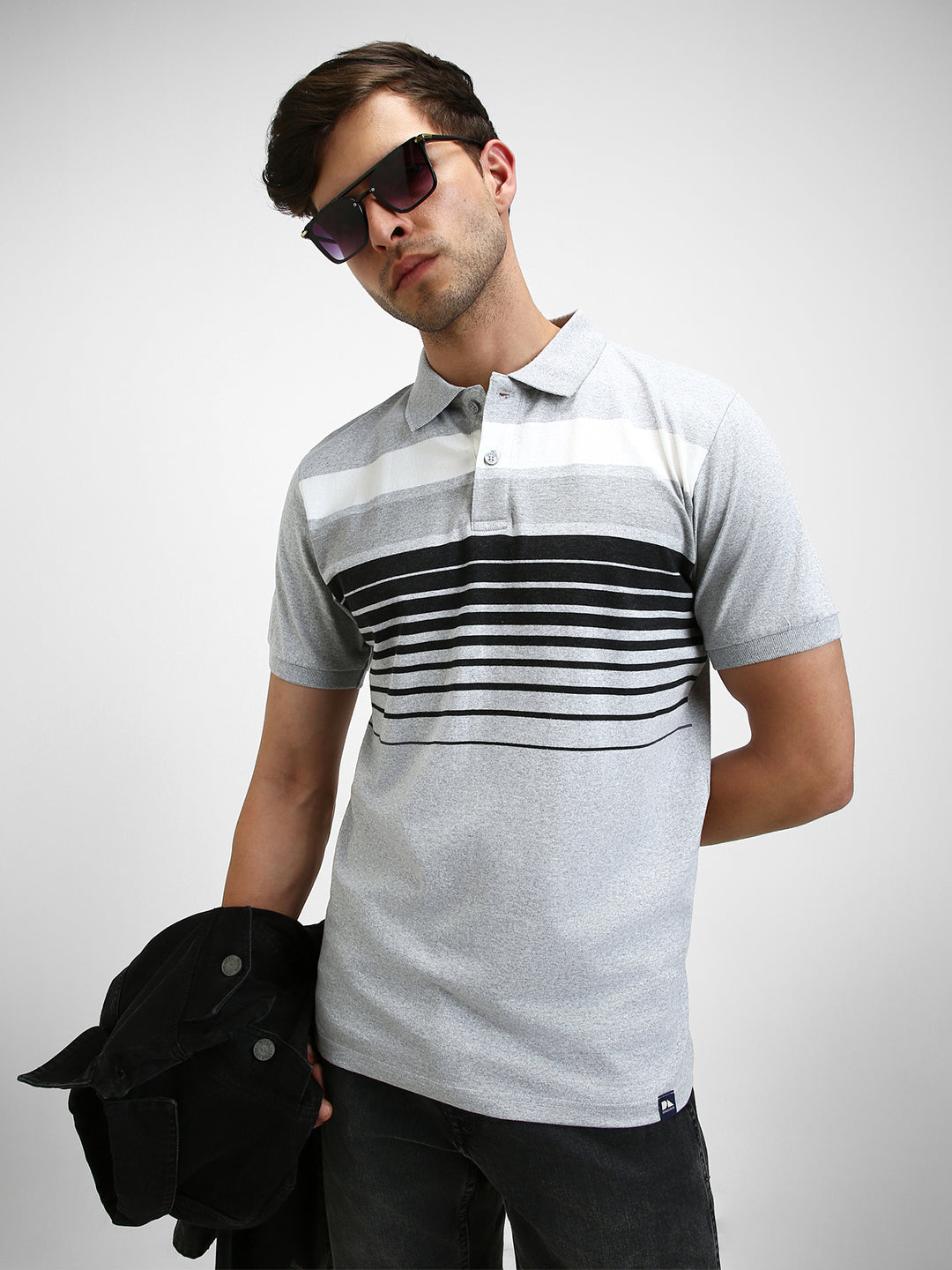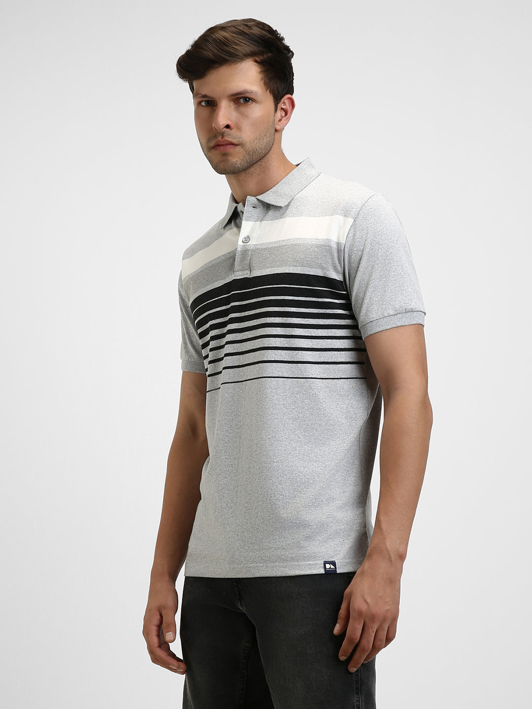 Men's Spread Collar Regular Fit Y/D Stripes Grey T-shirt