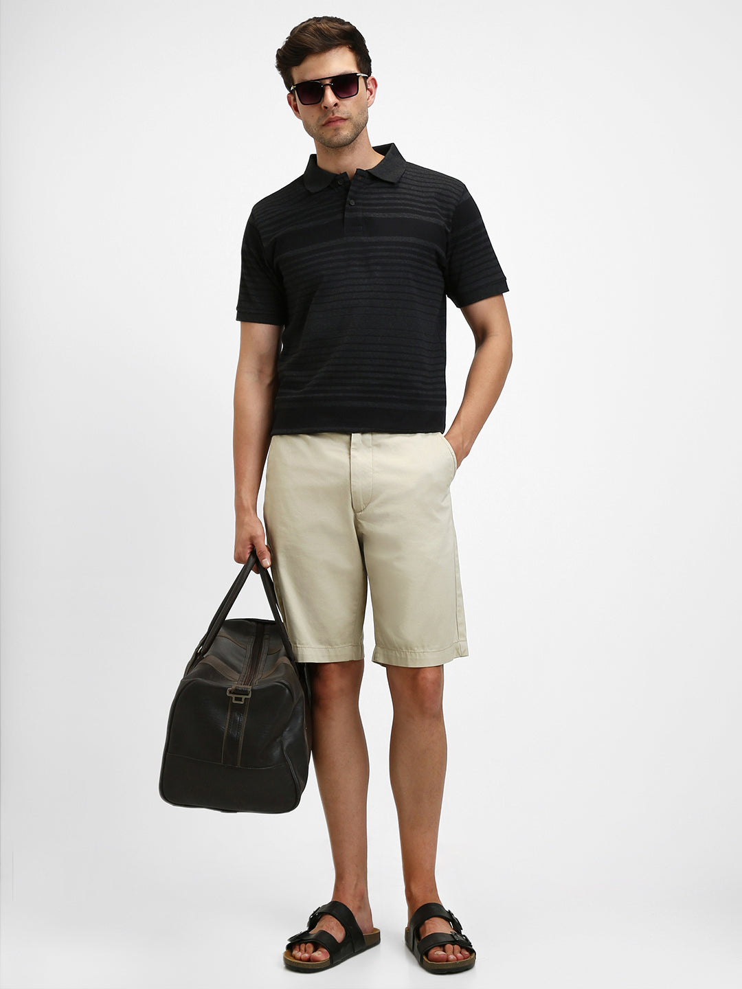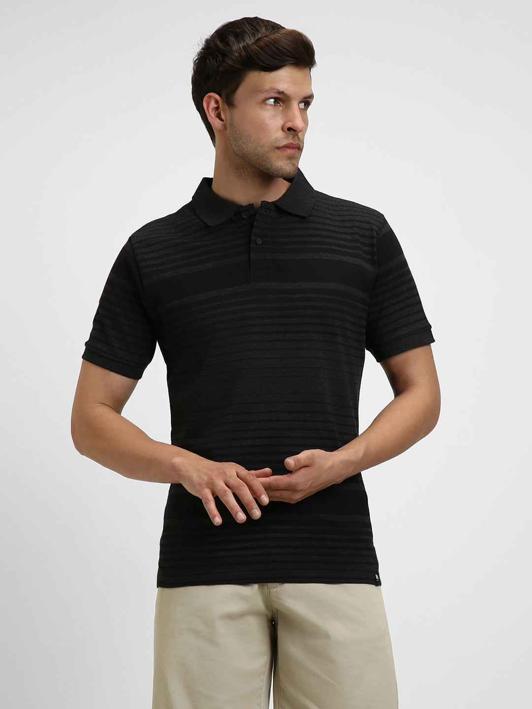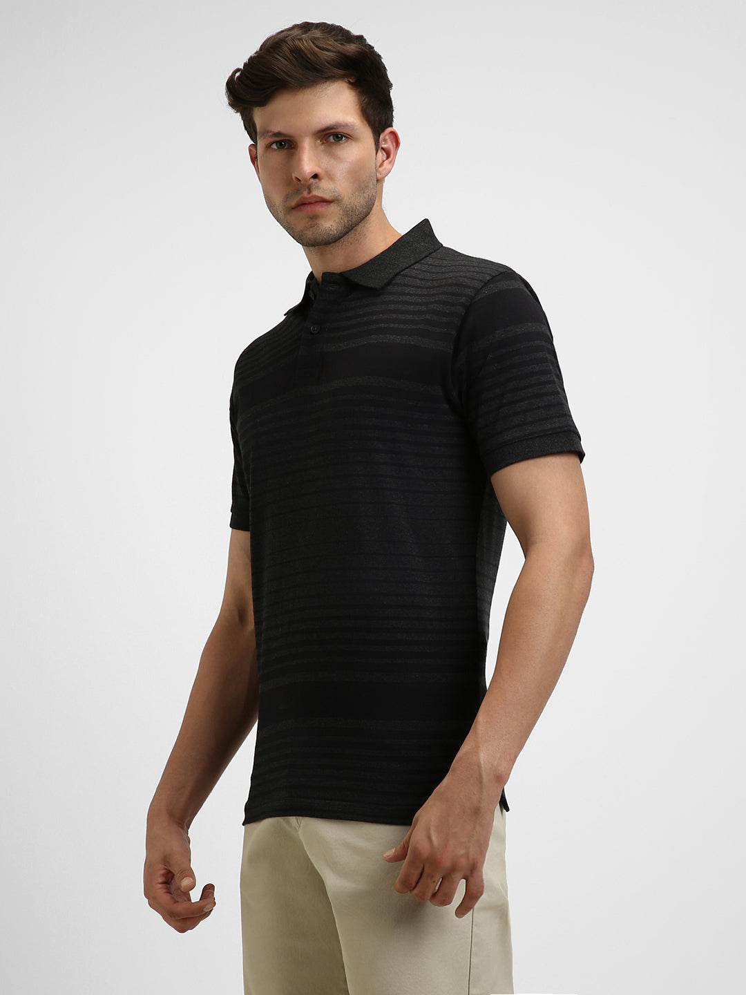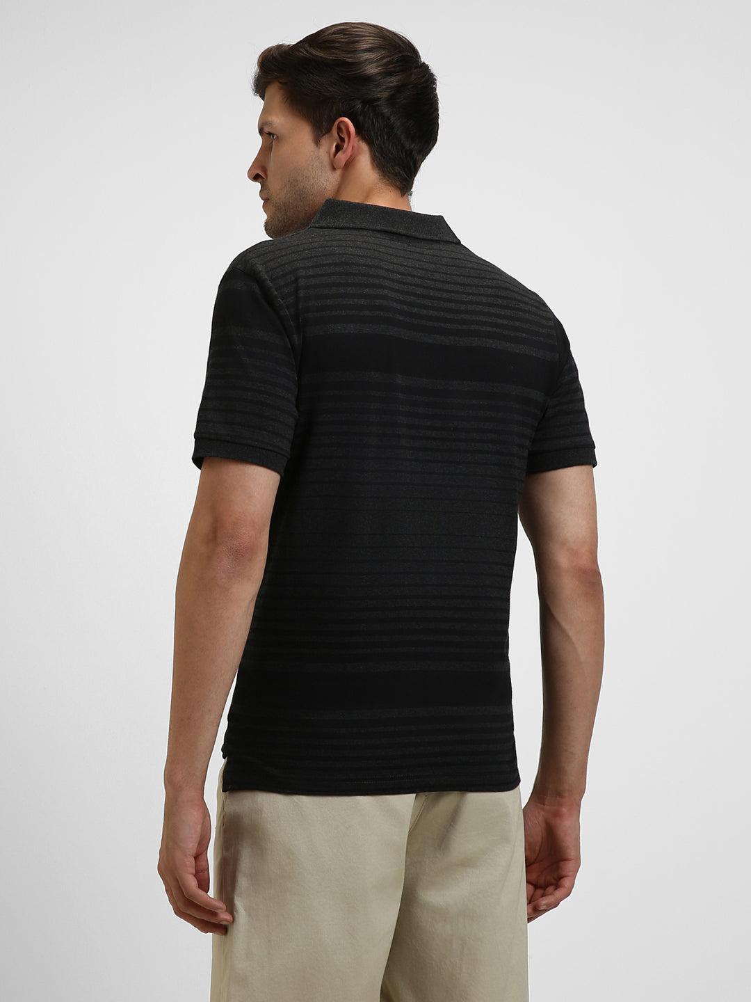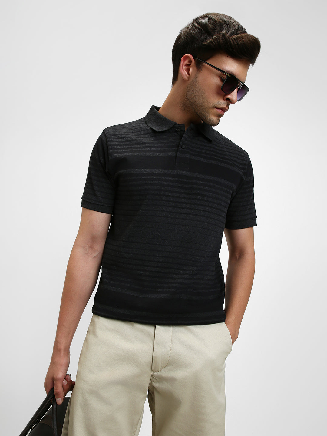 Men's Spread Collar Regular Fit Y/D Stripes Black T-Shirt