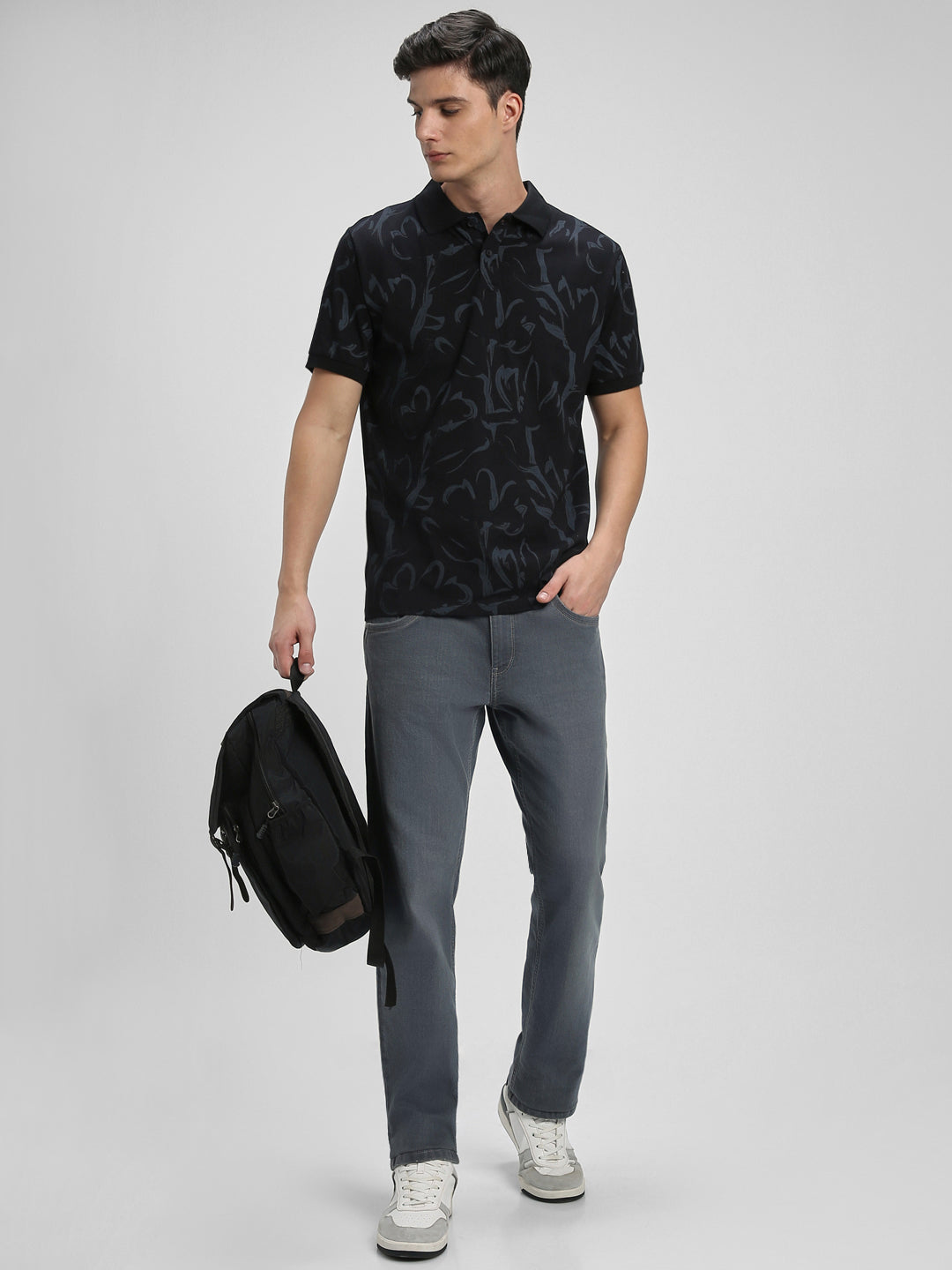 Men's Spread Collar Slim Fit Aop Black T-shirt