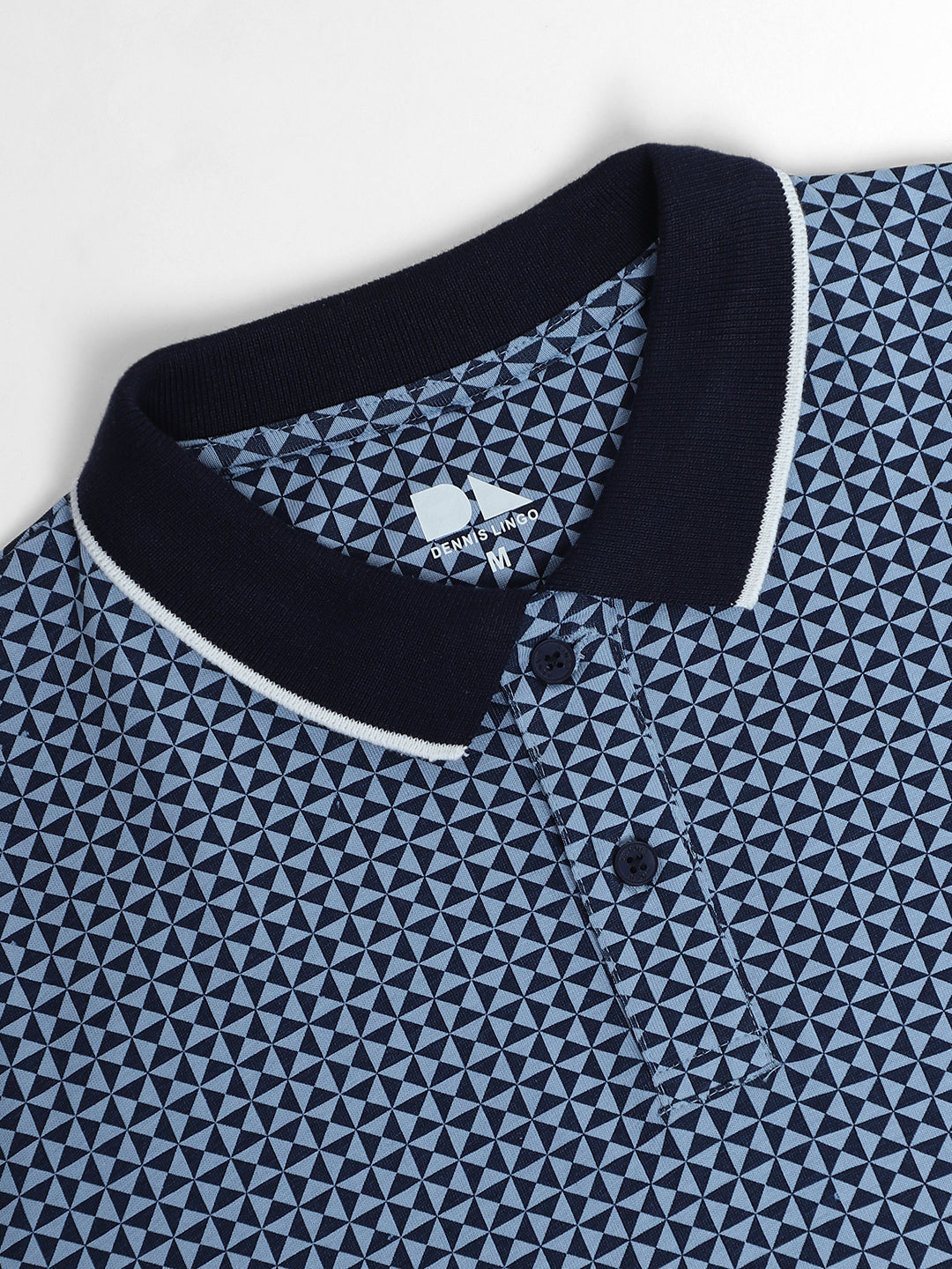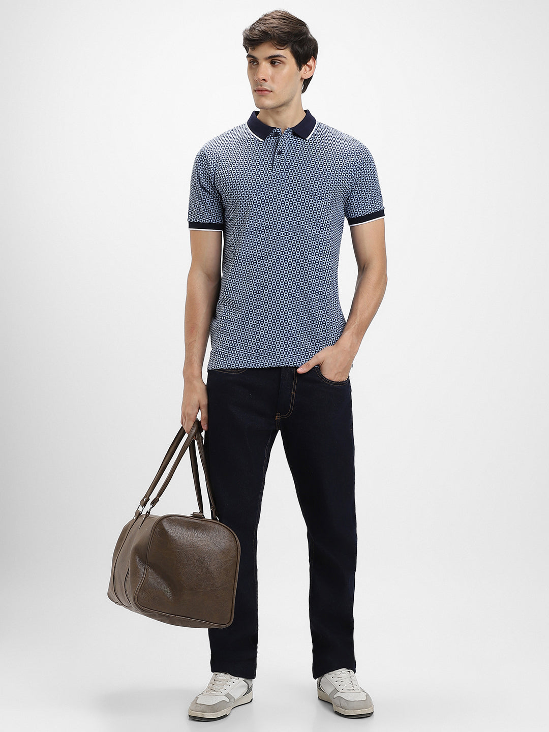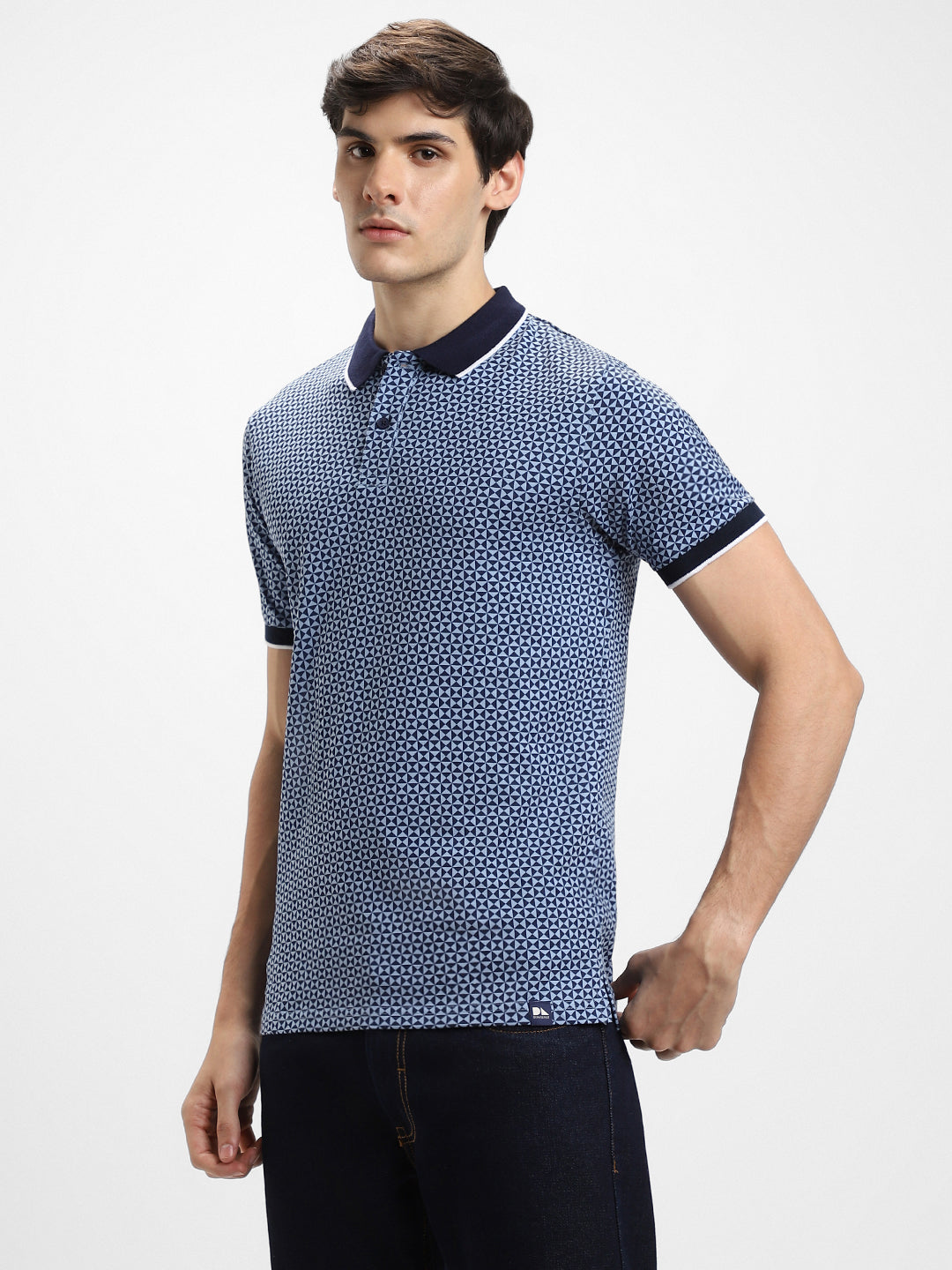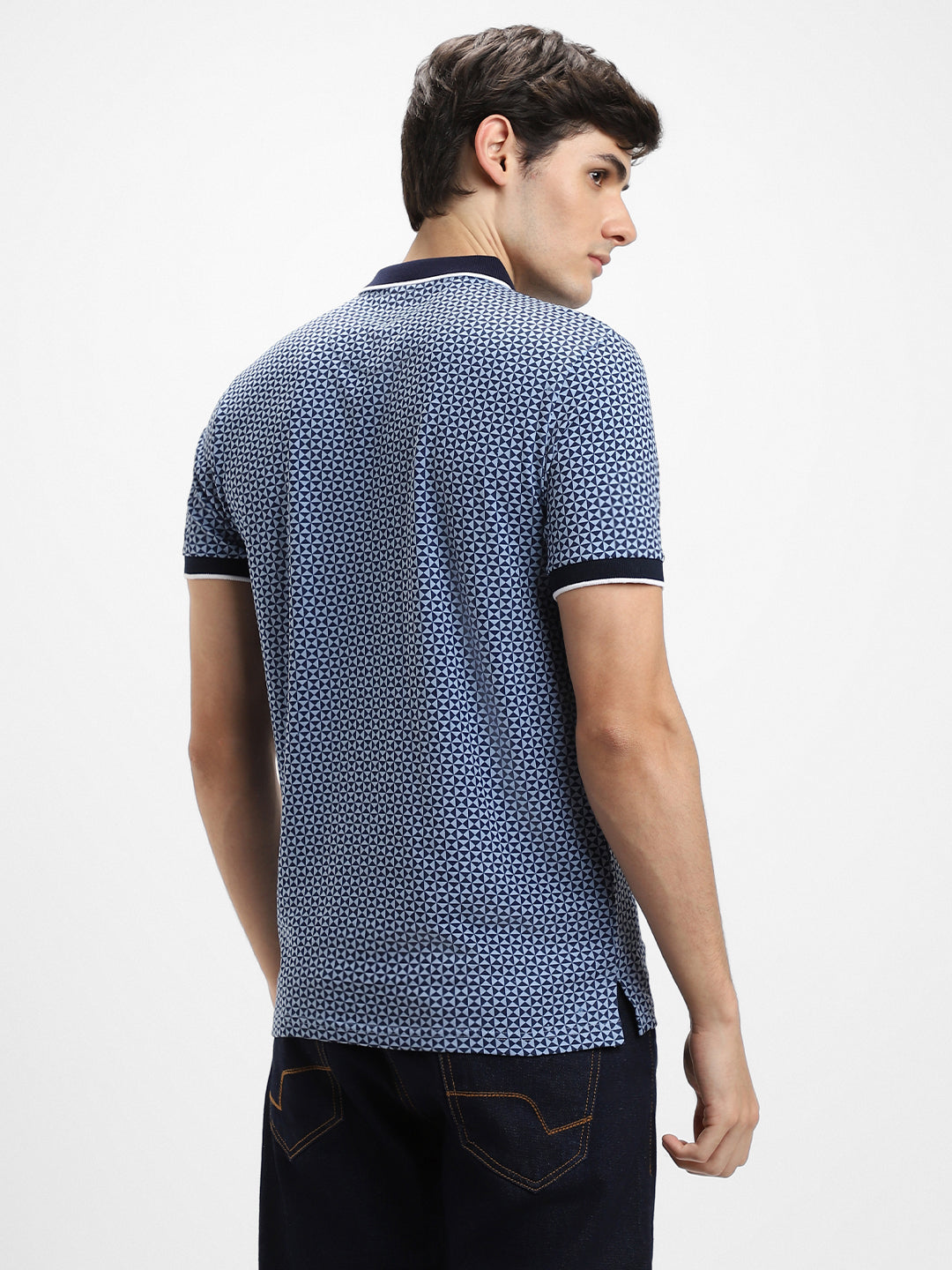 Men's Spread Collar Regular Fit Aop Navy T-shirt