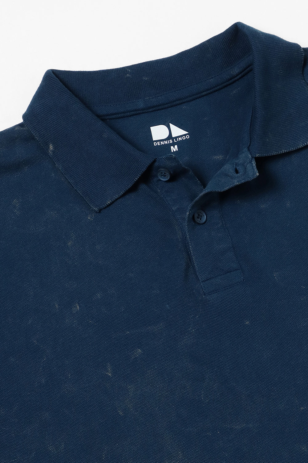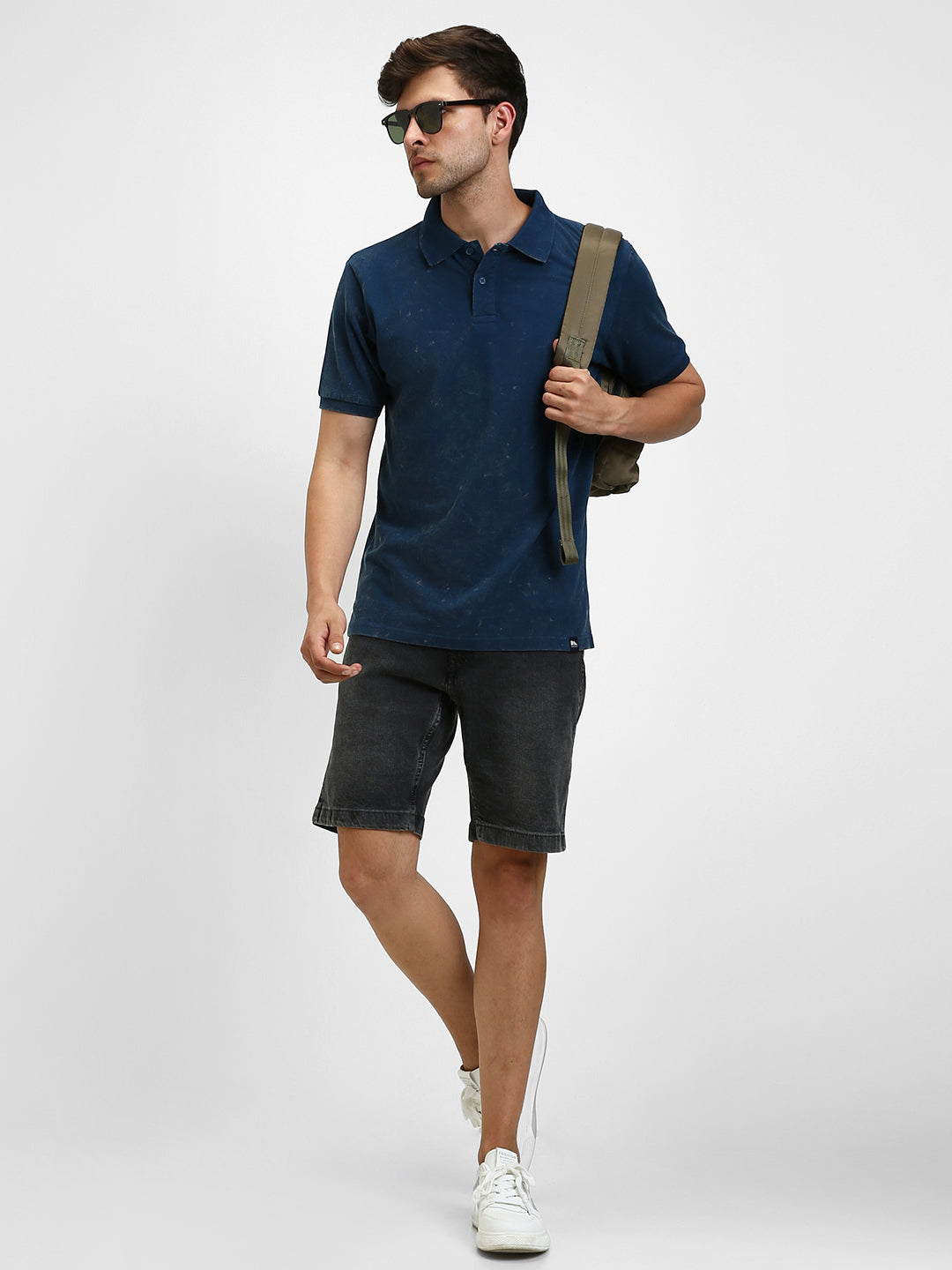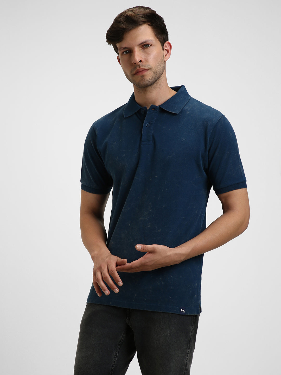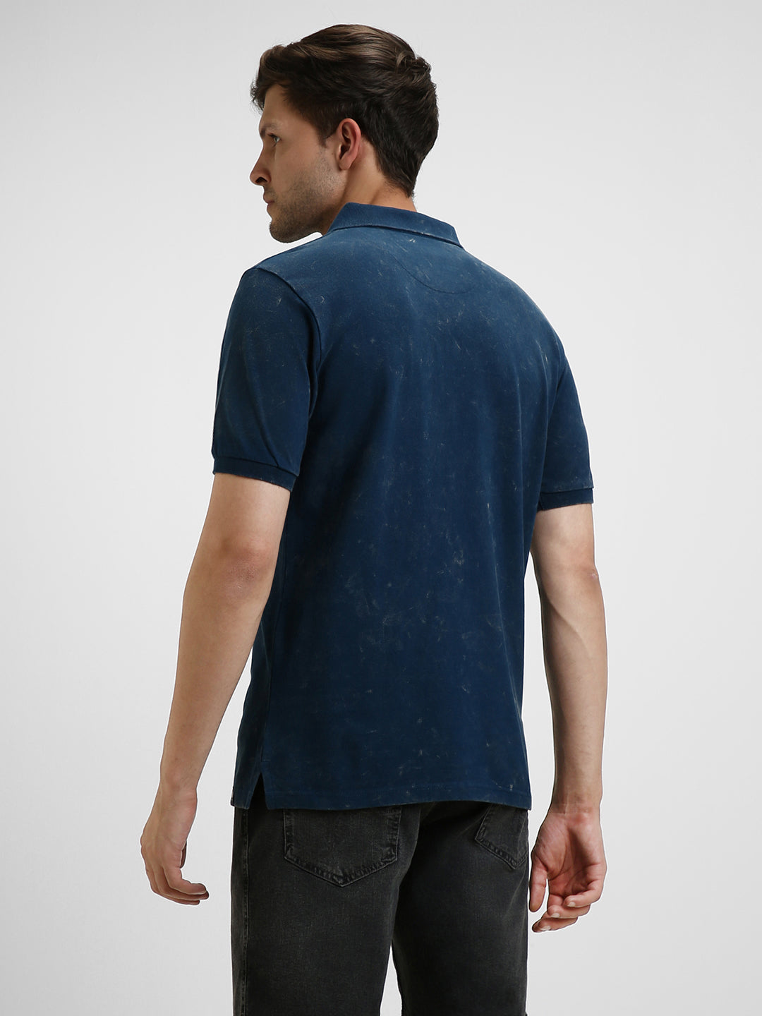 Men's Spread Collar Regular Fit Washed Effect Teal Polo T-Shirt