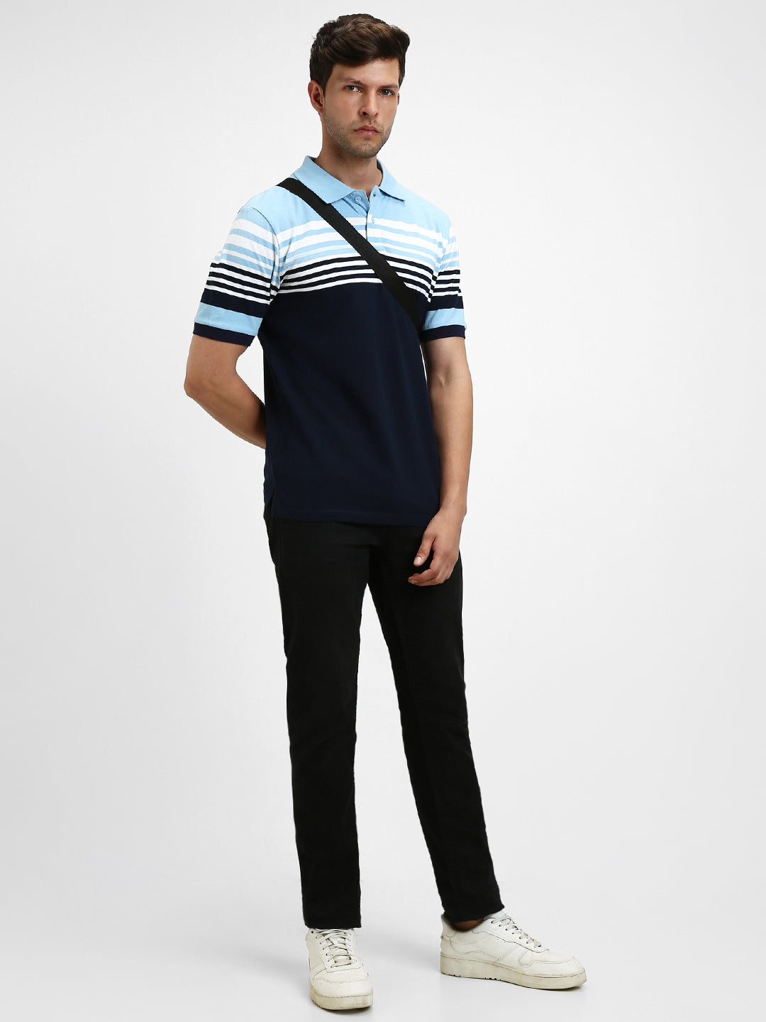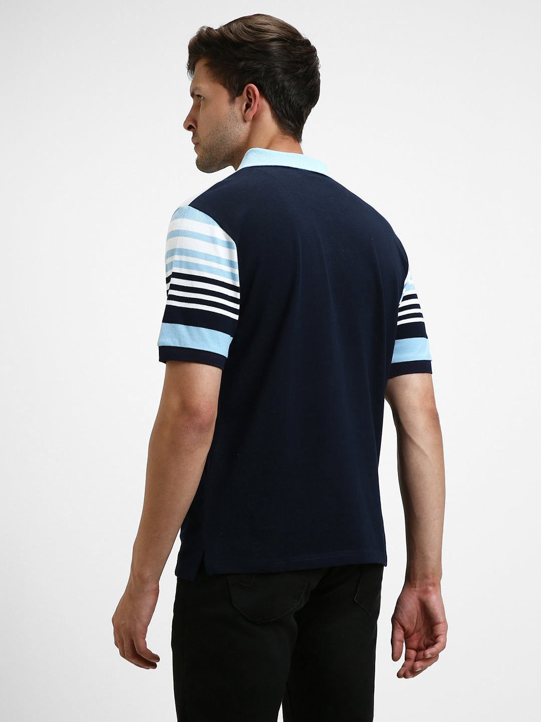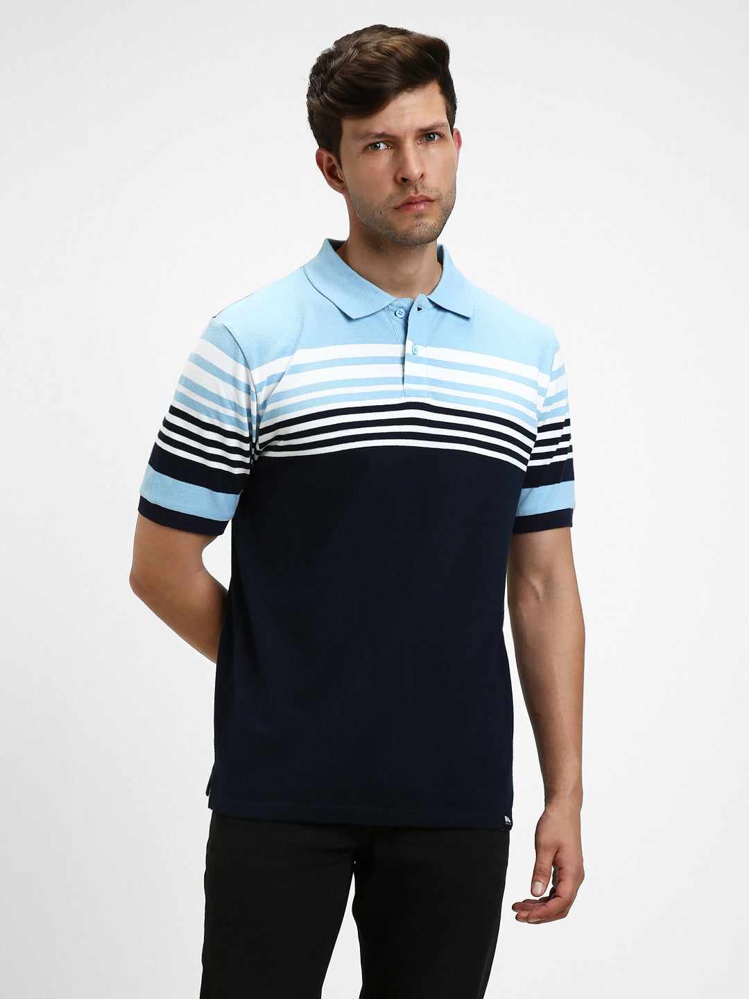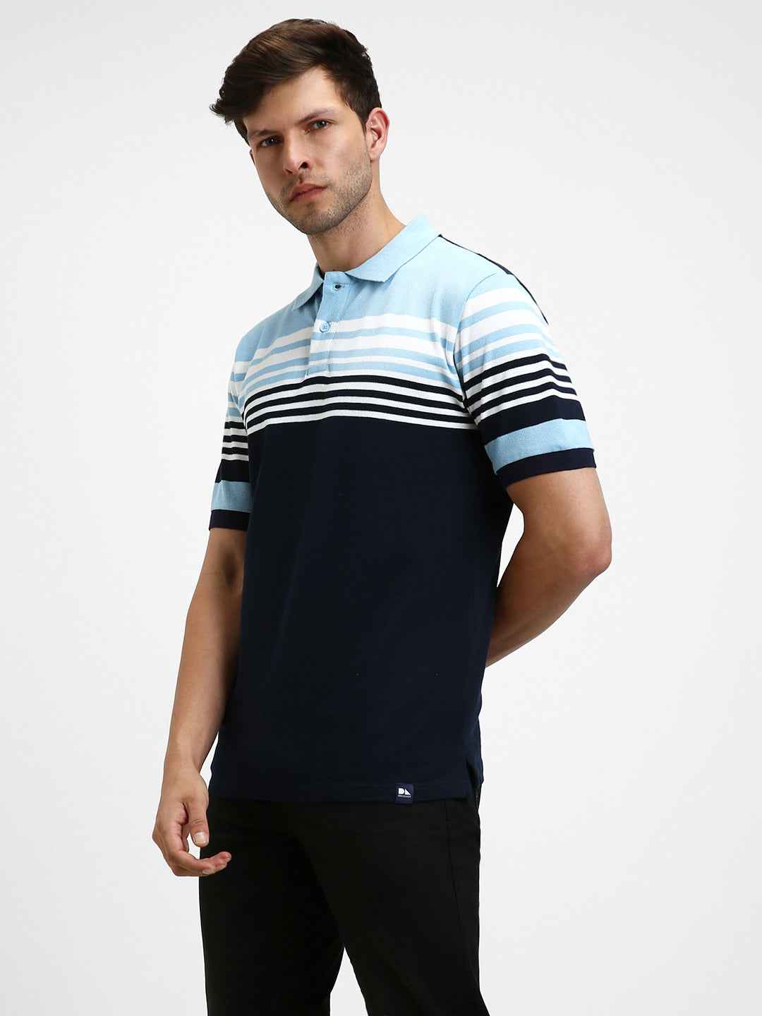 Men's Spread Collar Regular Fit Y/D Stripes Navy Polo T-Shirt