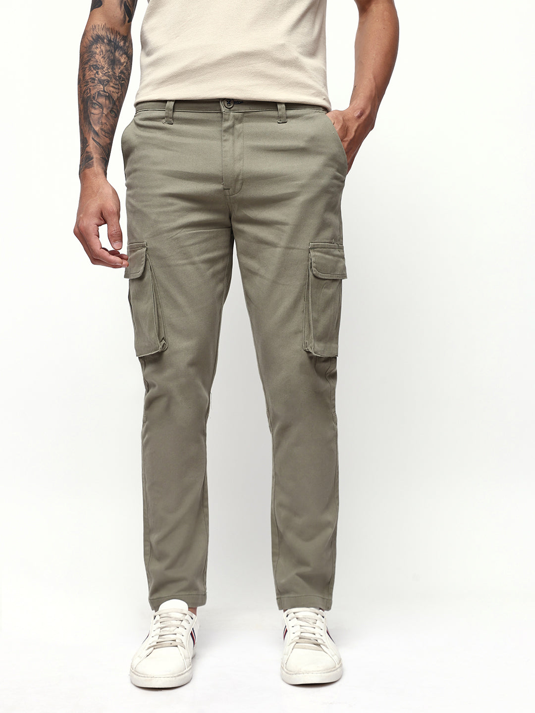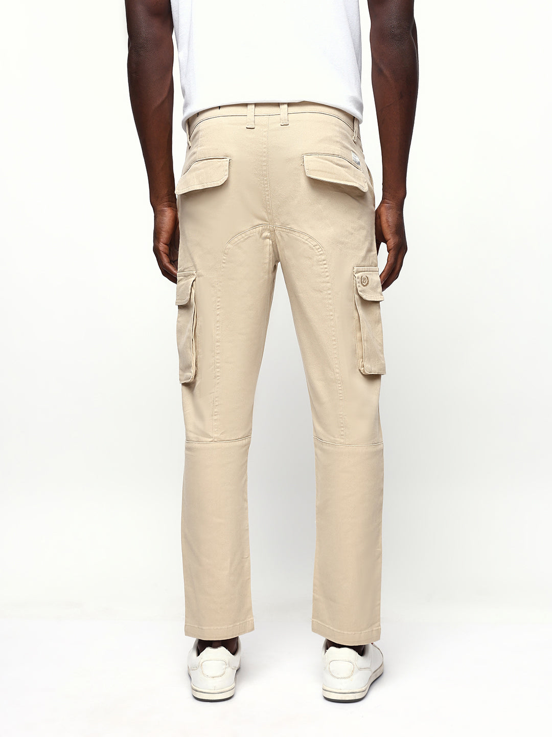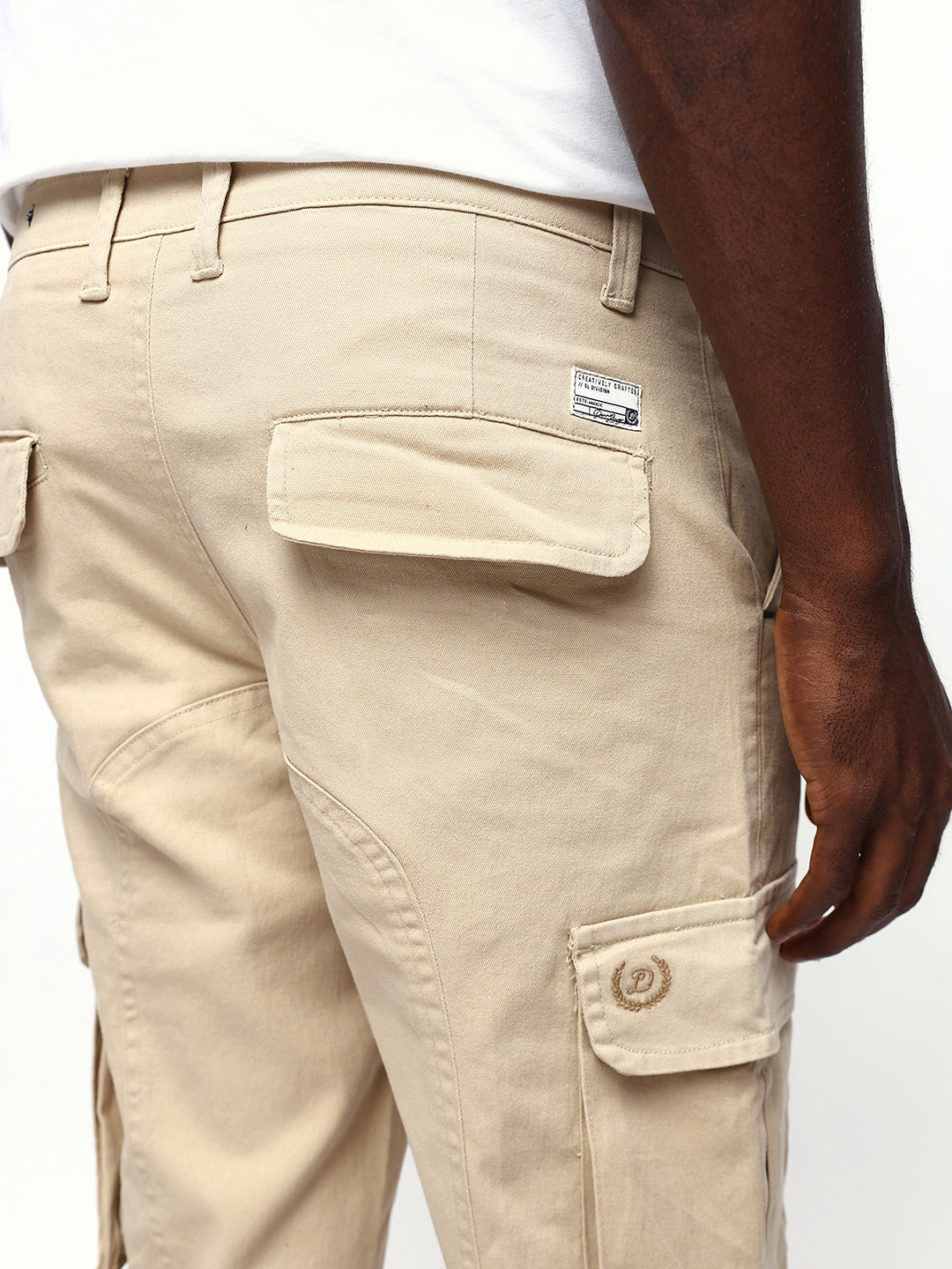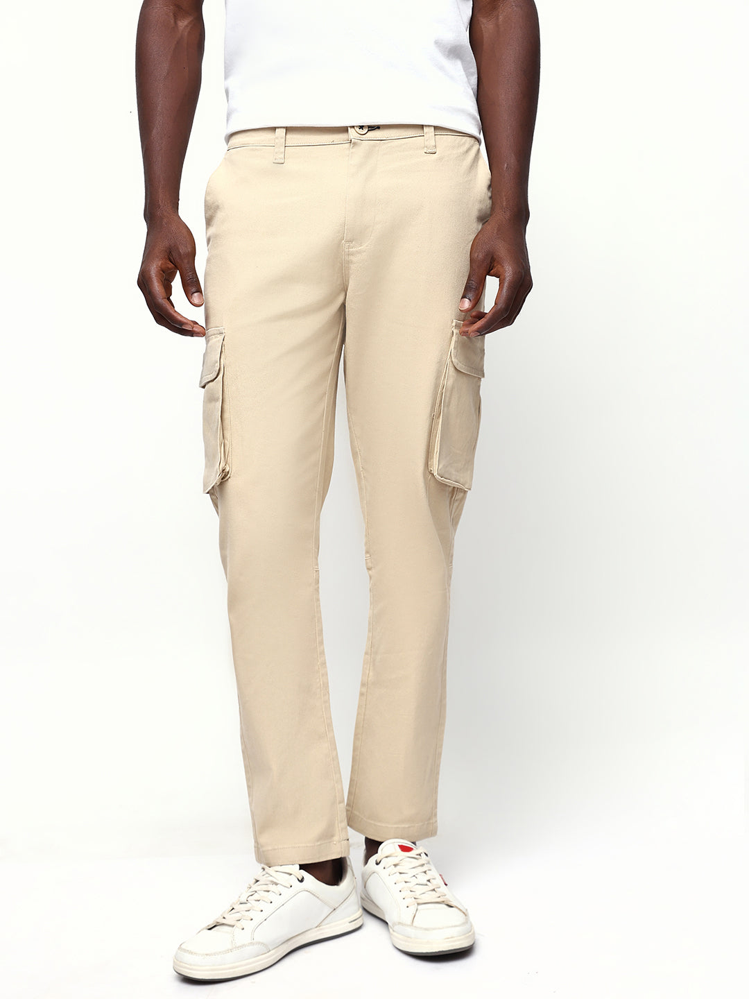 Men's Beige Solid Slim Fit Cargo Trouser