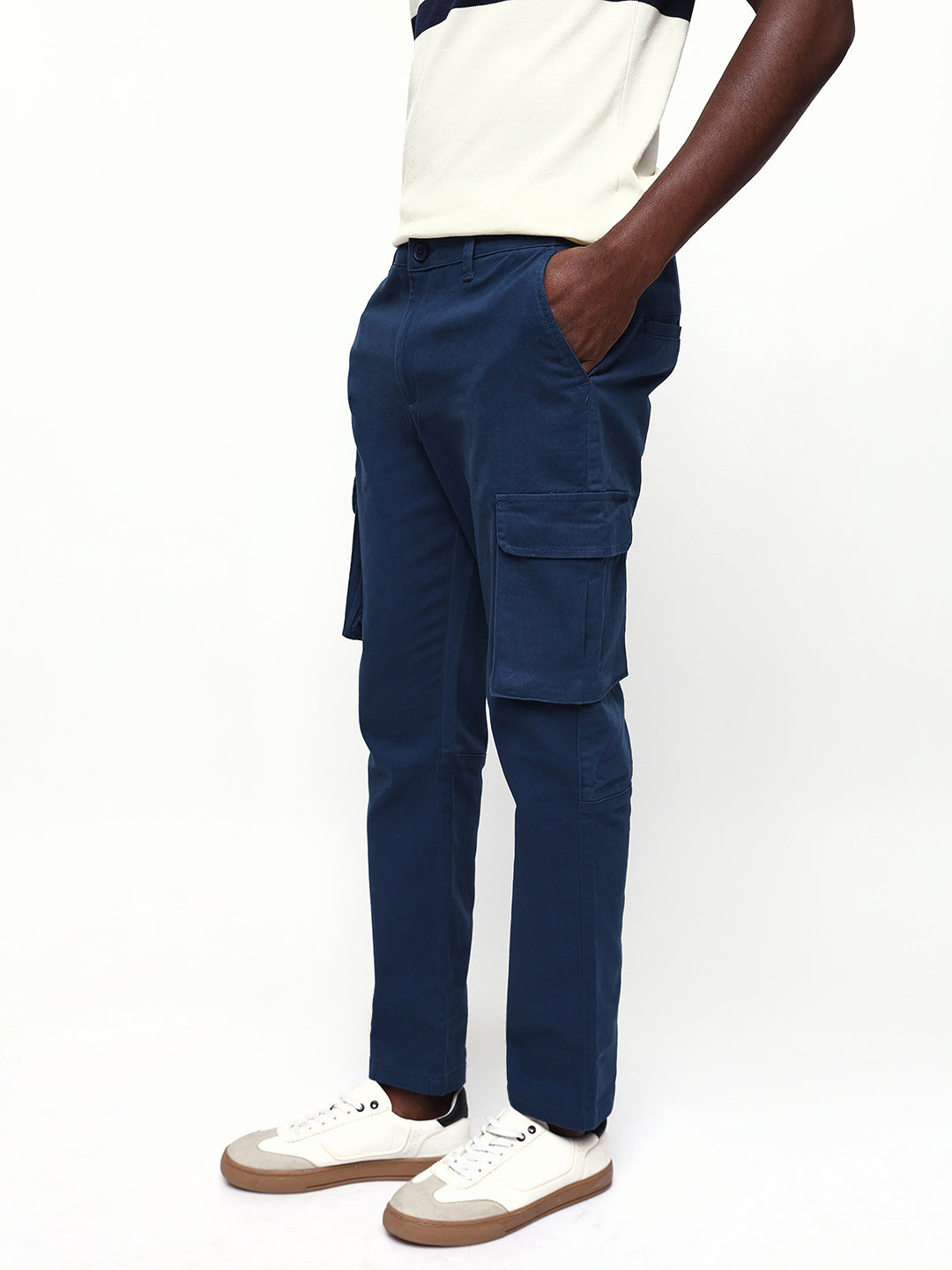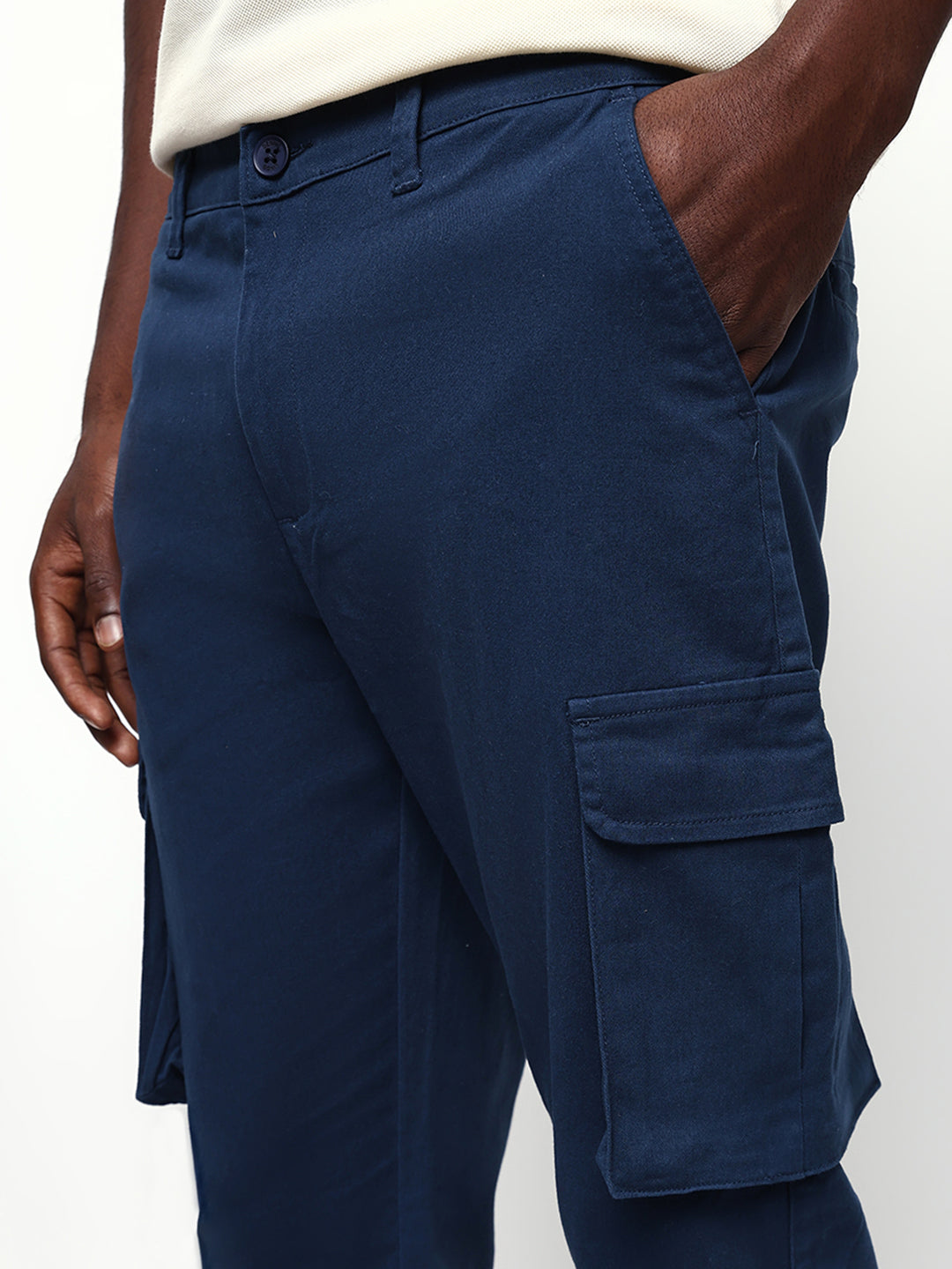 Men's Navy Blue Solid Slim Fit Cargo Trouser