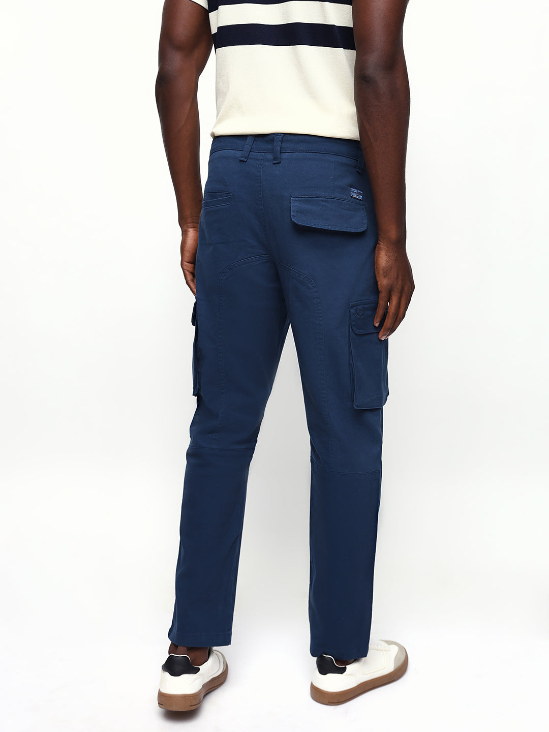 Men's Dark Blue Solid Cotton Relaxed Fit Mid-Rise Cargo Trousers