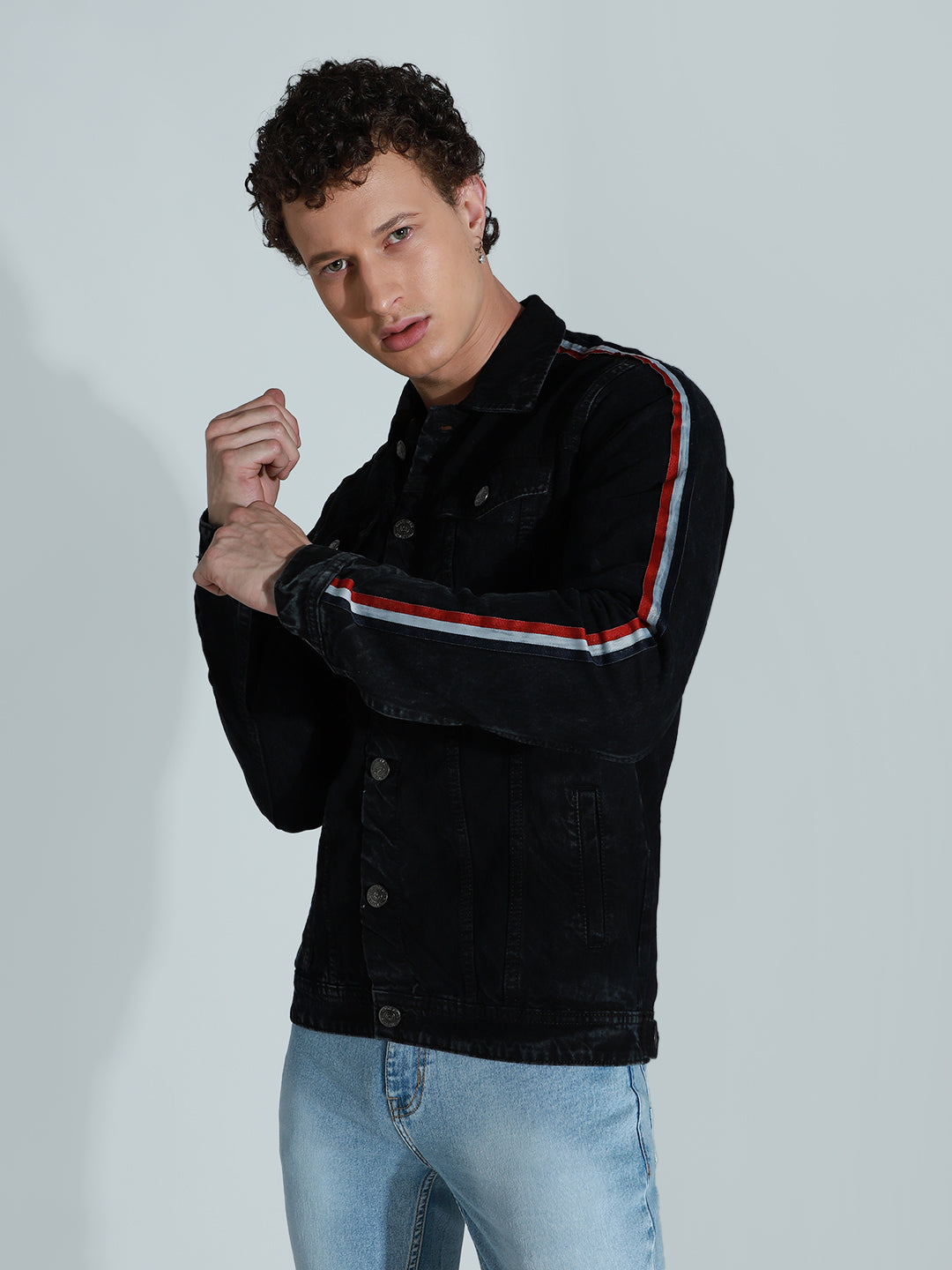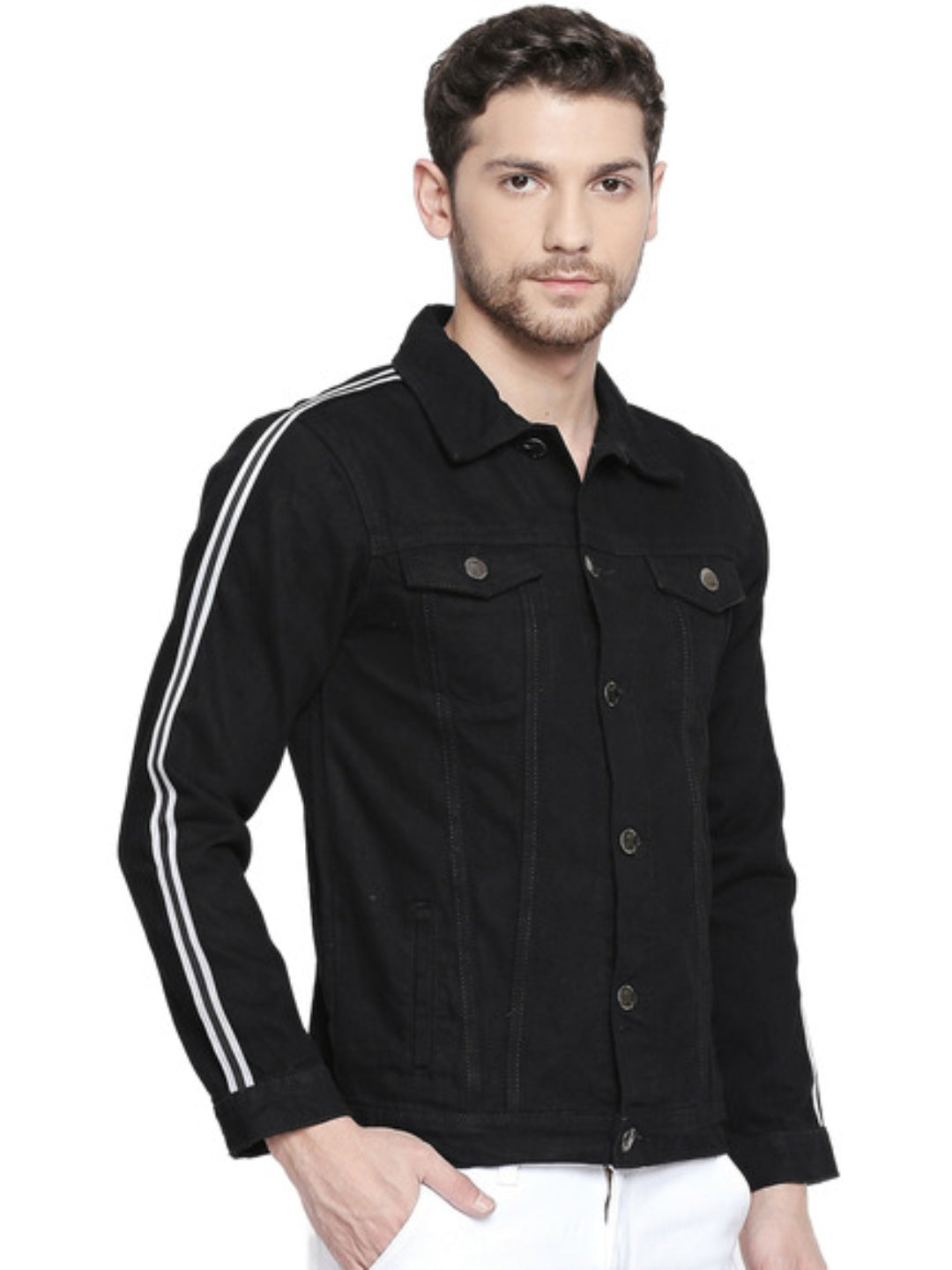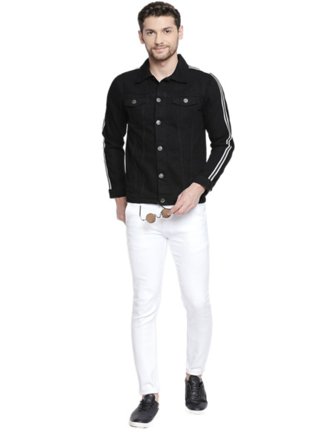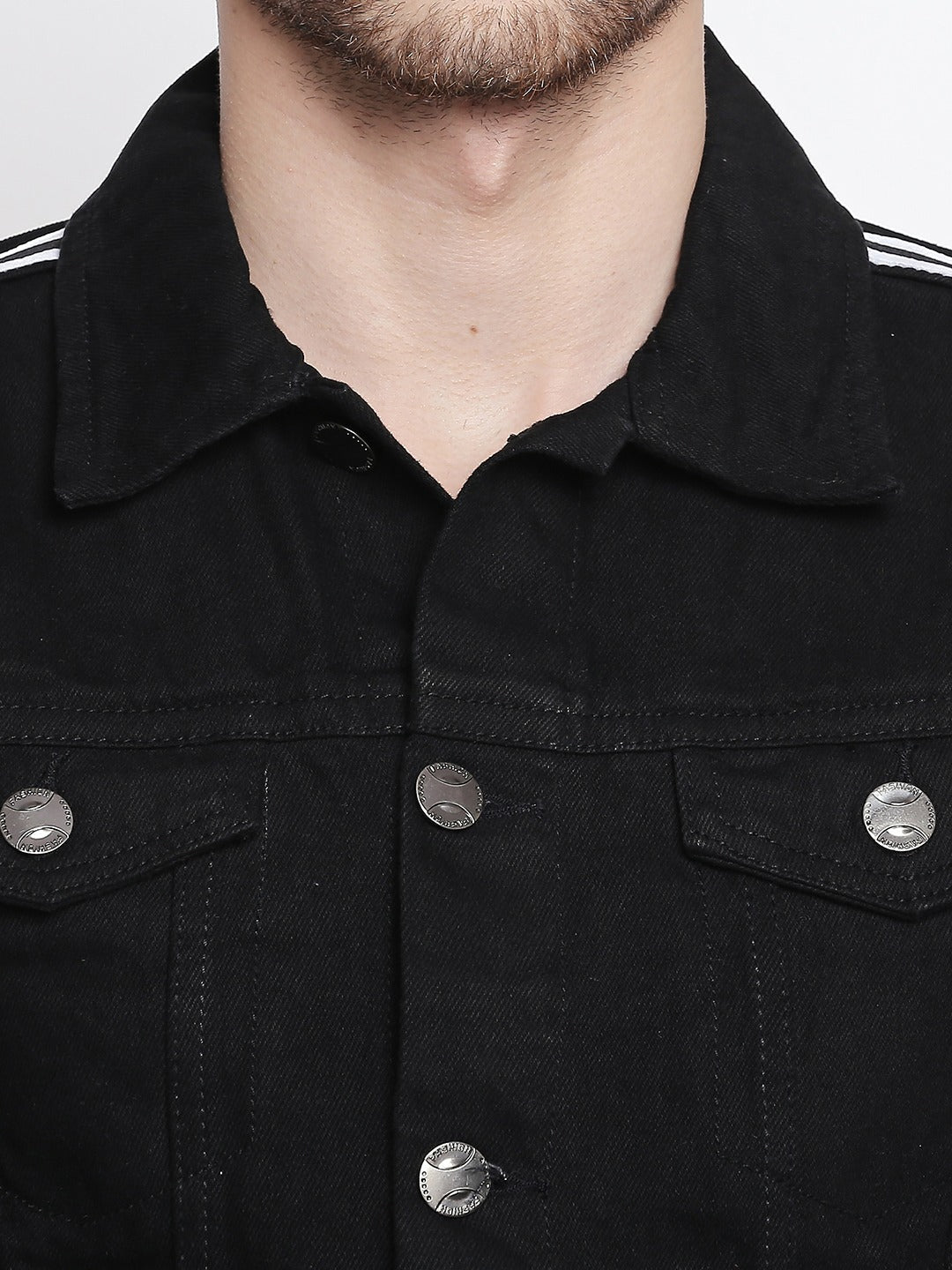 Men's Black Solid Denim Jacket