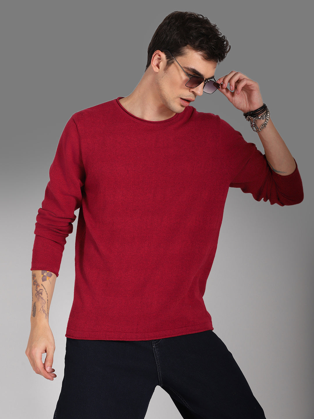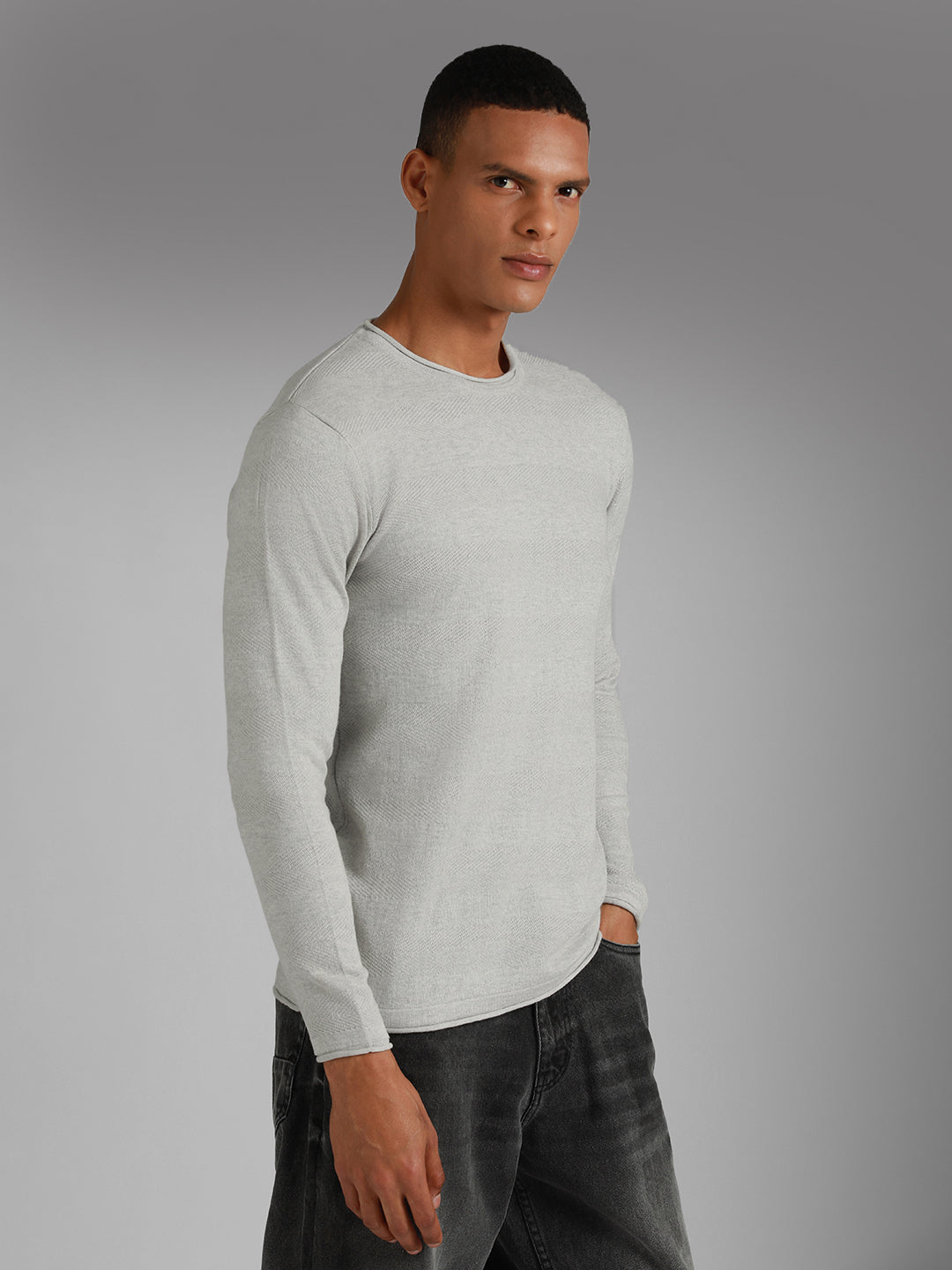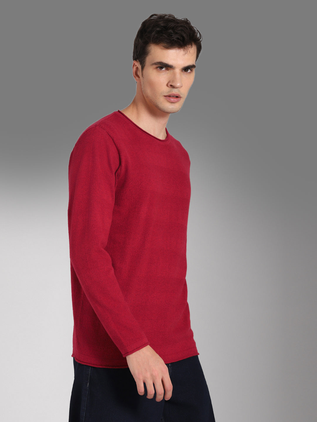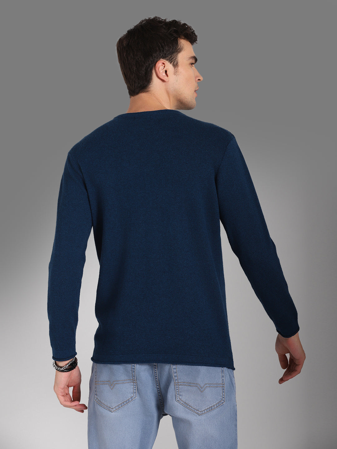 Men's Round Neck Long Sleeves Cotton Pullover Sweater