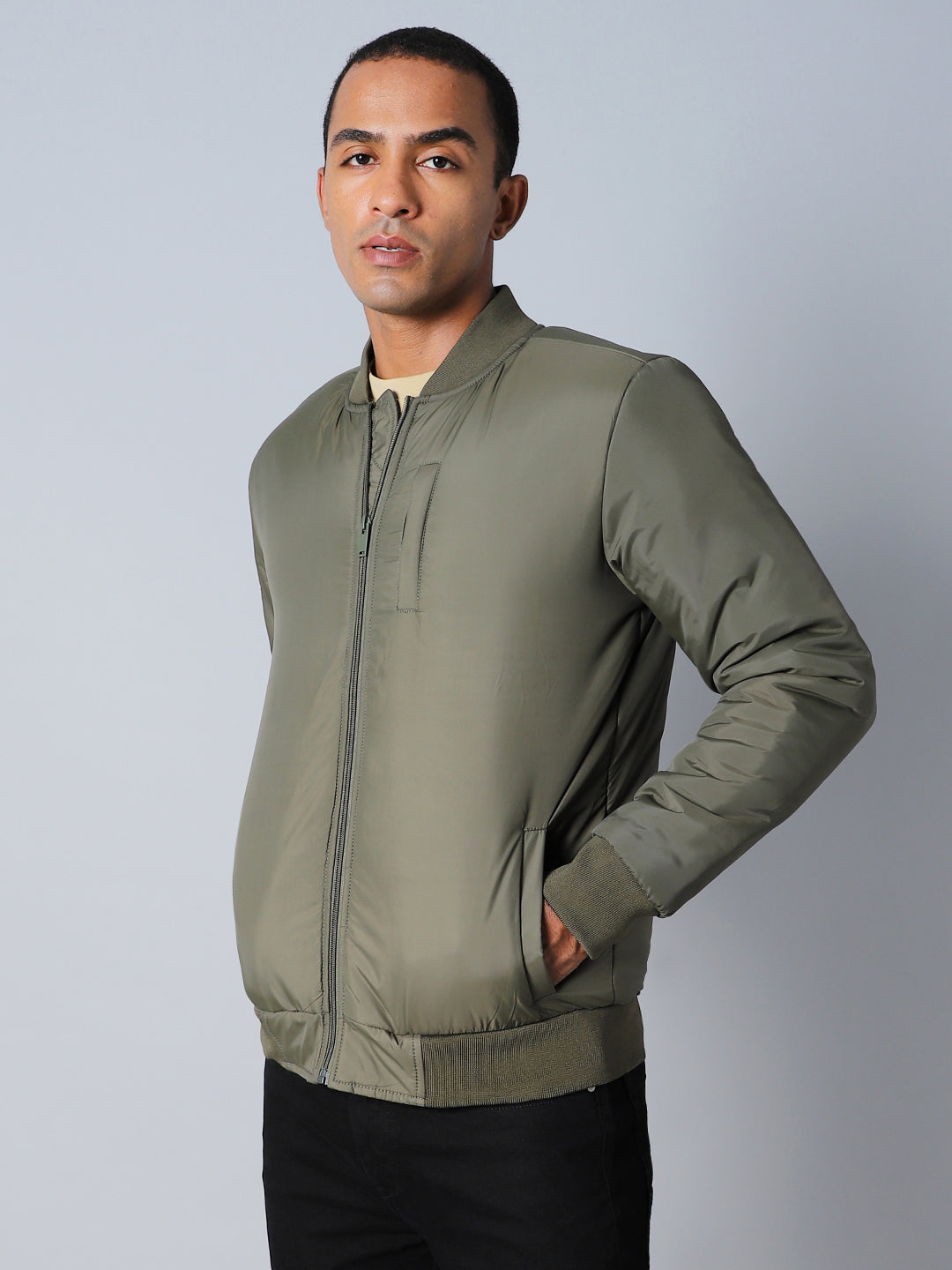 Men's Stand Collar Solid Casual Bomber Jacket