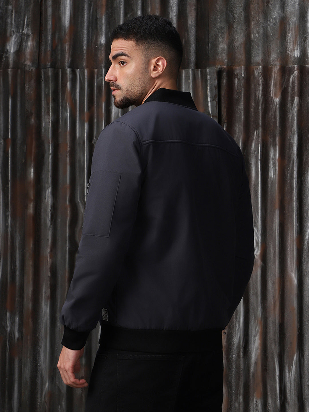 Men's Lightweight Mandarin Collar Bomber Jacket With Patchwork