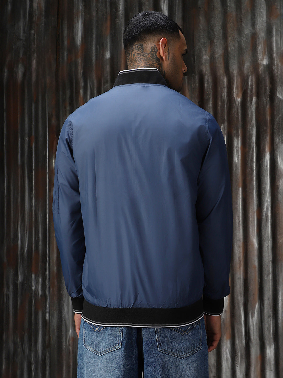 Men's Blue Solid Denim Jacket