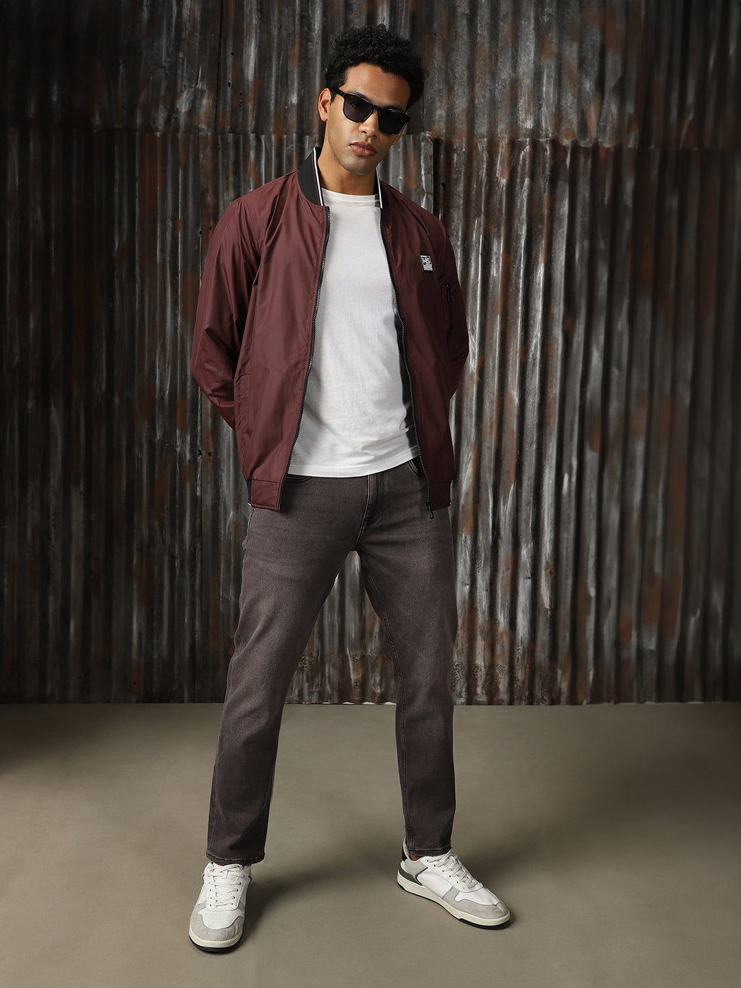 Men's Maroon Outdoor Bomber Jacket