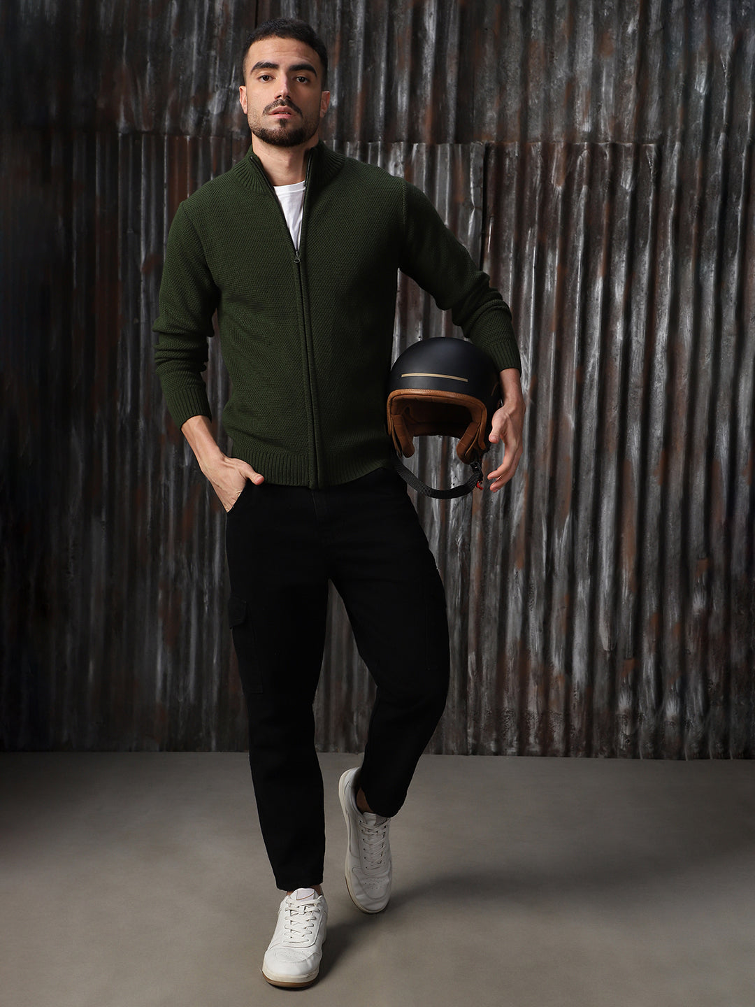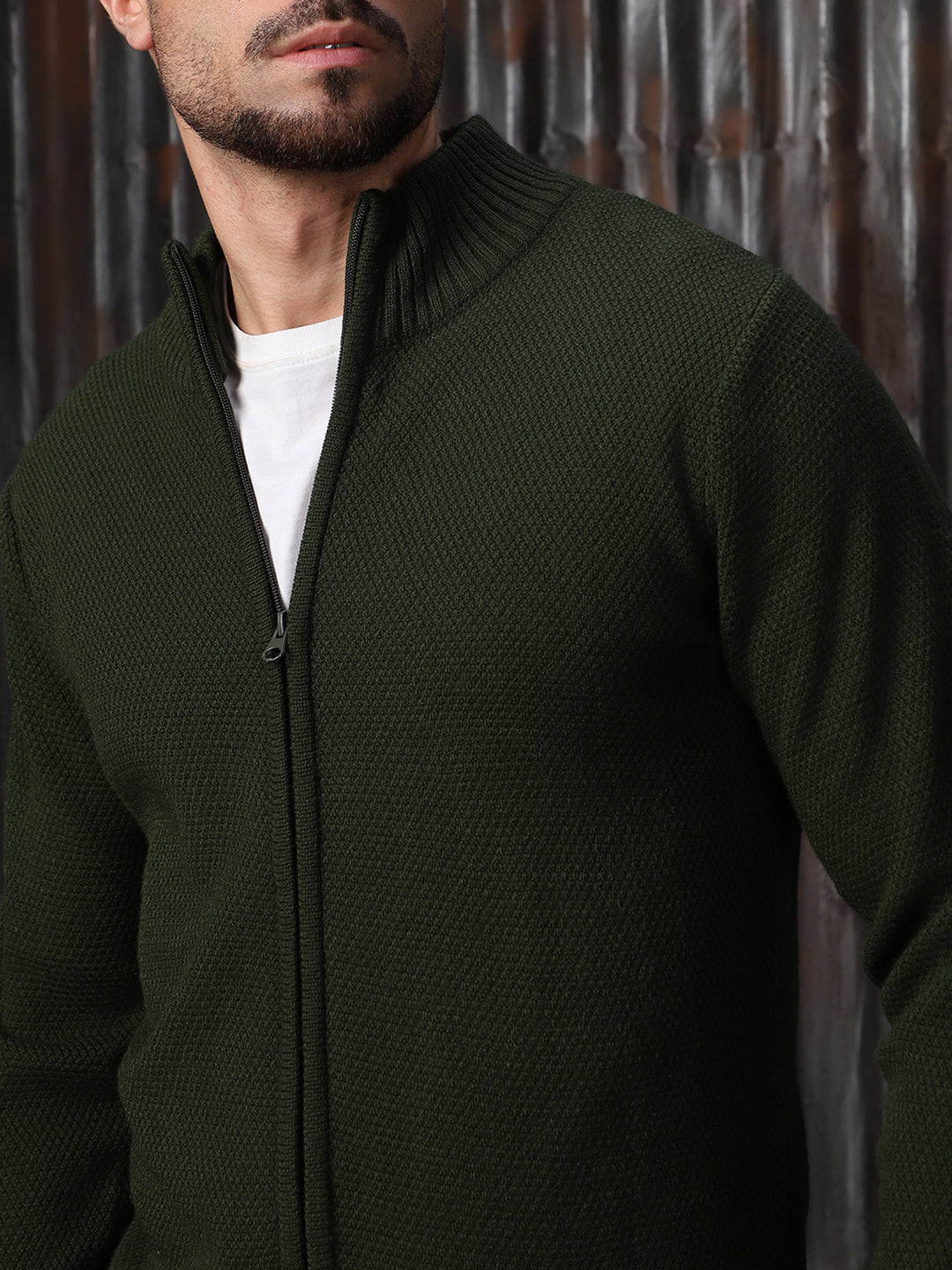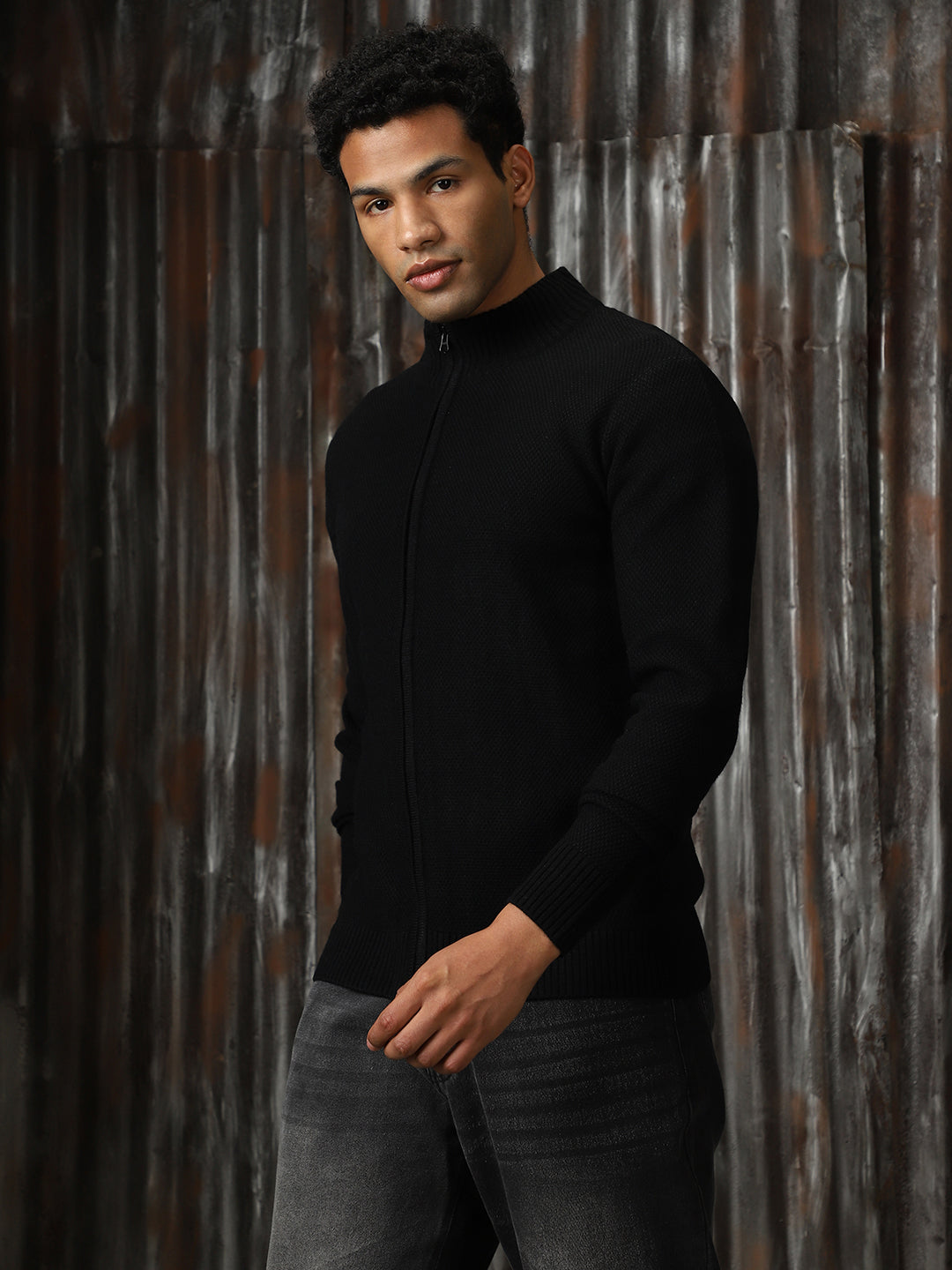 Men's Turtle Neck Front-Open Sweater