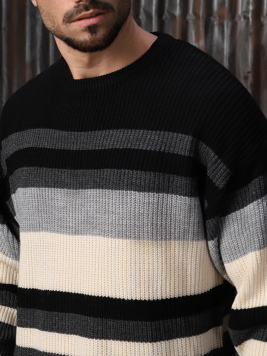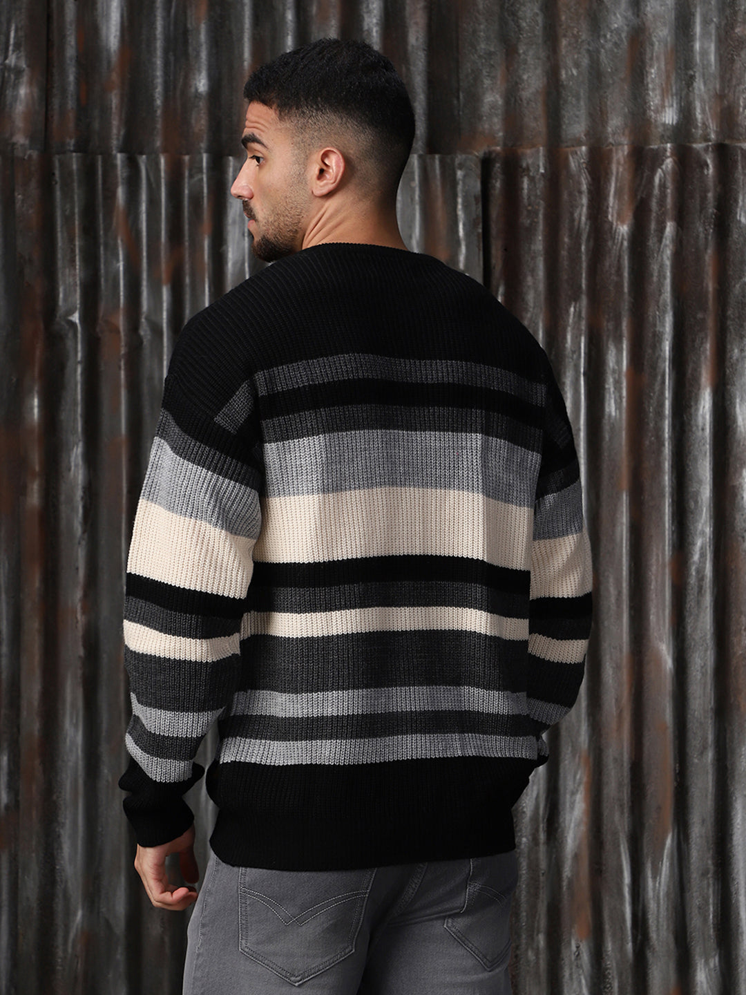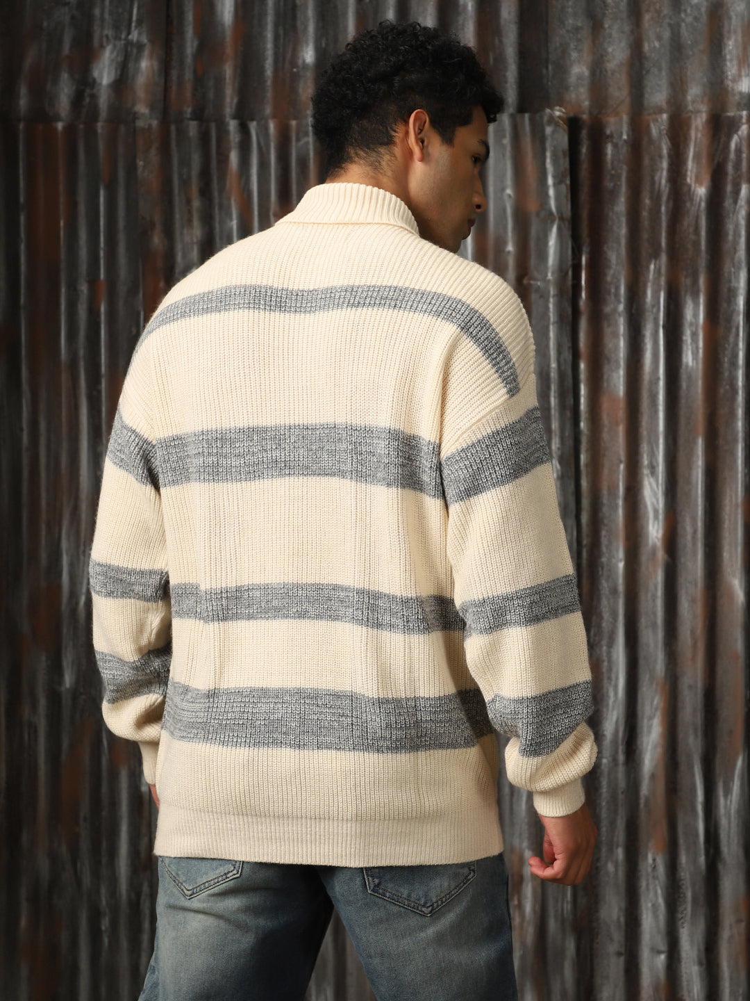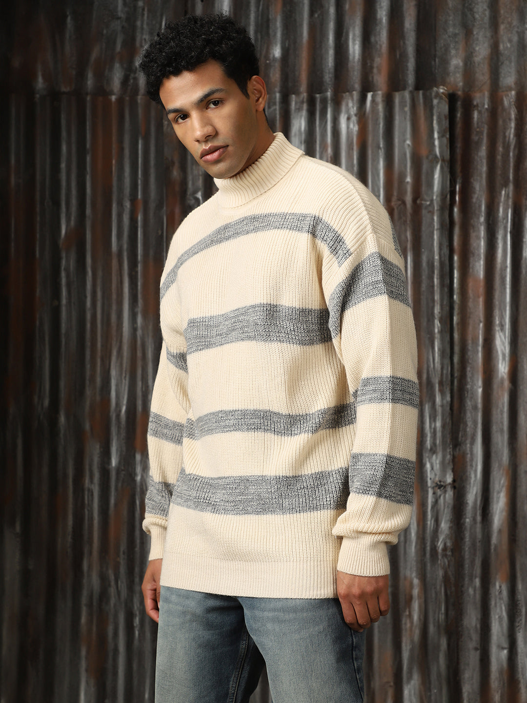 Men's Striped High neck stractured Relaxed fit Pullover