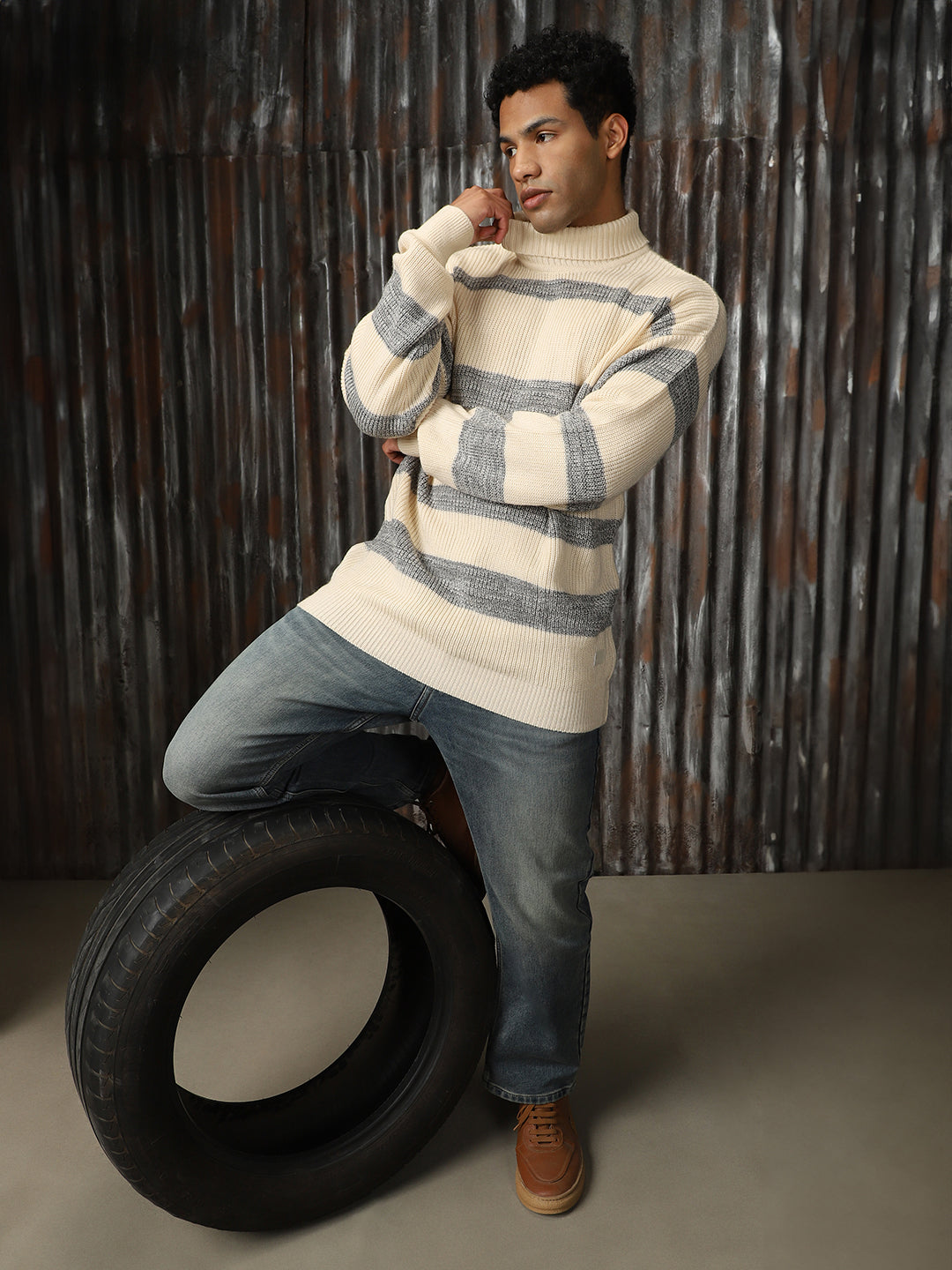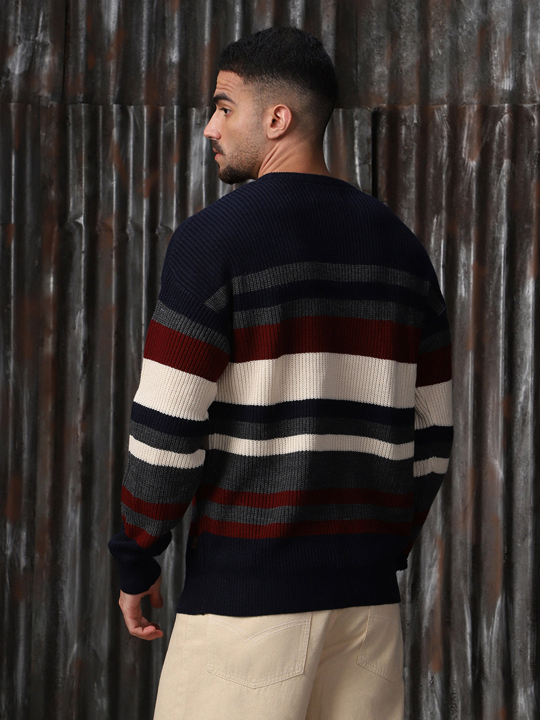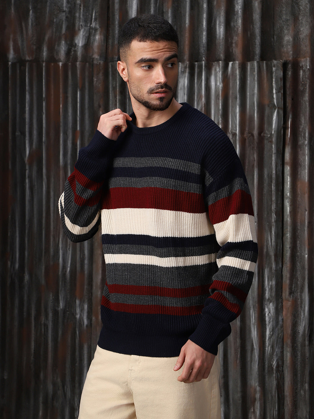Men's Striped High neck stractured Relaxed fit Pullover
