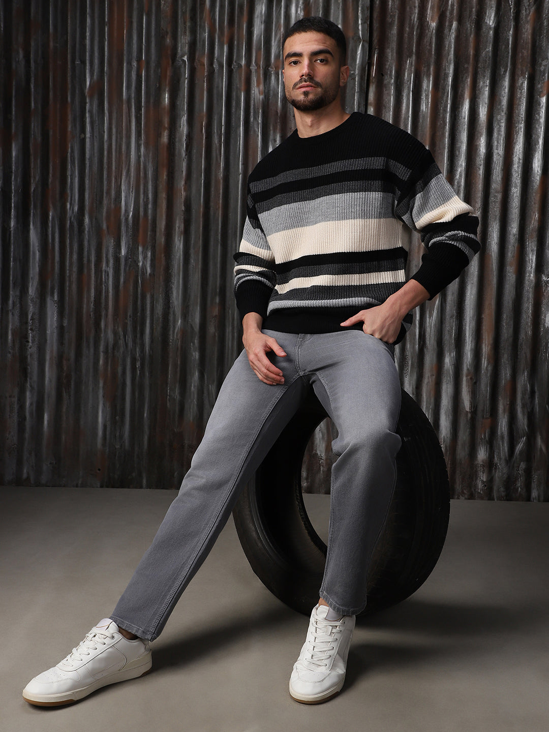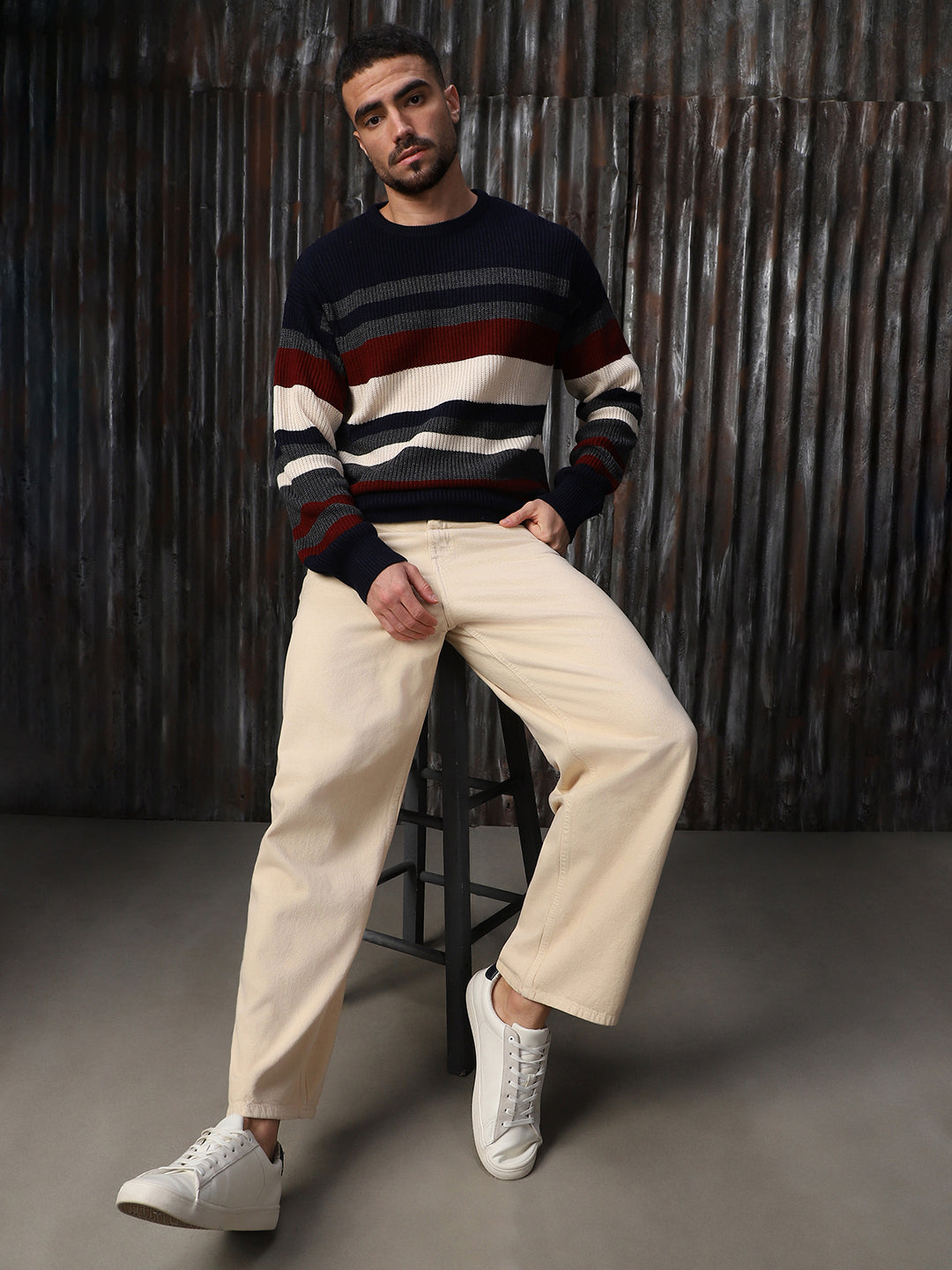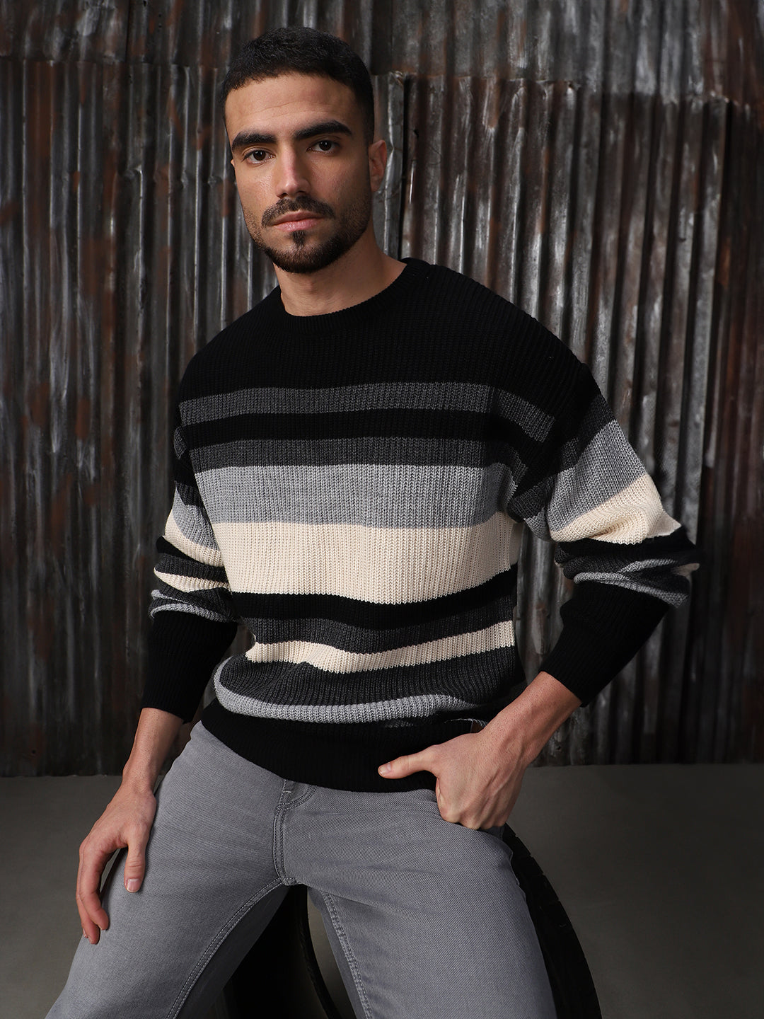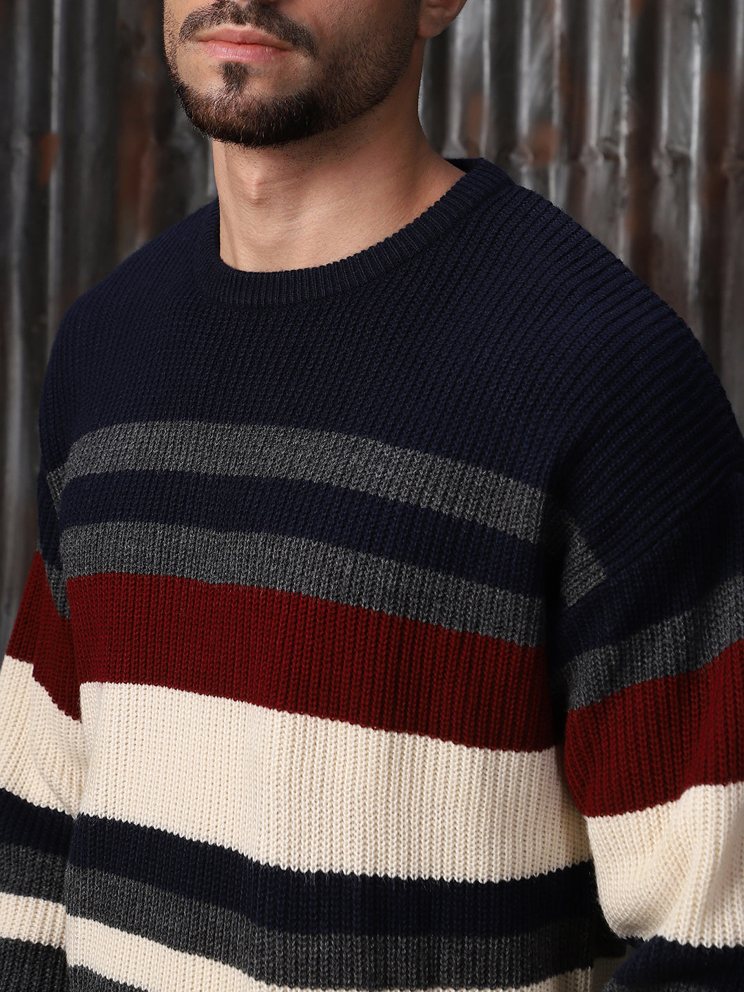 Men's Striped High neck stractured Relaxed fit Pullover