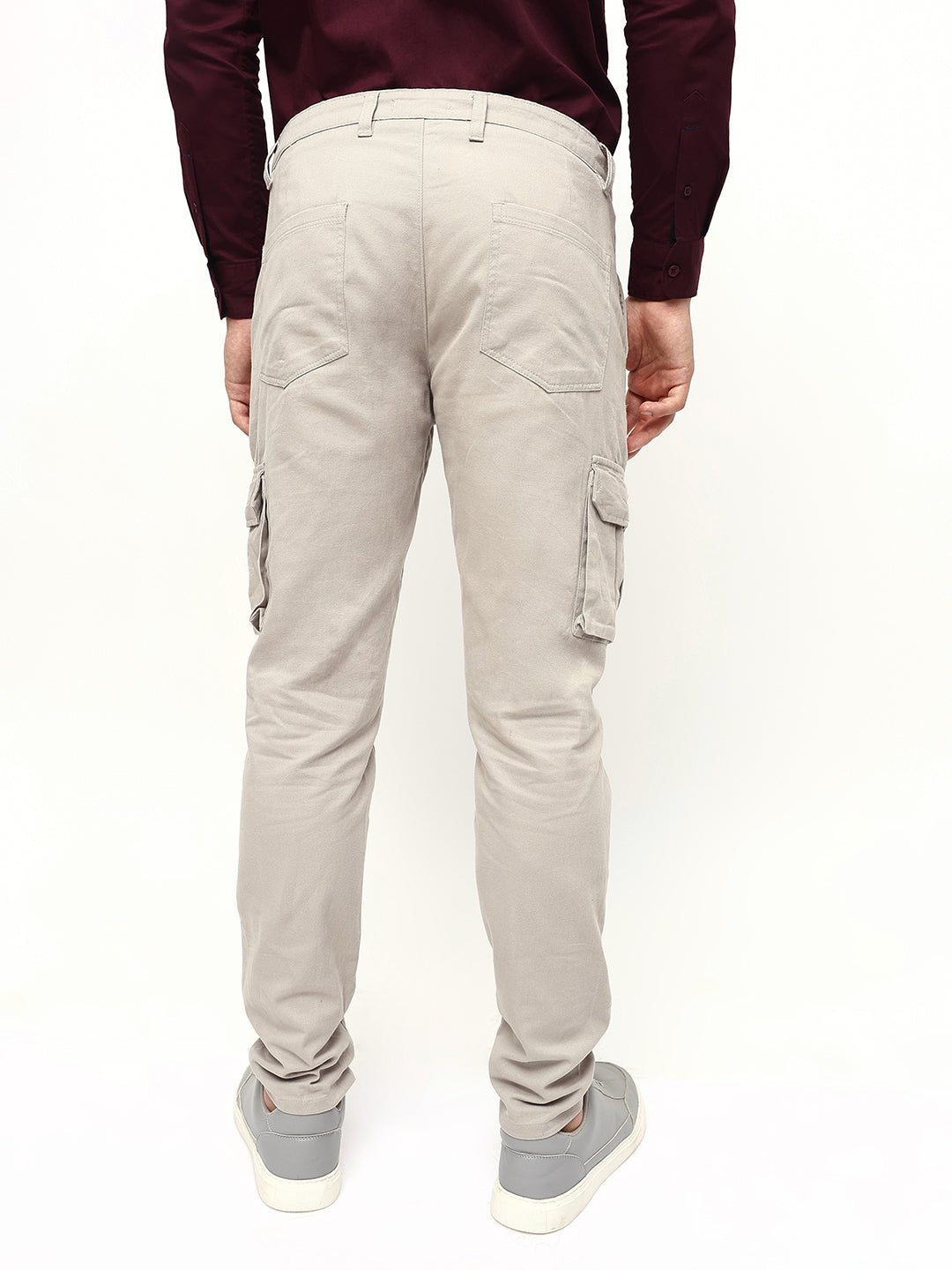 Men's Grey Tapered Fit Cotton Cargos Trousers
