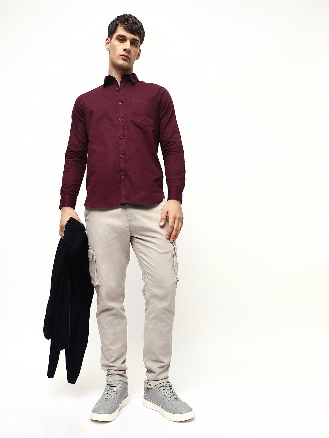 Men's Regular Collar Slim Fit Solid Light Grey Casual Shirts