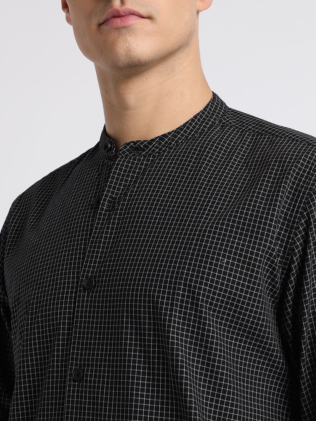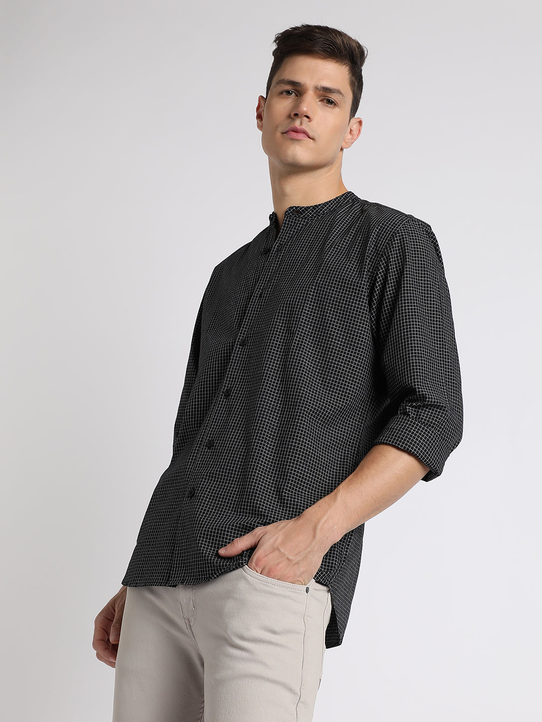 Men's Regular Collar Slim Fit Checks Navy Casual Shirt