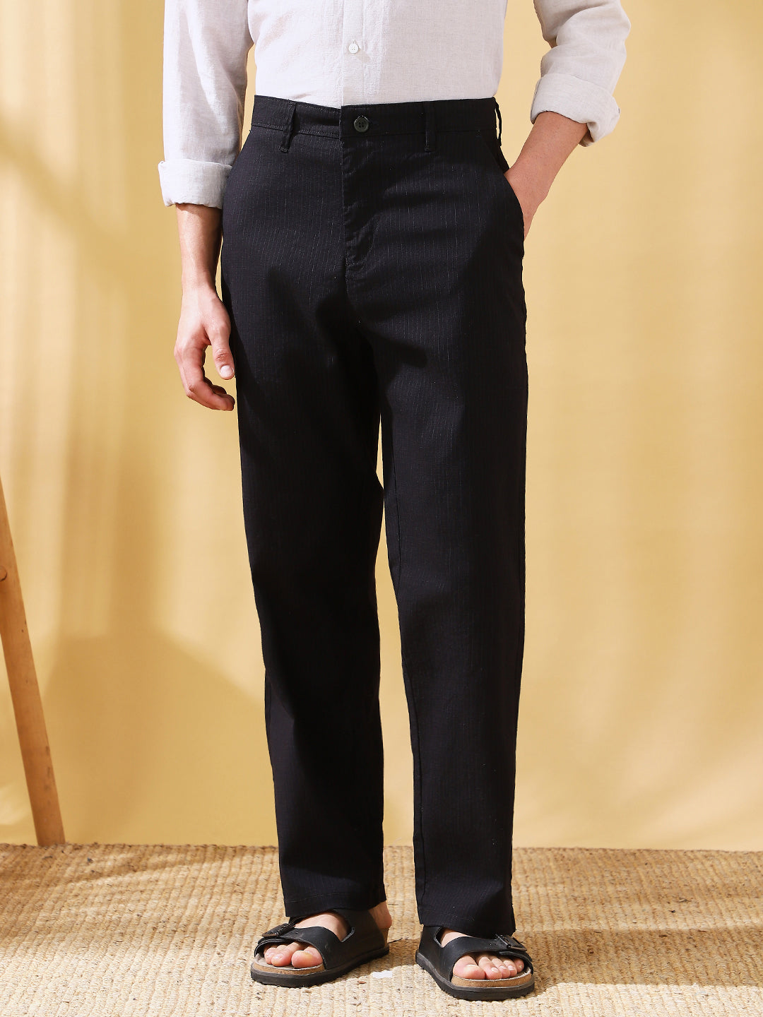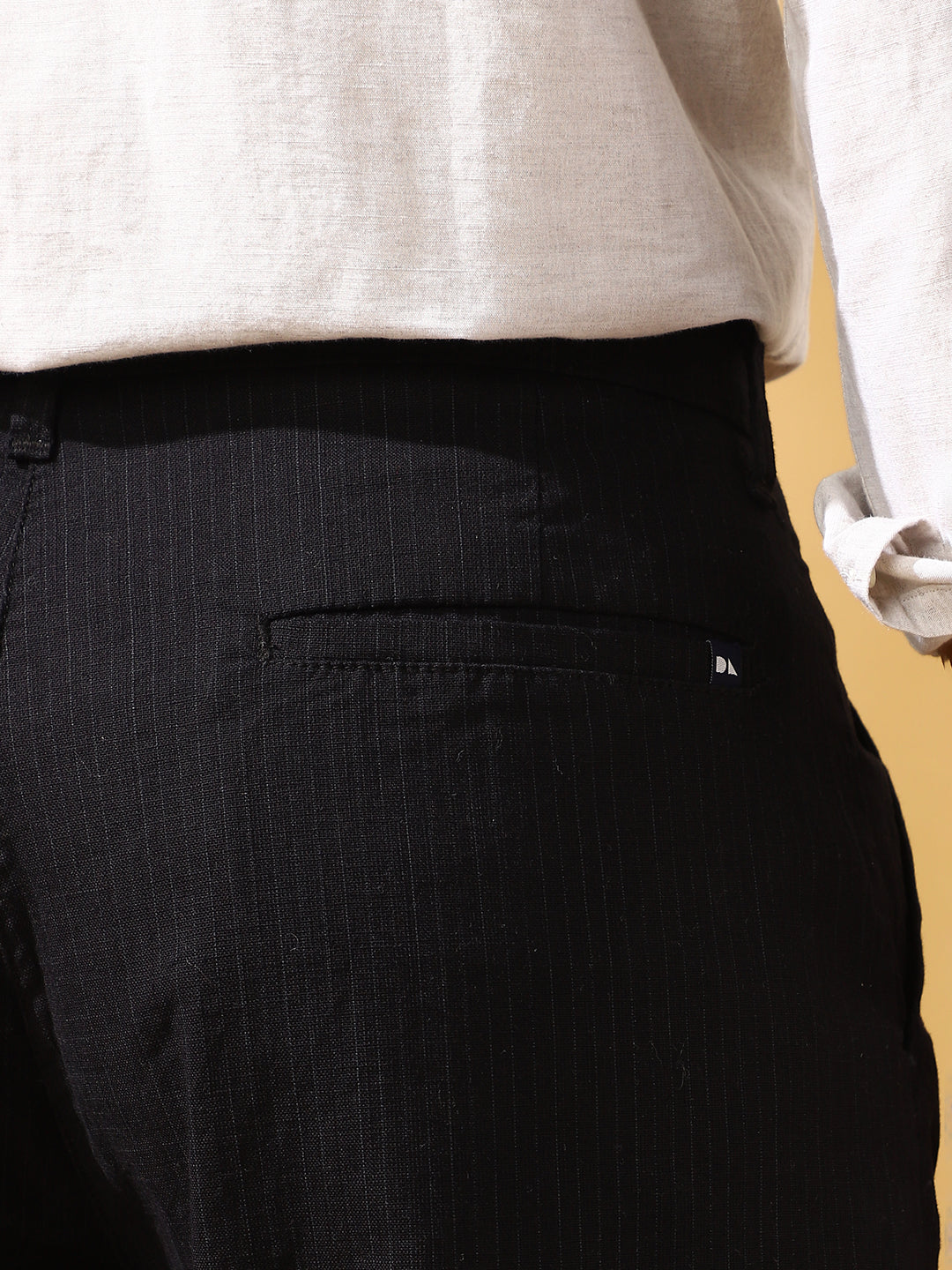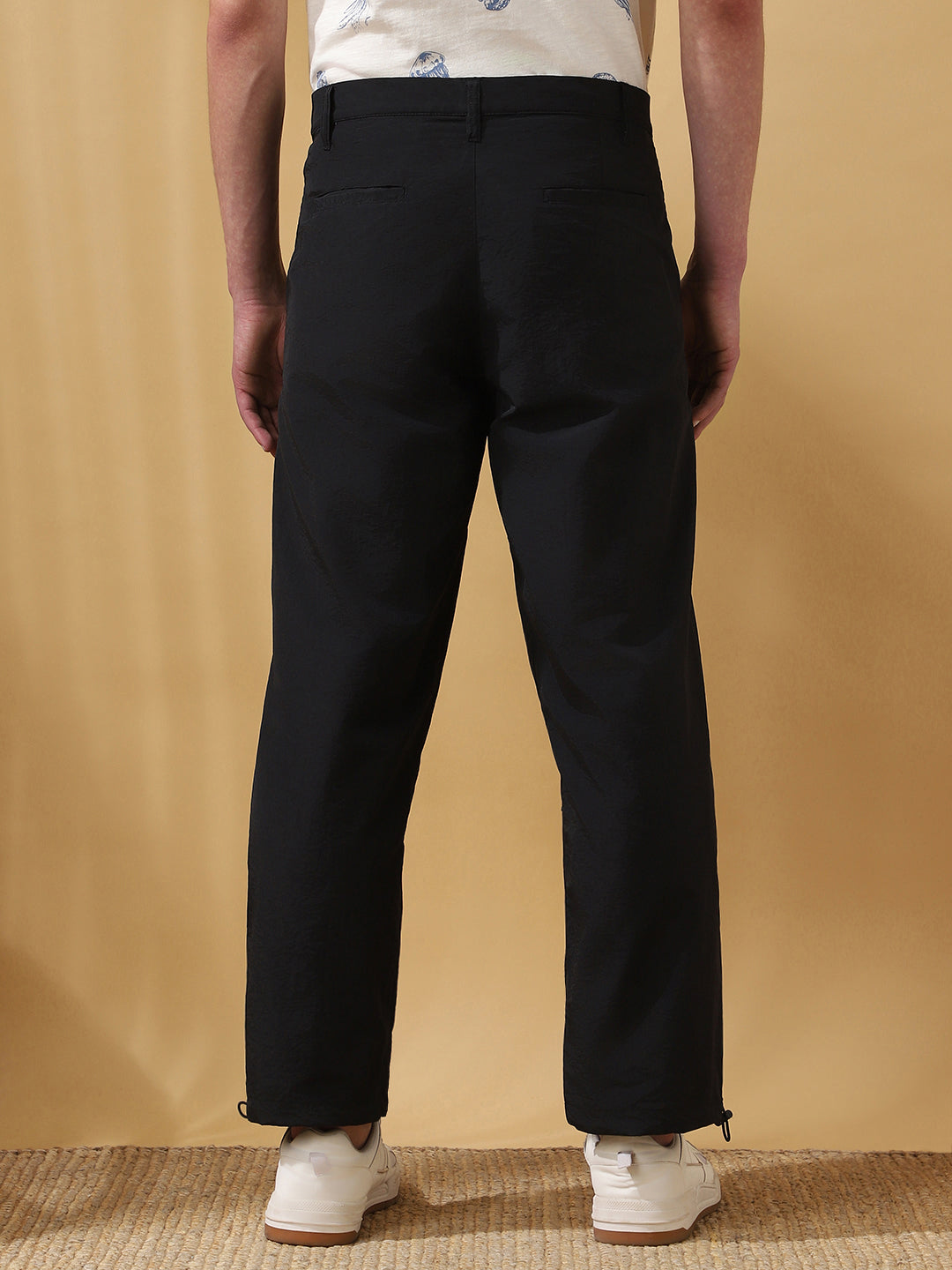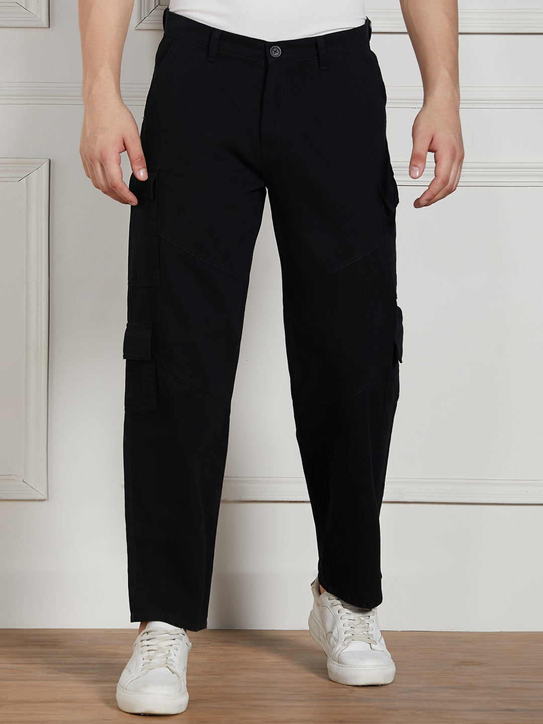 Men's Black Cotton Lycra Solid Stretchable Relaxed fit Cargo Trousers