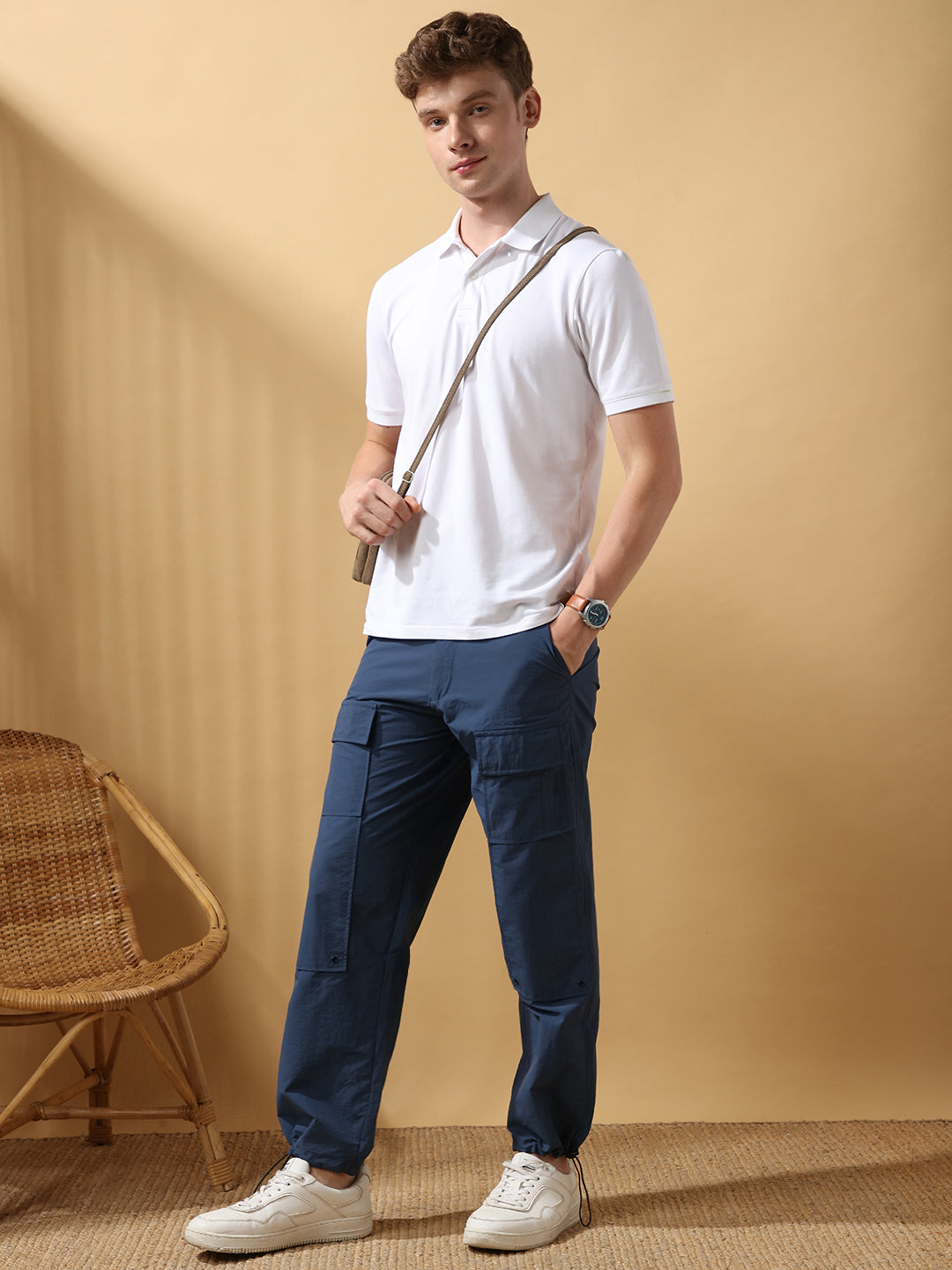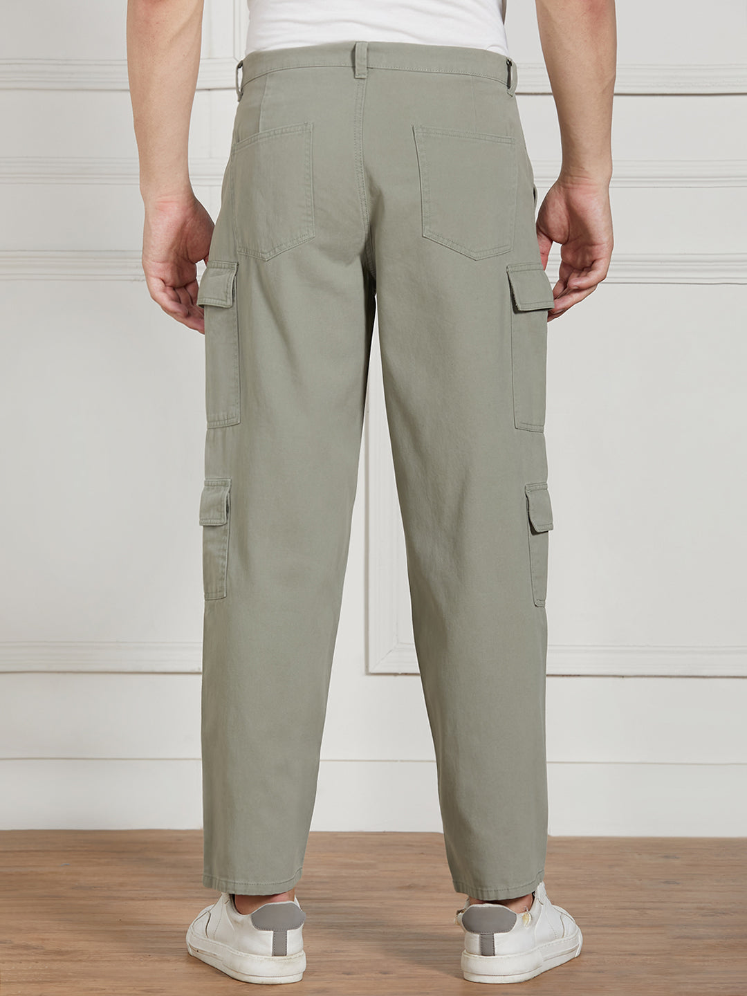 Men's Solid Cotton Relaxed Fit Mid-Rise Cargo Trousers