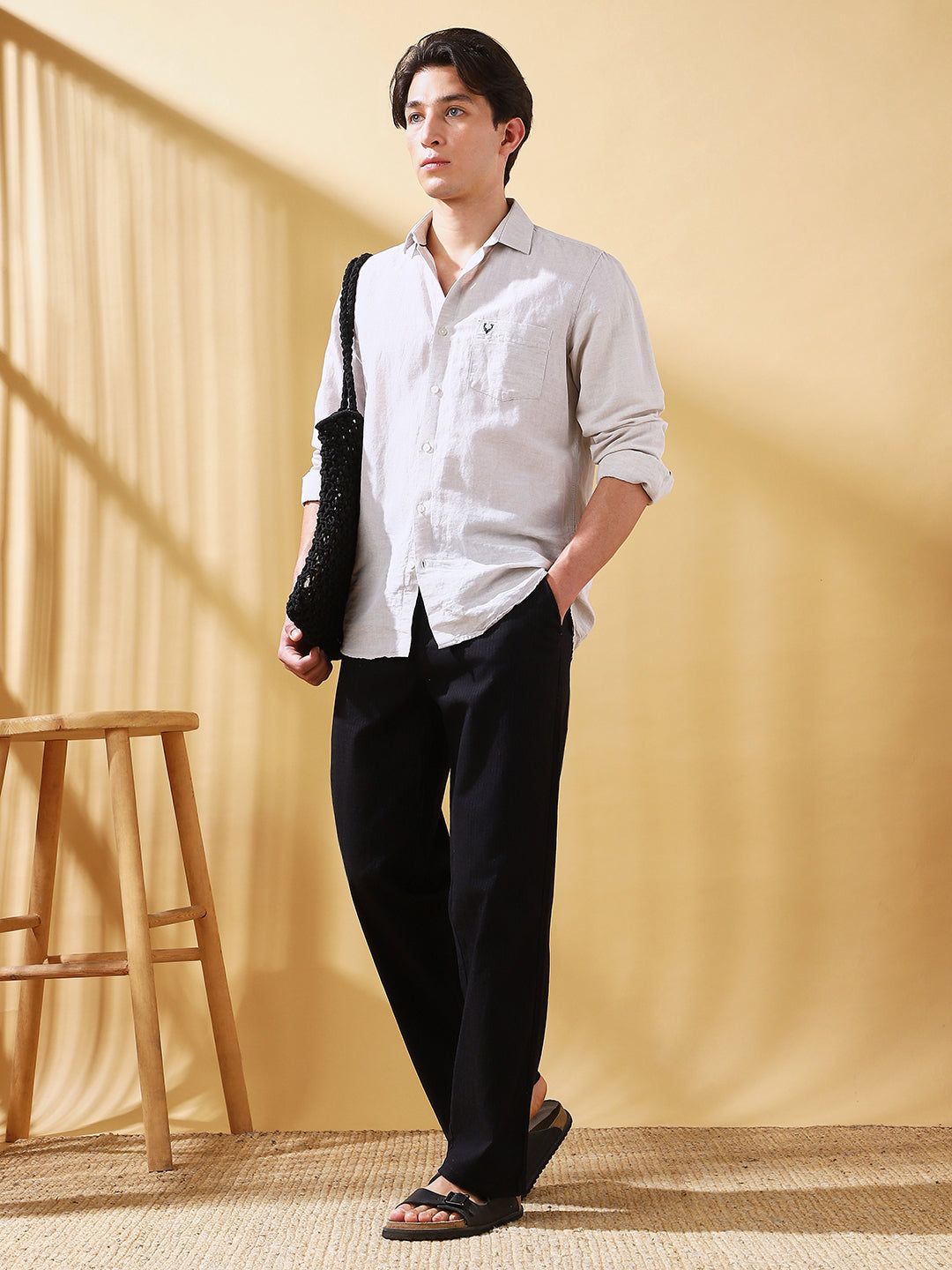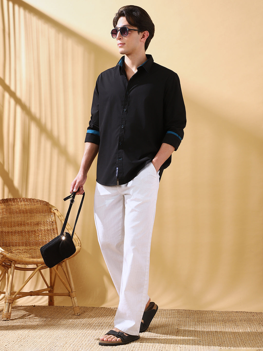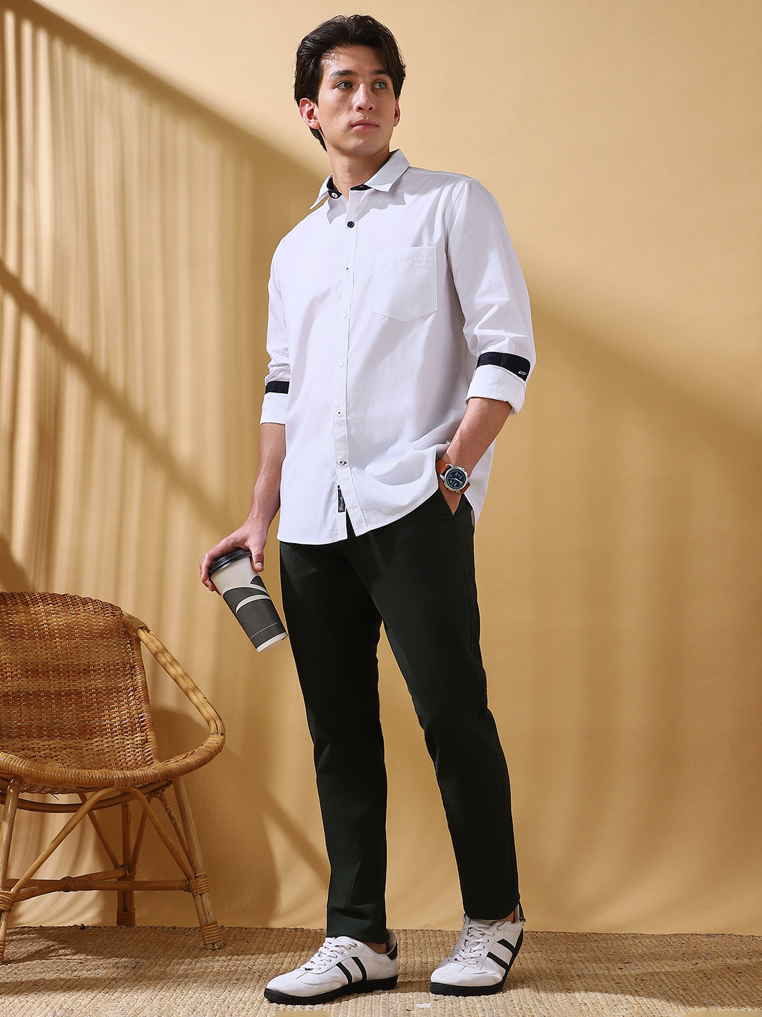 Men's Solid Spread Collar Full Sleeves Regular Fit Casual Shirt
